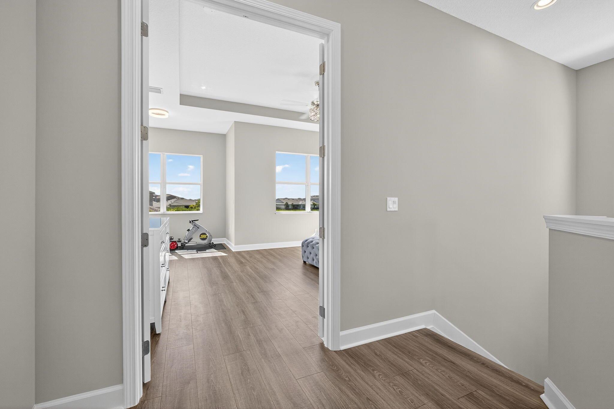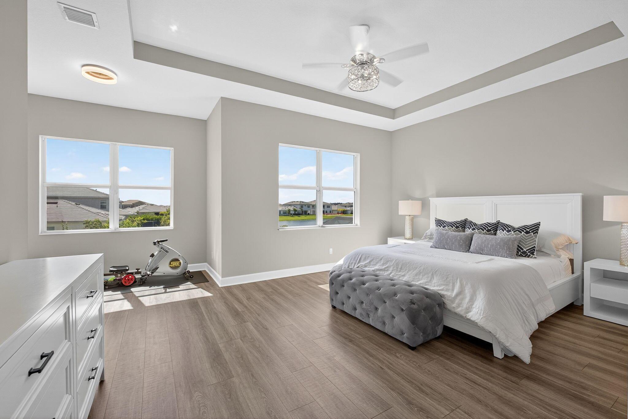 Seller willing to contribute to the buyer's closing costs or rate buy-down, Impact doors/windows, 3 Car Garage, double entry doors, high ceilings, light & bright, open floor plan, Gourmet kitchen w/granite, island seating, crown molding, backsplash, stainless steel appliances. Master suite w/private balcony, sitting/workout area, tray ceilings, soaking tub, seamless glass shower. Driftwood Oak laminate flooring & stairs, Level 5 tile down, Gyp-Crete subfloor, masonry foam insulation, covered patio, downstairs guest/office, epoxy garage floor. Upgrade costs Balcony 25k,Master bathroom 10k, wood floors and marble plus island in the kitchen 30k. Resin, side door and sink with extra outlets in garage 10k Resort amenities: beach-entry pool, slide, fountain, bocce, playground, basketball, BMX