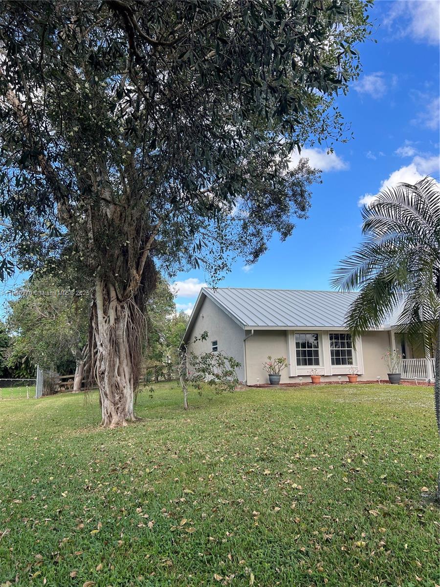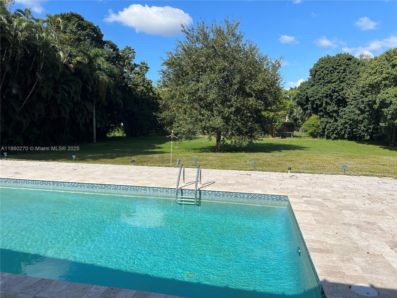 Beautiful home on nearly an acre, perfect for city slickers seeking a country vibe with quick access to restaurants, malls, and entertainment (Hardrock and Amerant Arena). This 3 bed/2 bath/2 car garage, 2,500+ sq ft home features wood plank ceilings, skylit kitchen with maple cabinets and stainless appliances. Primary suite has walk-in closet and patio access. Enjoy the pool, travertine deck, fenced yard, mango tree, and bird watching. Metal roof, new 2024 AC, hurricane protection. Walk to American Heritage; near Weston, Cleveland Clinic, FLL Airport, beaches. No HOA—horses/RVs allowed. BEST BARGAIN in area with vacant lots ~$1M. SELLER CREDIT possible. Redevelopment drawings for a 6,500 sq ft house available.