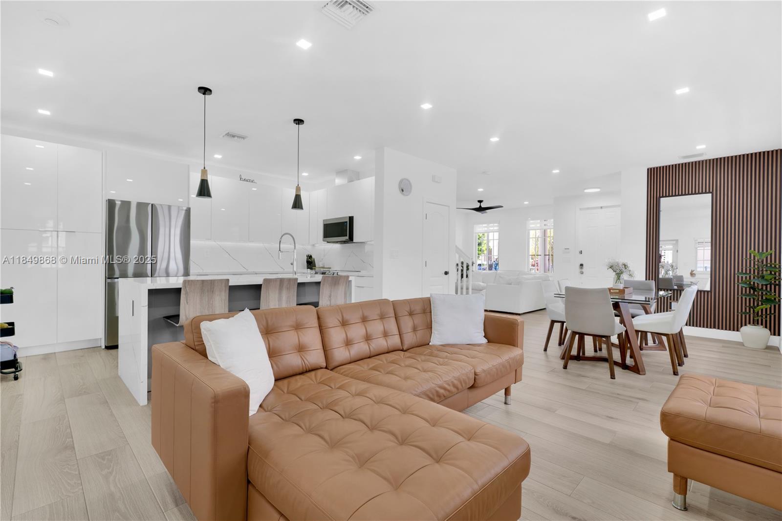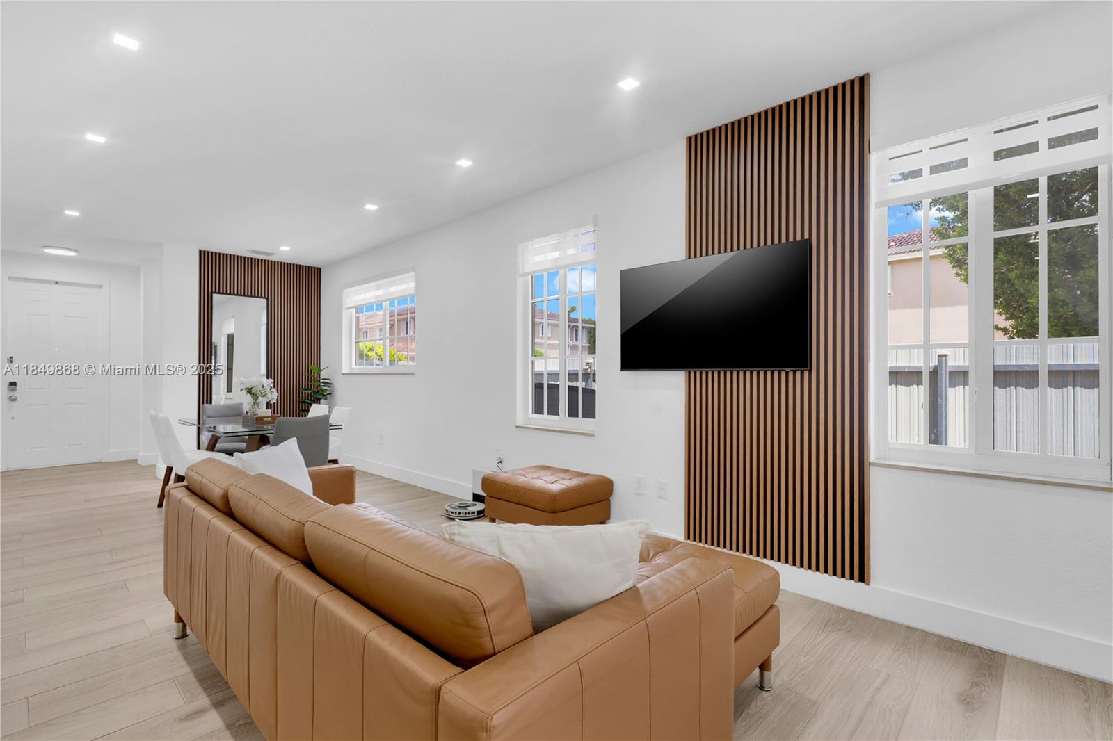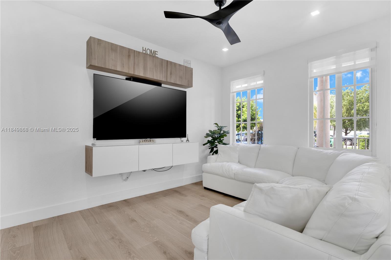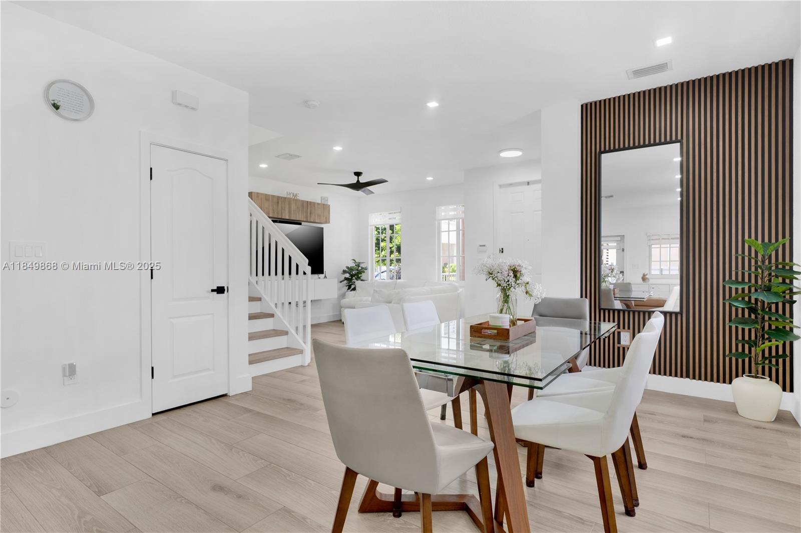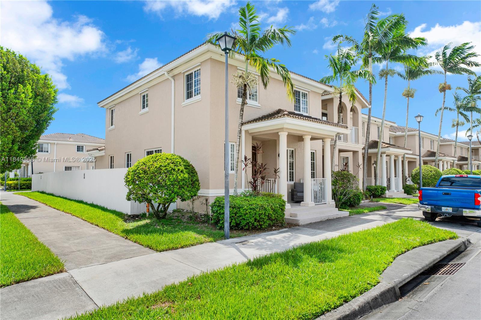 Stunning home featuring aluminum fencing, spacious concrete patio with pergola, and full impact windows & doors. Inside, enjoy a brand-new kitchen with quartz counters, all new bathrooms, and custom closets in every room. First floor boasts wood-look porcelain tile, while the second floor offers water-resistant LVP flooring. Additional upgrades include recessed lighting throughout, a 2019 Trane A/C, and a 2020 water heater. Modern, stylish, and move-in ready! HOA fee includes Cable TV, Internet & Landscaping.