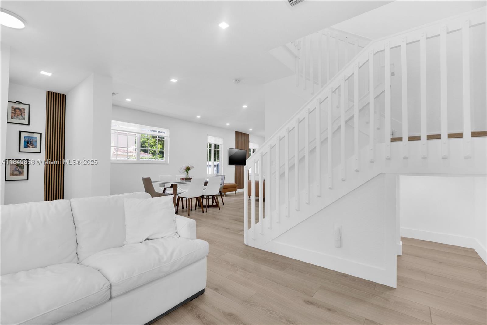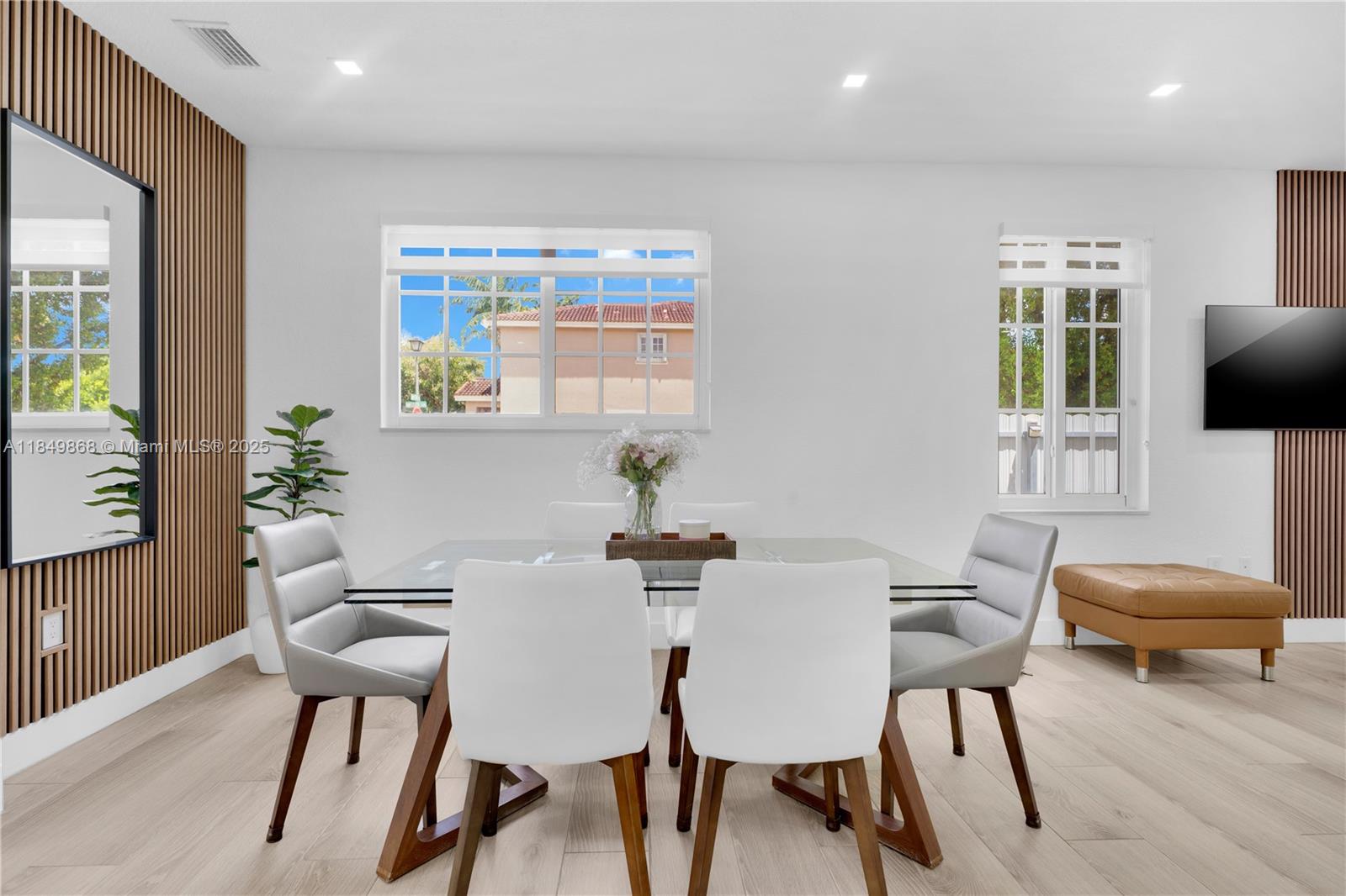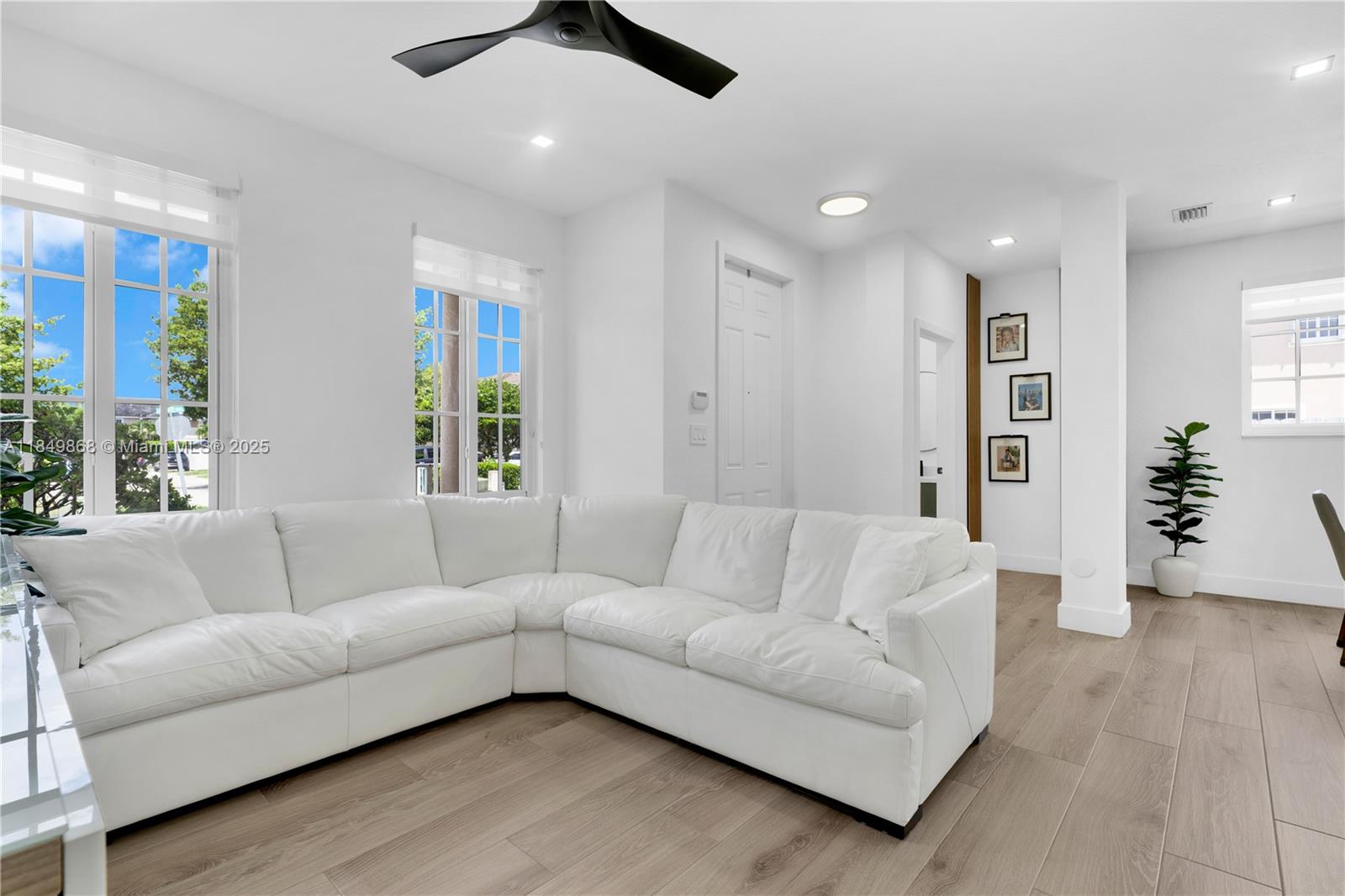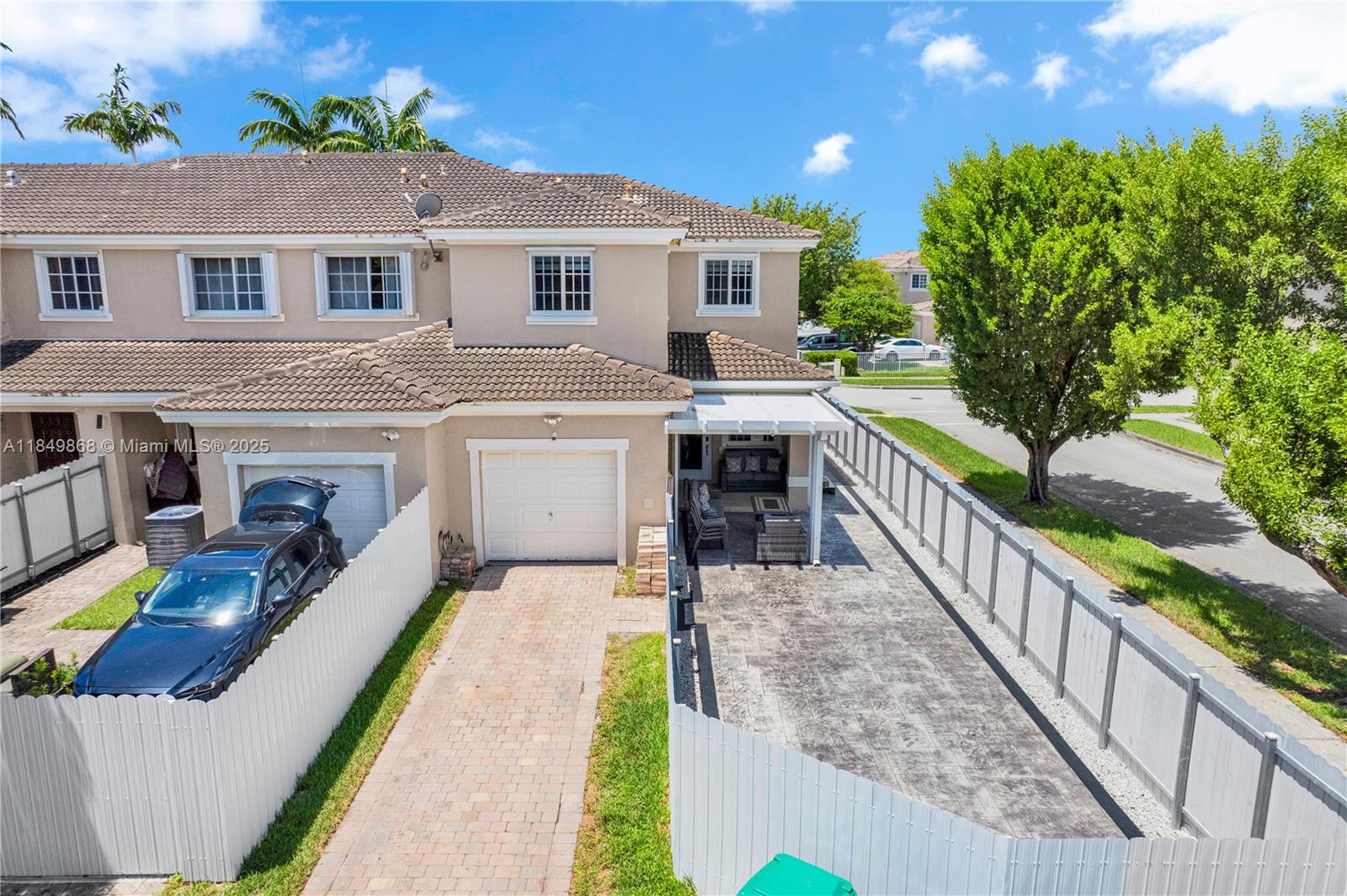 Stunning home featuring aluminum fencing, spacious concrete patio with pergola, and full impact windows & doors. Inside, enjoy a brand-new kitchen with quartz counters, all new bathrooms, and custom closets in every room. First floor boasts wood-look porcelain tile, while the second floor offers water-resistant LVP flooring. Additional upgrades include recessed lighting throughout, a 2019 Trane A/C, and a 2020 water heater. Modern, stylish, and move-in ready! HOA fee includes Cable TV, Internet & Landscaping.
