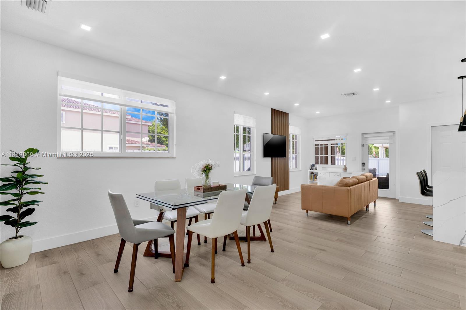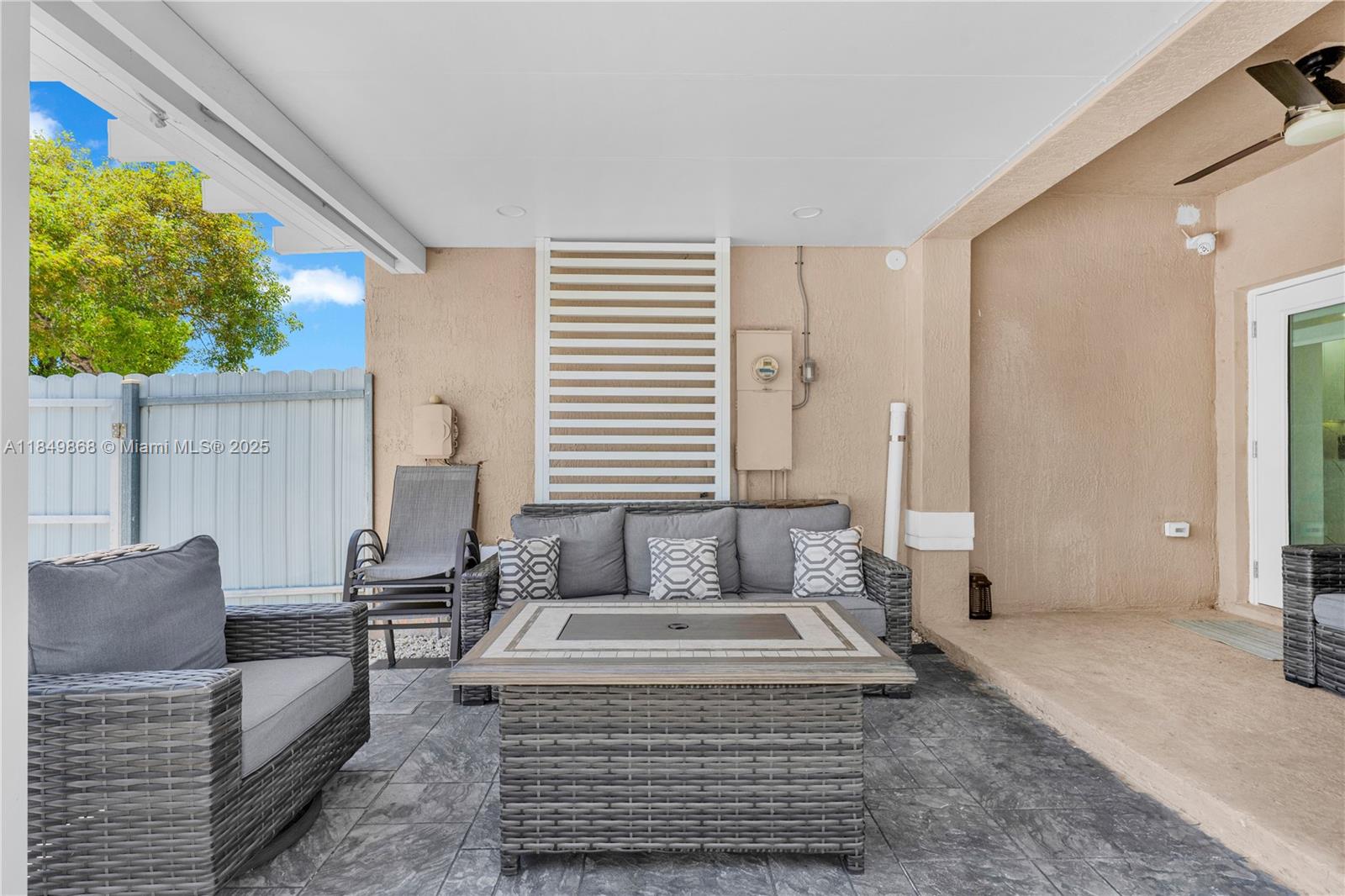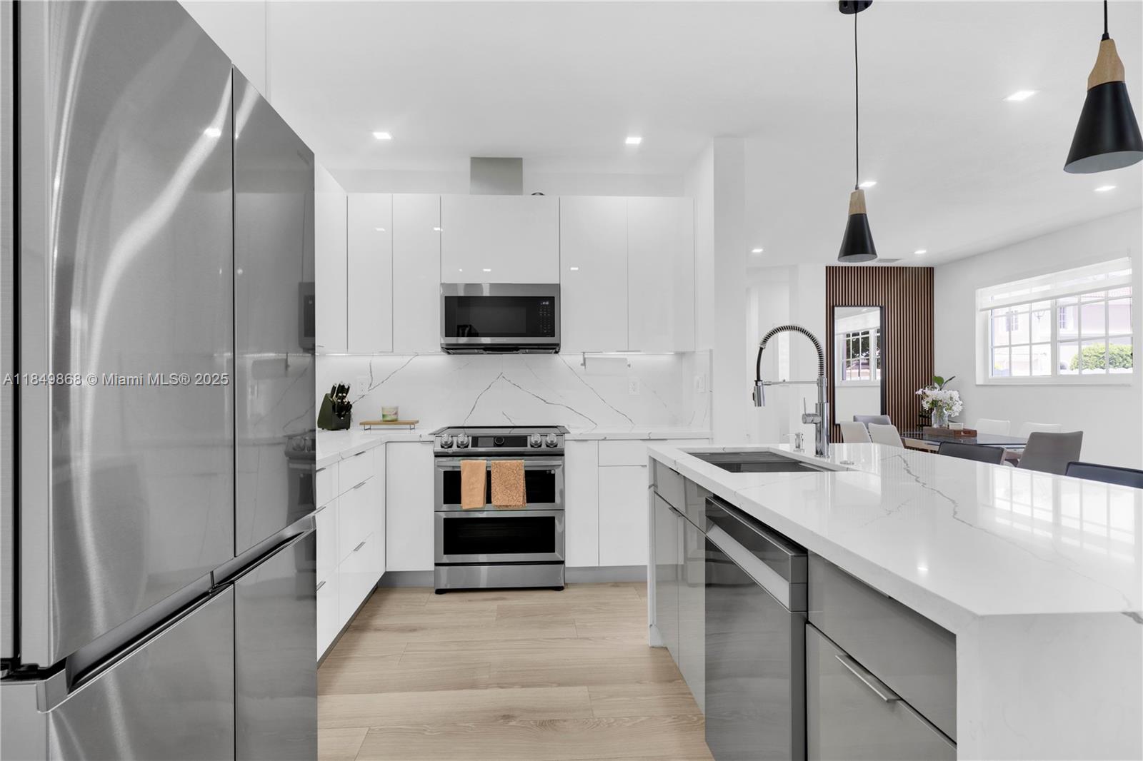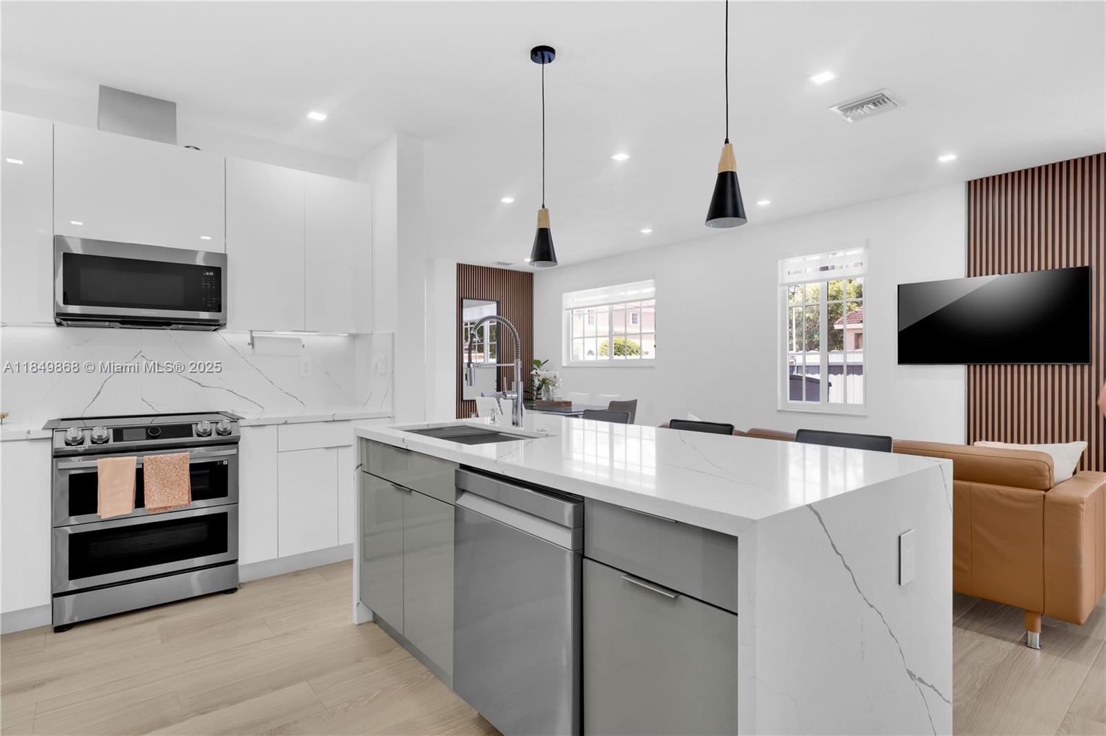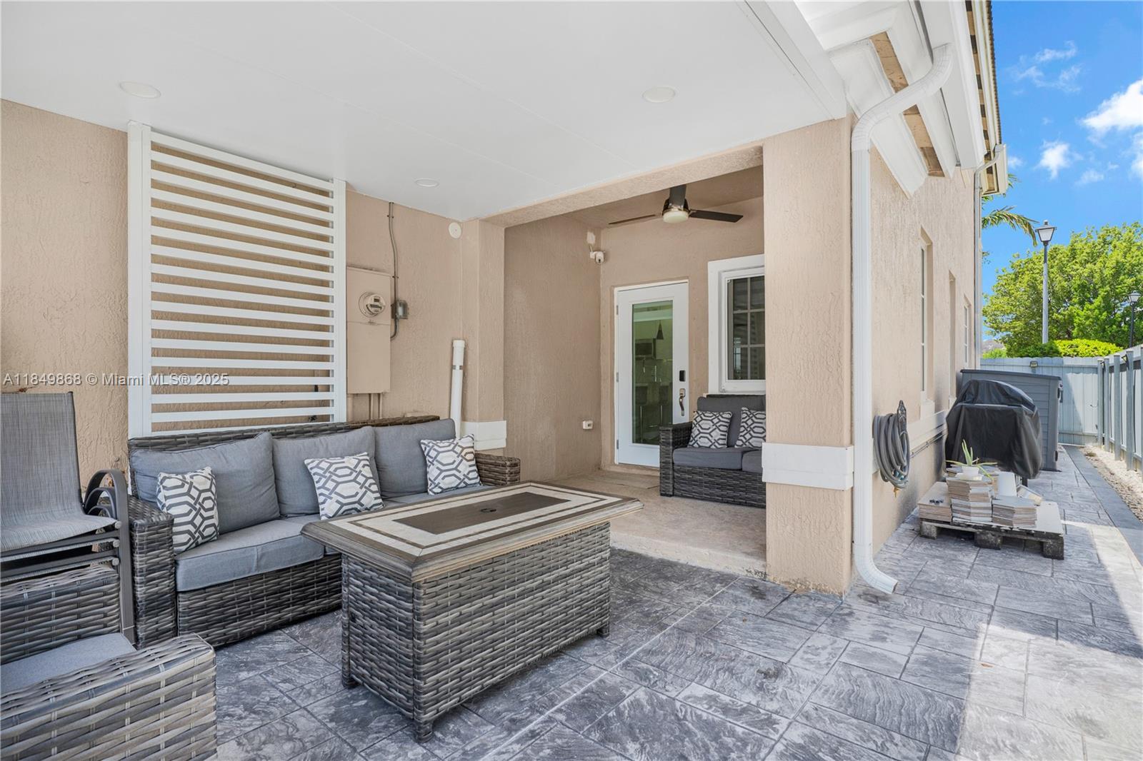 Stunning home featuring aluminum fencing, spacious concrete patio with pergola, and full impact windows & doors. Inside, enjoy a brand-new kitchen with quartz counters, all new bathrooms, and custom closets in every room. First floor boasts wood-look porcelain tile, while the second floor offers water-resistant LVP flooring. Additional upgrades include recessed lighting throughout, a 2019 Trane A/C, and a 2020 water heater. Modern, stylish, and move-in ready! HOA fee includes Cable TV, Internet & Landscaping.
