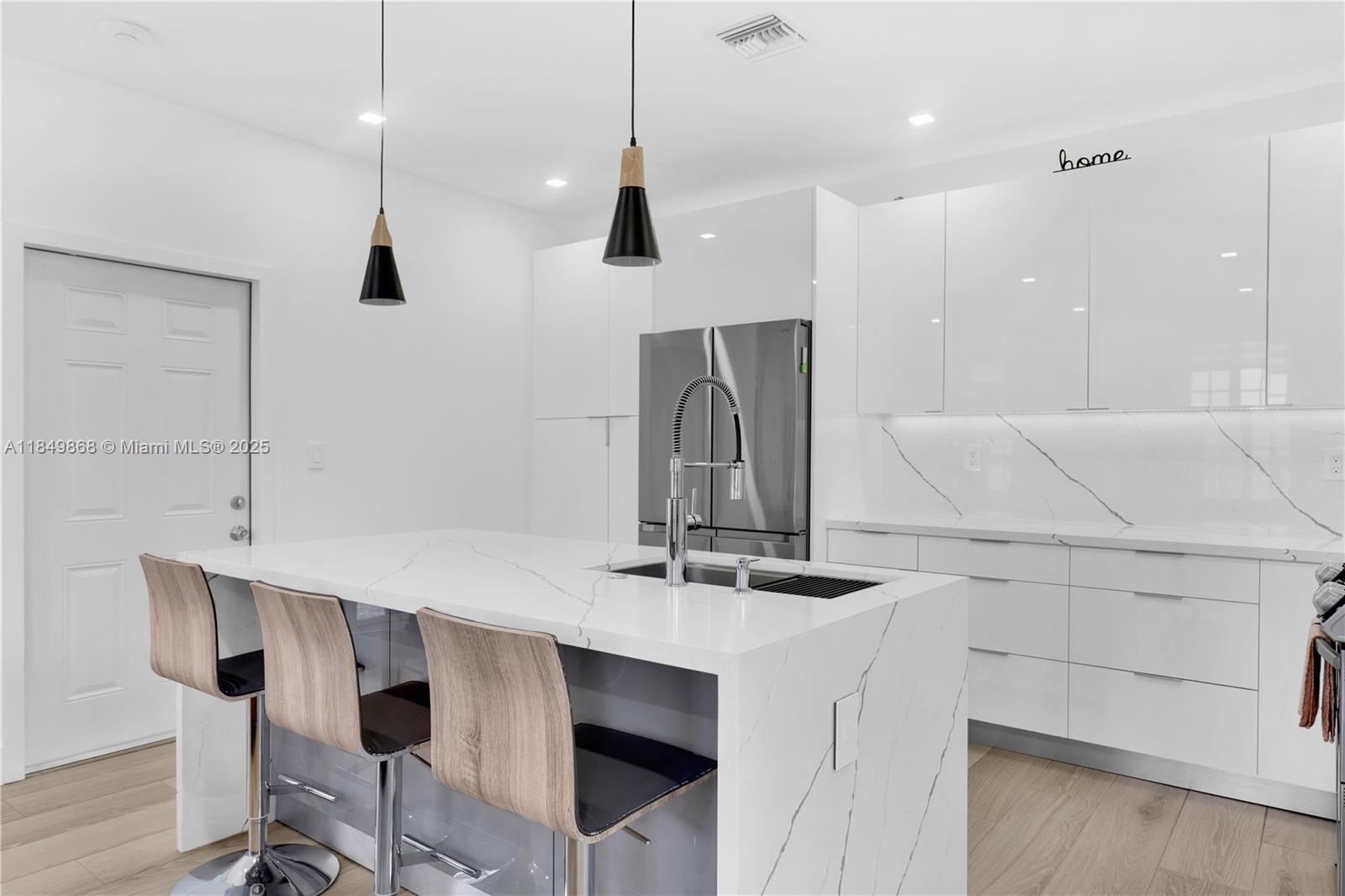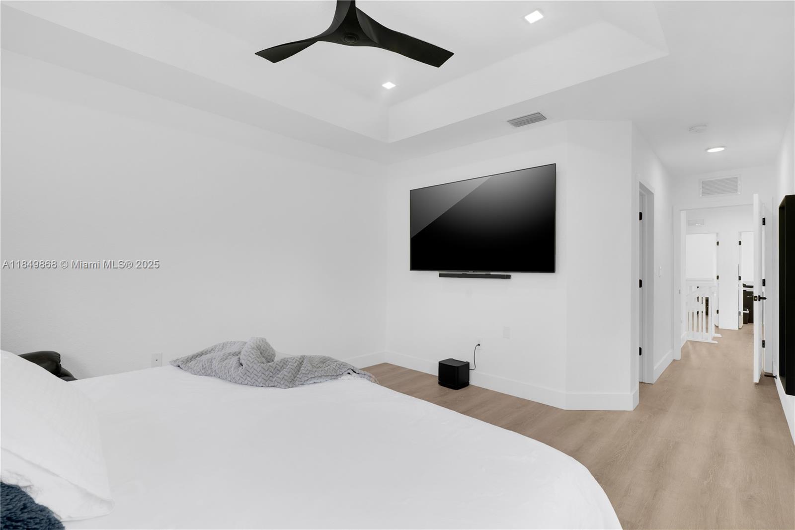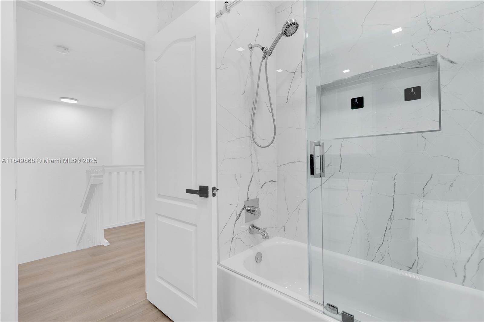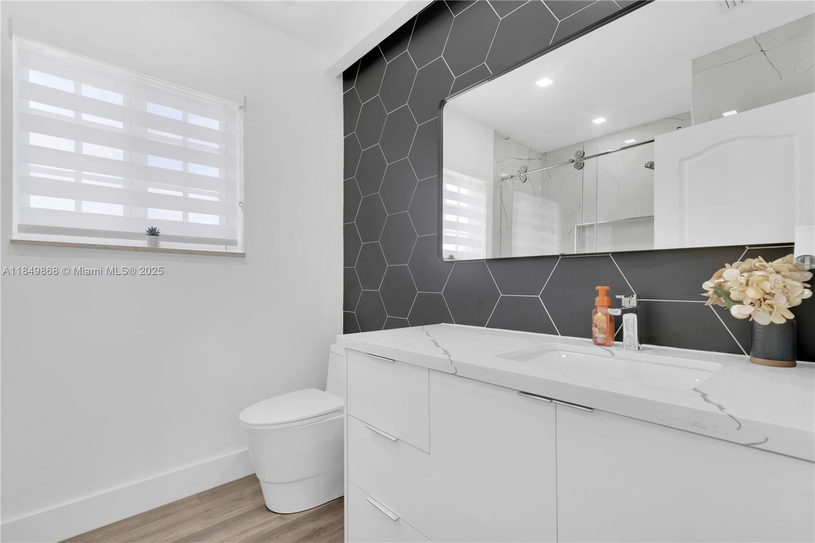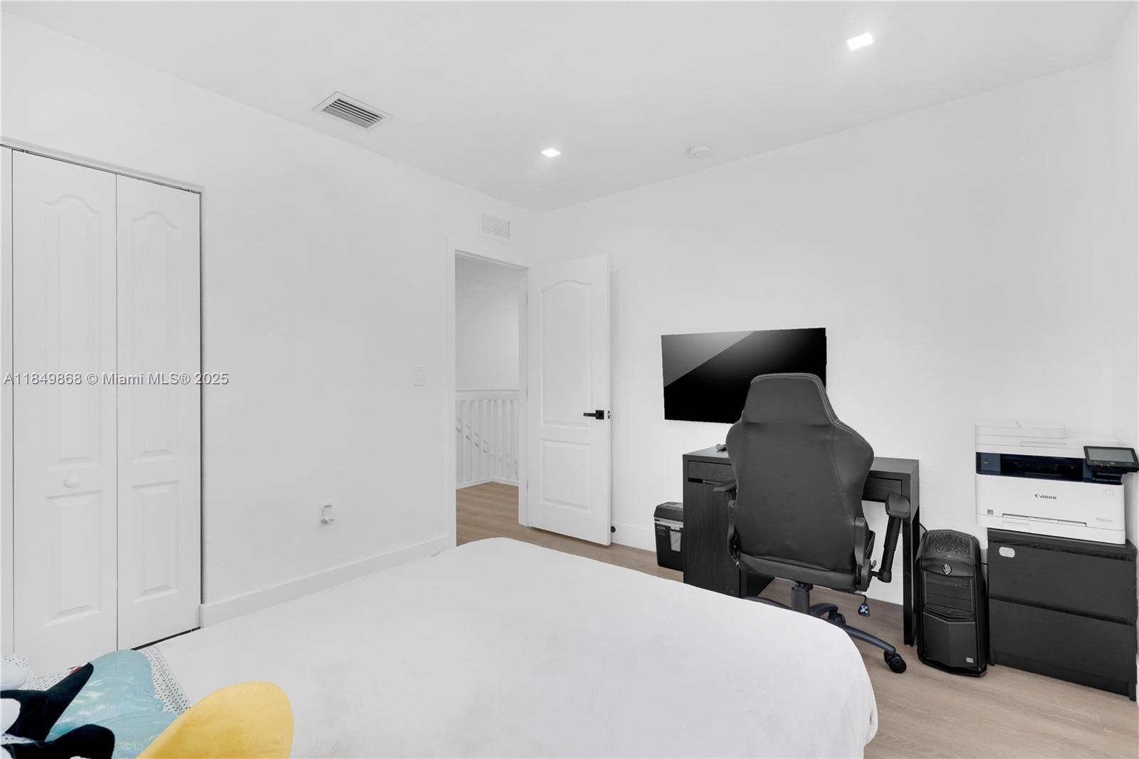 Stunning home featuring aluminum fencing, spacious concrete patio with pergola, and full impact windows & doors. Inside, enjoy a brand-new kitchen with quartz counters, all new bathrooms, and custom closets in every room. First floor boasts wood-look porcelain tile, while the second floor offers water-resistant LVP flooring. Additional upgrades include recessed lighting throughout, a 2019 Trane A/C, and a 2020 water heater. Modern, stylish, and move-in ready! HOA fee includes Cable TV, Internet & Landscaping.