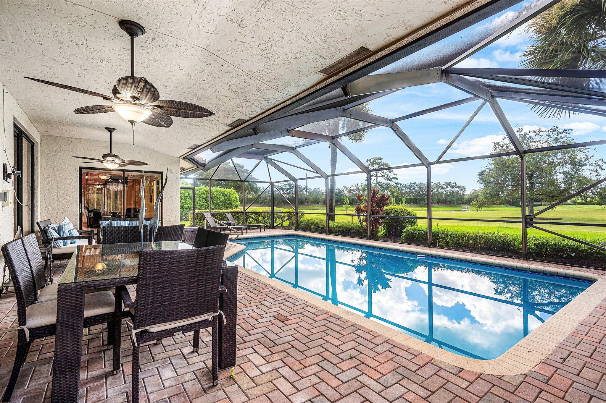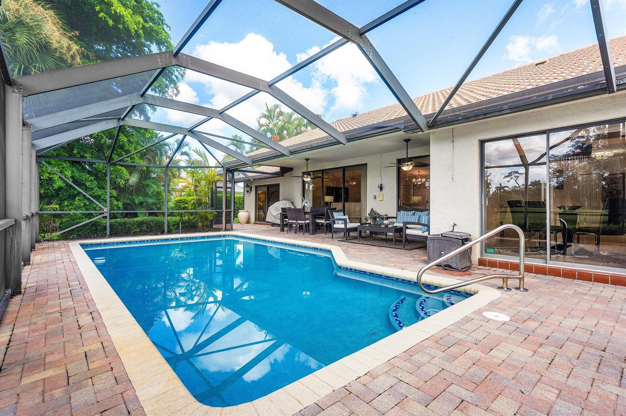 Set in the prestigious Boca Woods Country Club, this meticulously maintained 3-bedroom, 2-bath home offers a perfect blend of elegance and functionality offering privacy and comfort for both owners and guests. Serene views of the pool and golf course can be seen from the living room, kitchen, and primary bedroom while the screened patio provides an inviting space for relaxation and entertaining. Boca Woods Country Club Community offers resort style amenities, including two championship golf courses, Har Tru tennis courts, pickleball courts, state of the art fitness center, spa, game room, fully renovated clubhouse with fine dining and much more! Mandatory Country Club membership required $120,000.
