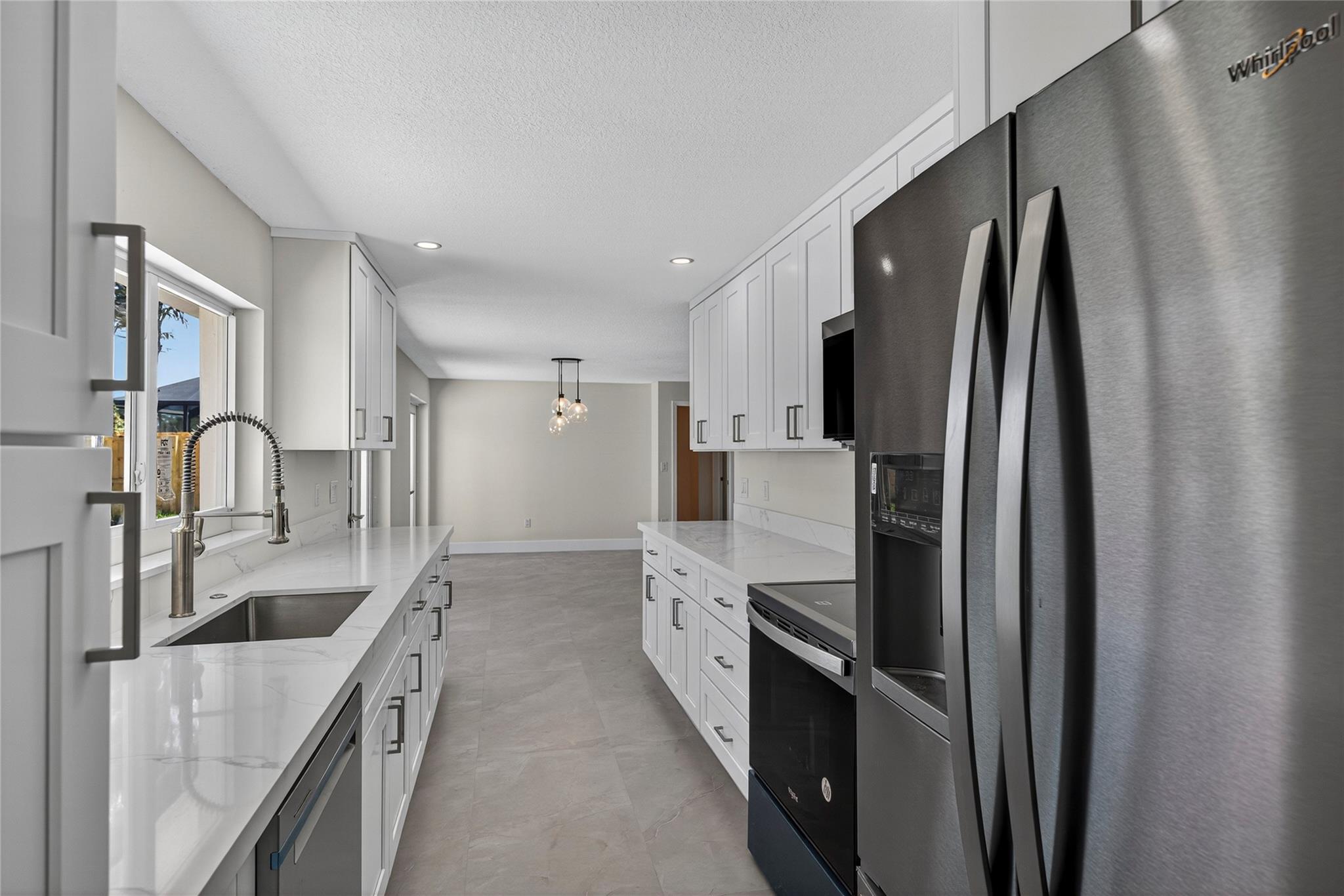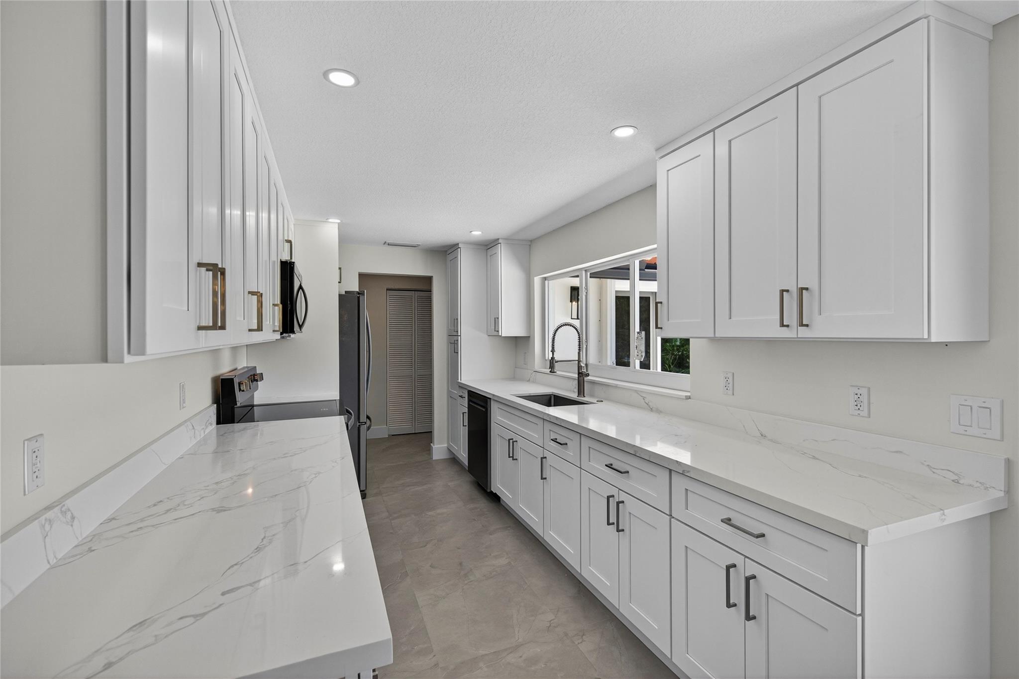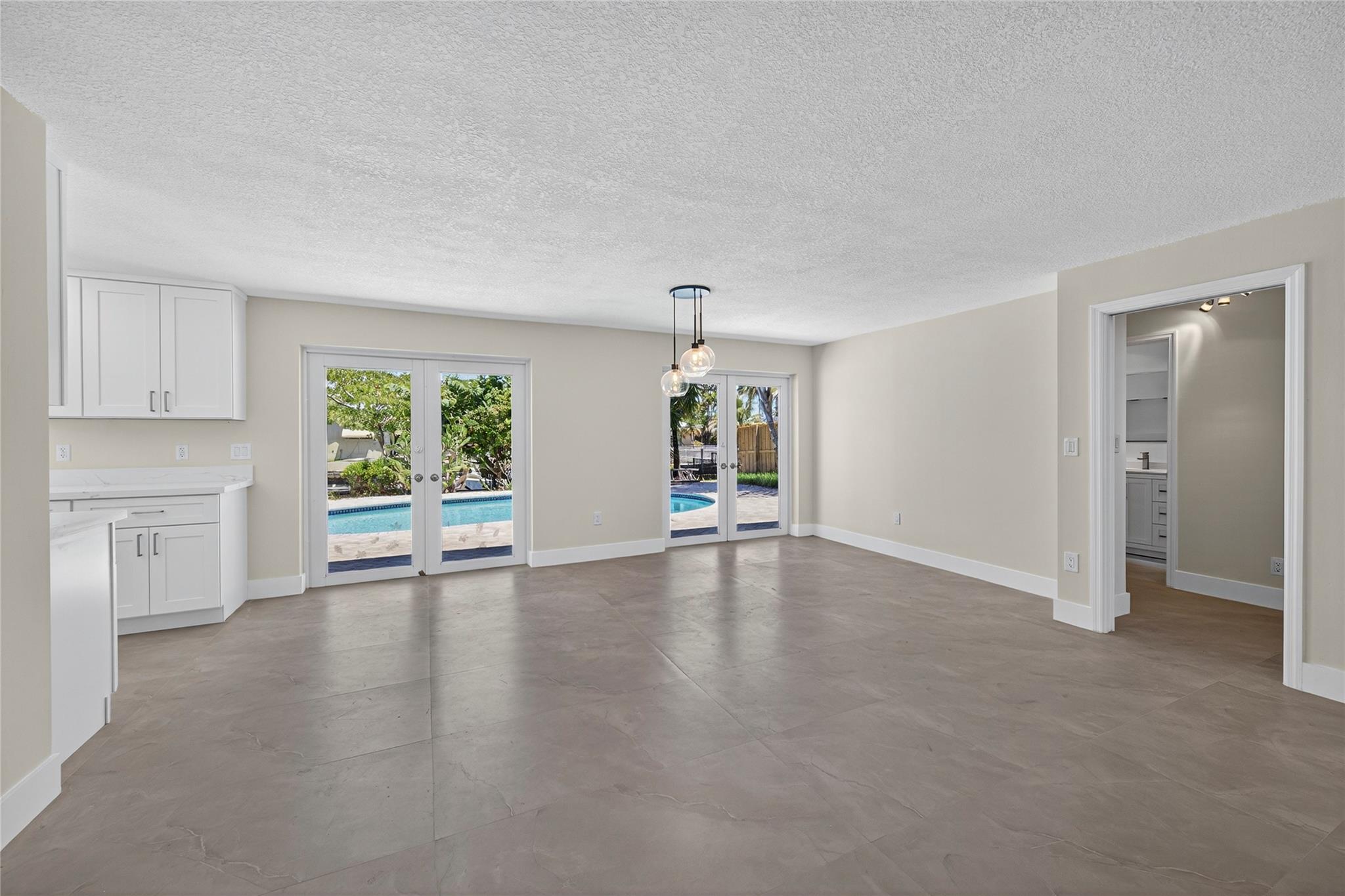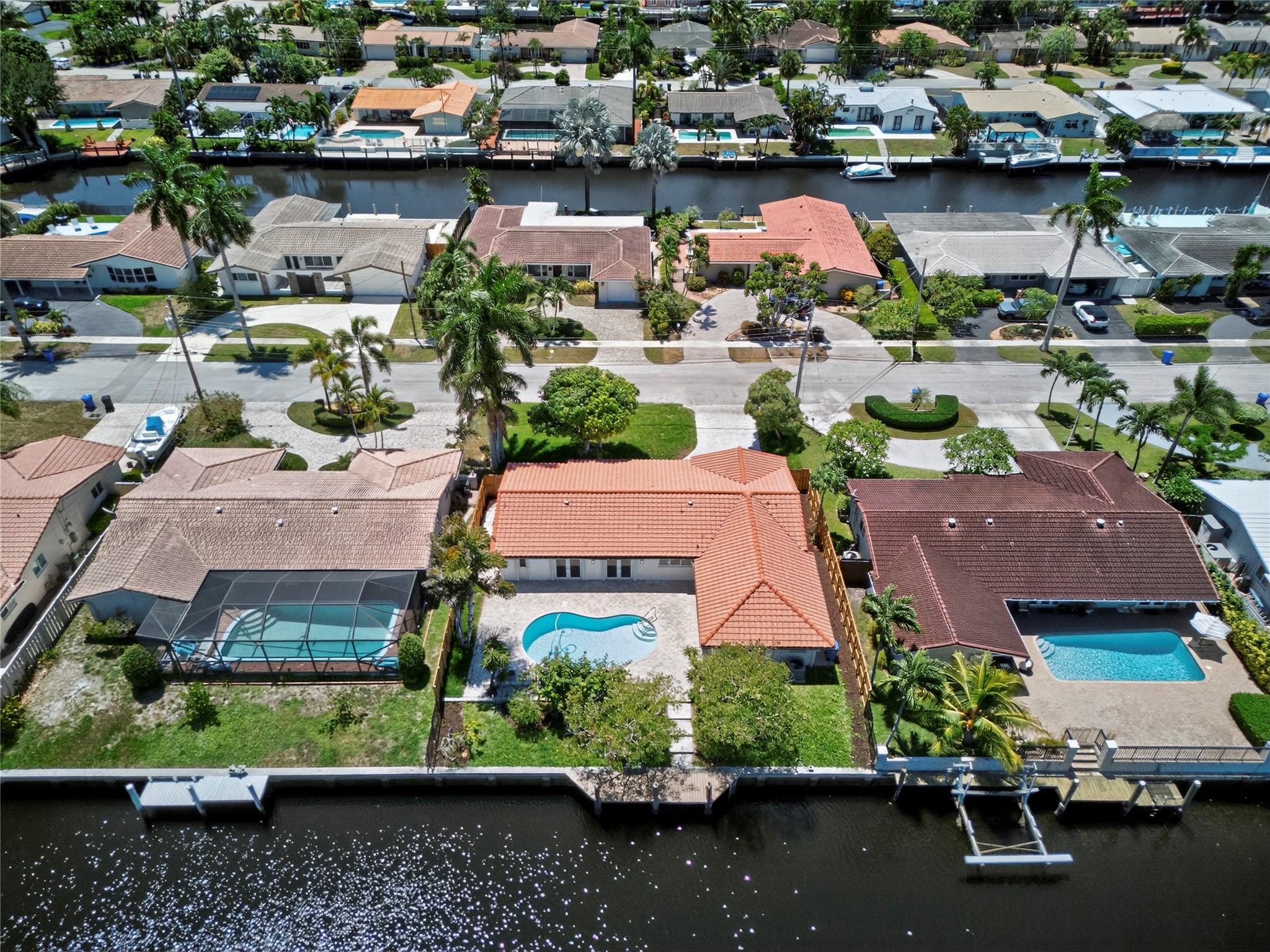WOW! WATERFRONT POOL HOME UNDER 1 MILLION!! No expense was spared in COMPLETELY renovating this 3 bedroom, 3 bathroom home, all of which was fully PERMITTED and inspected. Ocean-access dock and 2-car garage complete all of the checked boxes. ALL new kitchen with quartz counters and upgraded NEW stainless appliances. BEAUTIFUL NEW 24x48 porcelain tile floors throughout. ALL new 3 full bathrooms, including is a CABANA bath. SPACIOUS master bedroom with high ceilings, HUGE walk-in closet and roomy master bathoom completely removed from the guest suites. All new lighting and ceiling fans. TONS of natural lighting, beautiful pool area on the water. This home is 100% turnkey and 100% hurricane ready as well! Full 2 car garage and double driveway for ample parking. TRULY a must see!