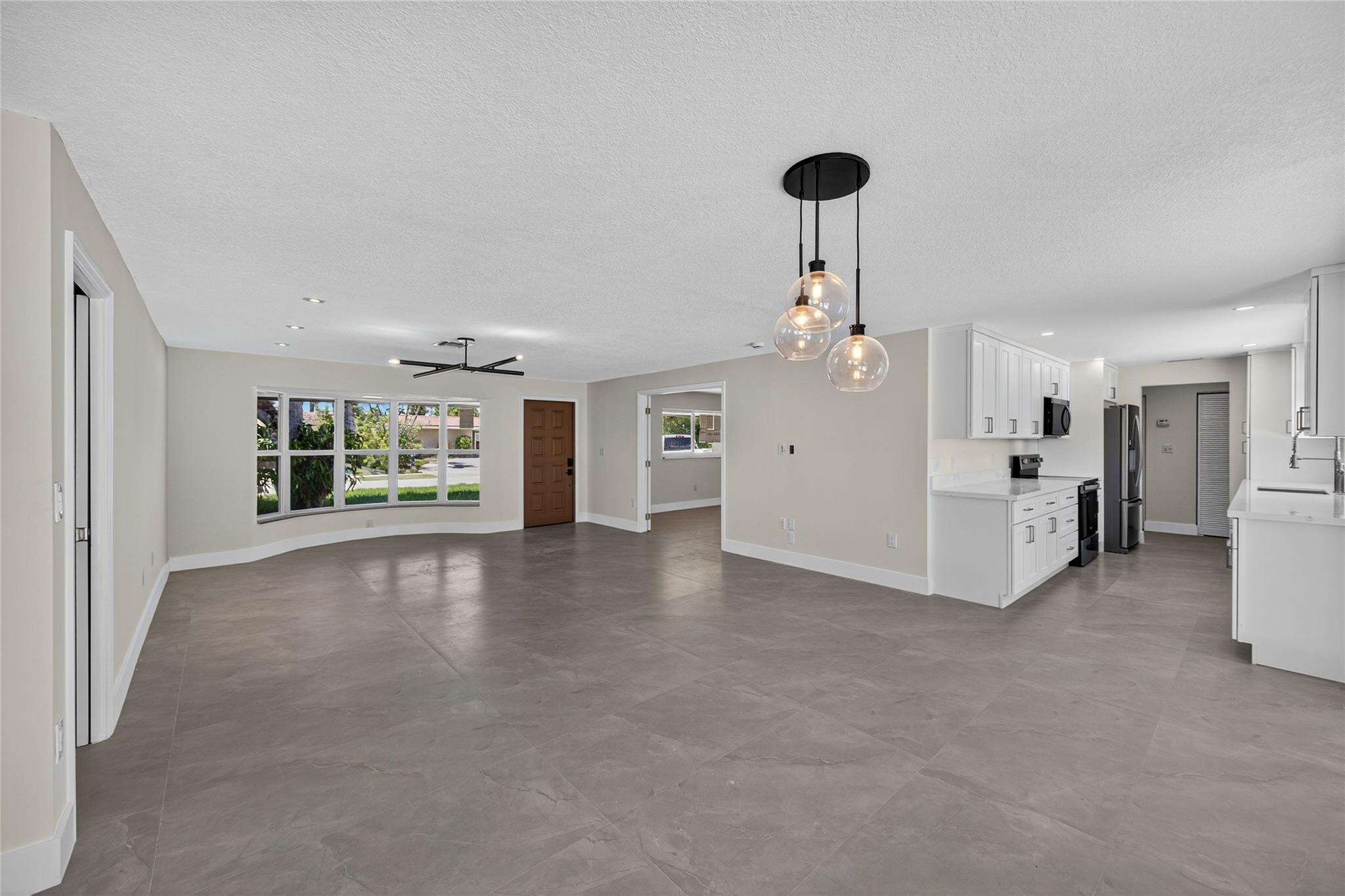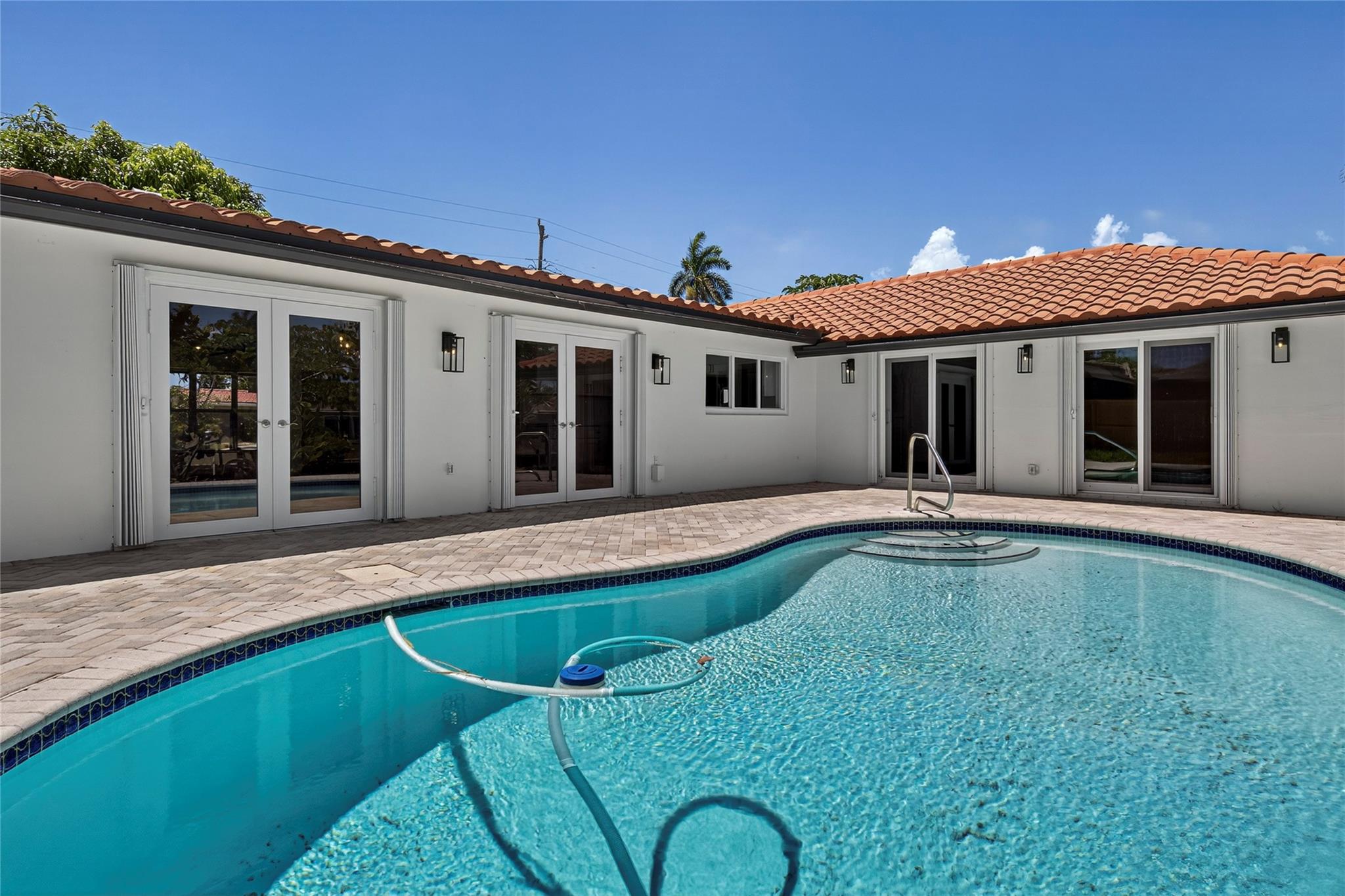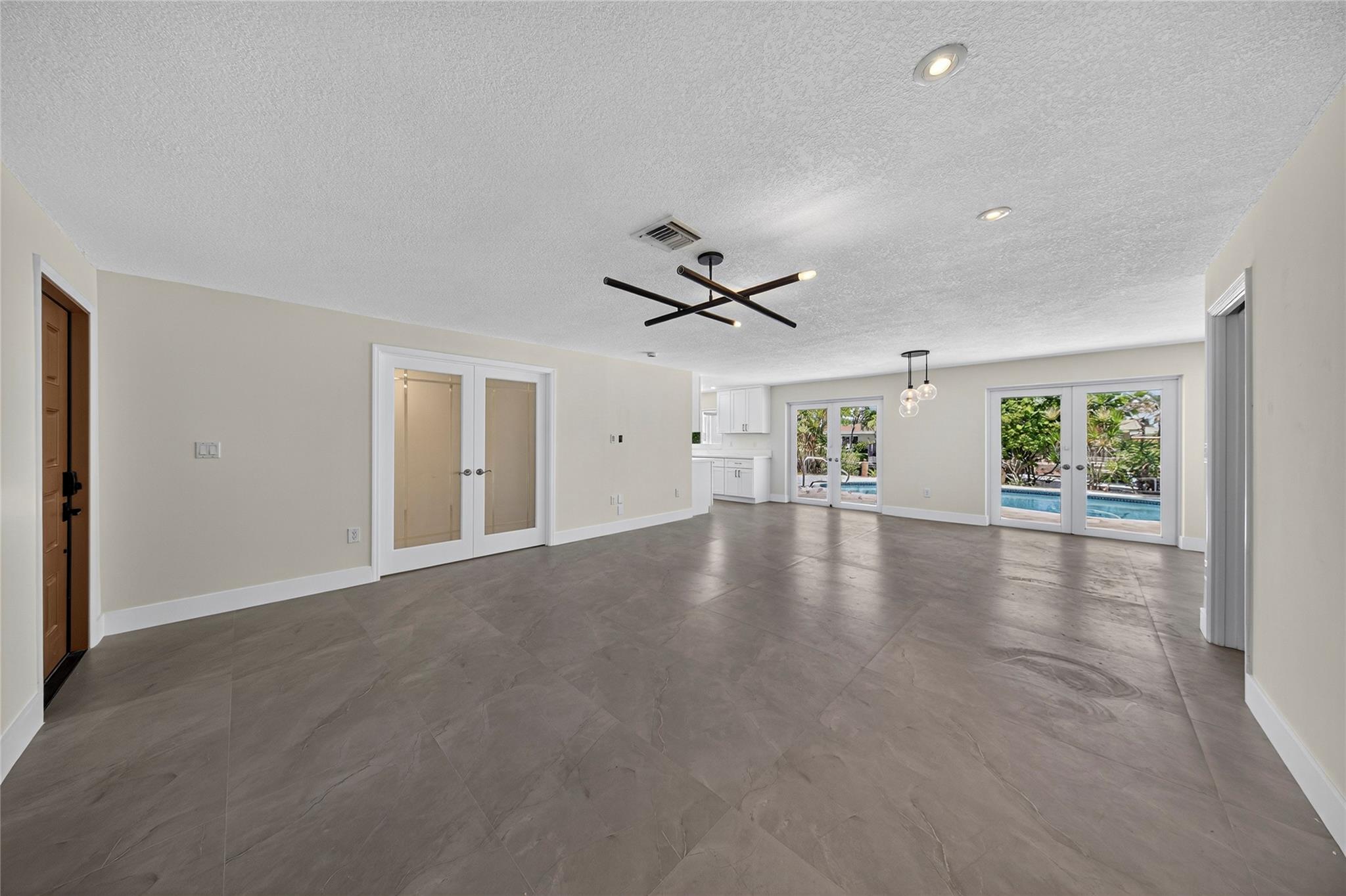 WOW! WATERFRONT POOL HOME UNDER 1 MILLION!! No expense was spared in COMPLETELY renovating this 3 bedroom, 3 bathroom home, all of which was fully PERMITTED and inspected. Ocean-access dock and 2-car garage complete all of the checked boxes. ALL new kitchen with quartz counters and upgraded NEW stainless appliances. BEAUTIFUL NEW 24x48 porcelain tile floors throughout. ALL new 3 full bathrooms, including is a CABANA bath. SPACIOUS master bedroom with high ceilings, HUGE walk-in closet and roomy master bathoom completely removed from the guest suites. All new lighting and ceiling fans. TONS of natural lighting, beautiful pool area on the water. This home is 100% turnkey and 100% hurricane ready as well! Full 2 car garage and double driveway for ample parking. TRULY a must see!