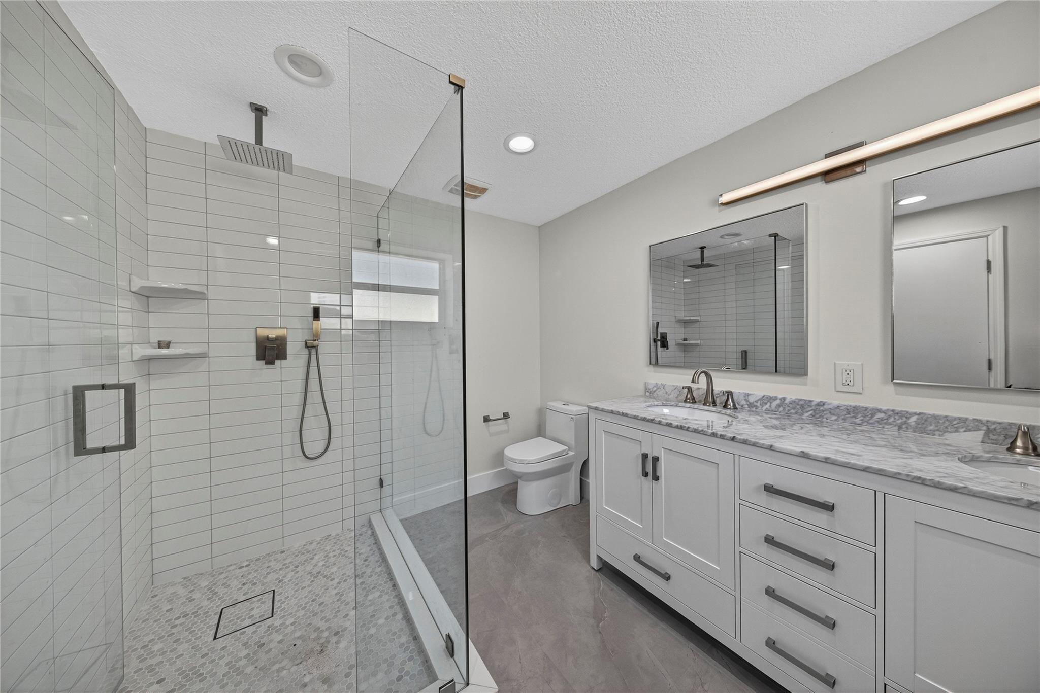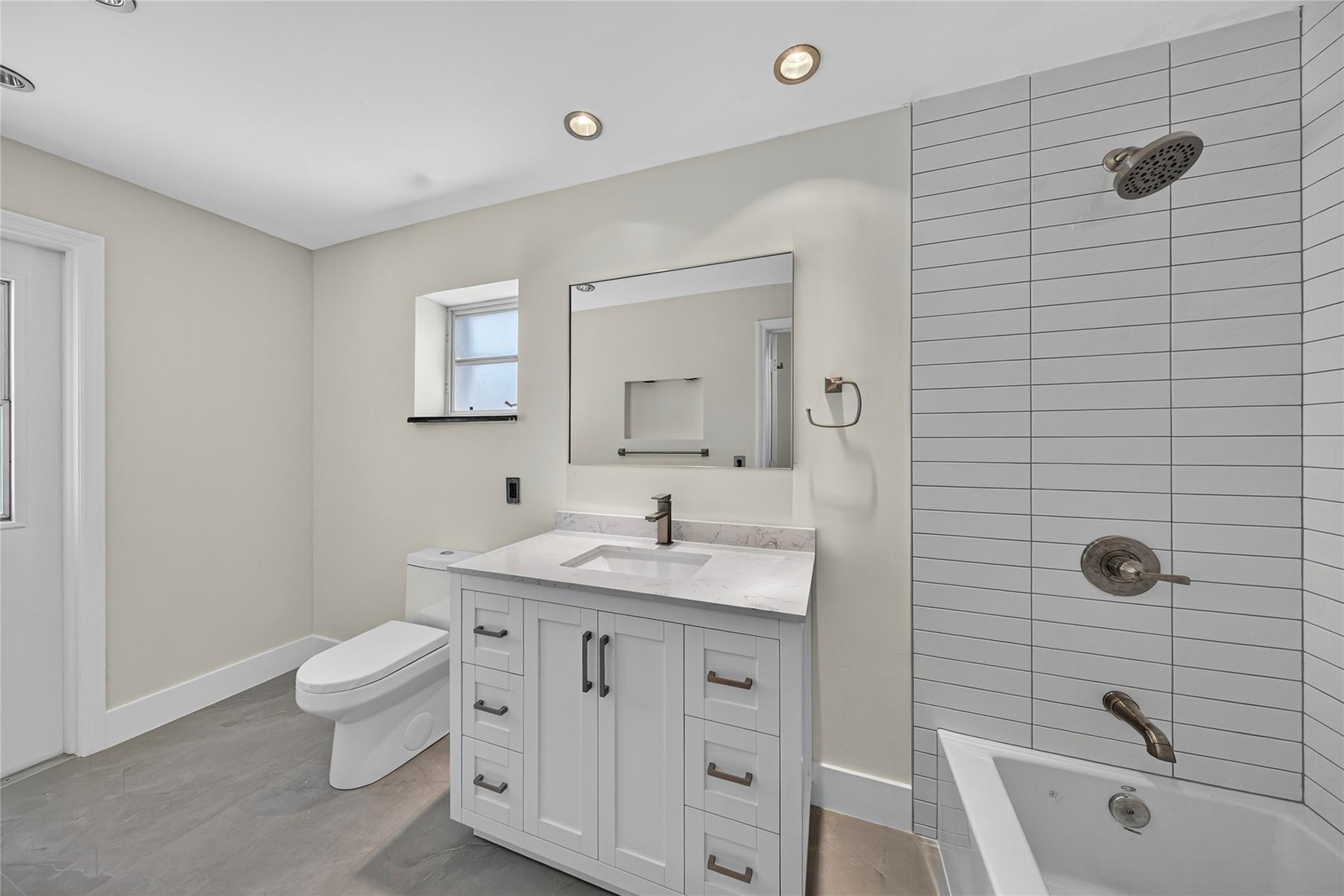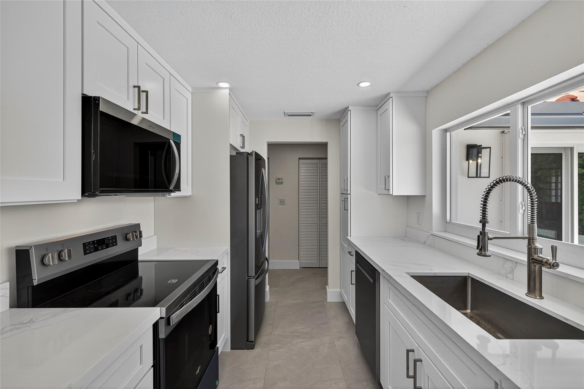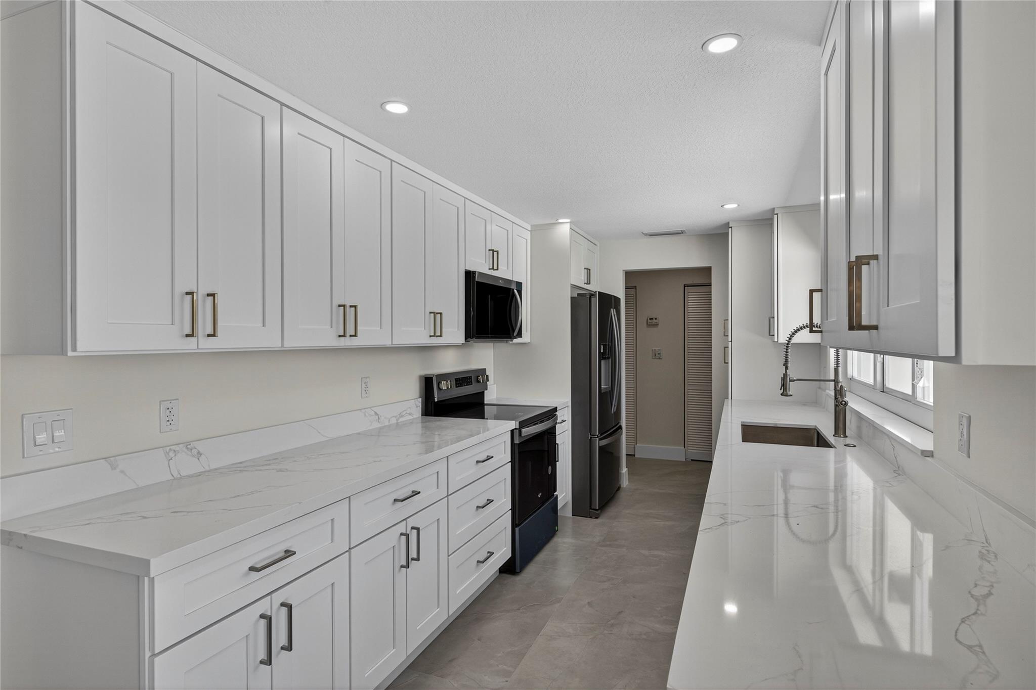 WOW! WATERFRONT POOL HOME UNDER 1 MILLION!! No expense was spared in COMPLETELY renovating this 3 bedroom, 3 bathroom home, all of which was fully PERMITTED and inspected. Ocean-access dock and 2-car garage complete all of the checked boxes. ALL new kitchen with quartz counters and upgraded NEW stainless appliances. BEAUTIFUL NEW 24x48 porcelain tile floors throughout. ALL new 3 full bathrooms, including is a CABANA bath. SPACIOUS master bedroom with high ceilings, HUGE walk-in closet and roomy master bathoom completely removed from the guest suites. All new lighting and ceiling fans. TONS of natural lighting, beautiful pool area on the water. This home is 100% turnkey and 100% hurricane ready as well! Full 2 car garage and double driveway for ample parking. TRULY a must see!