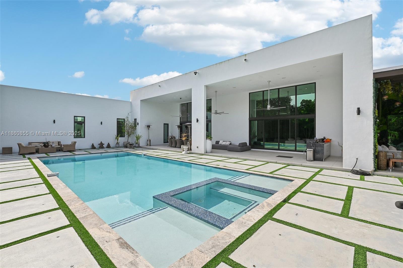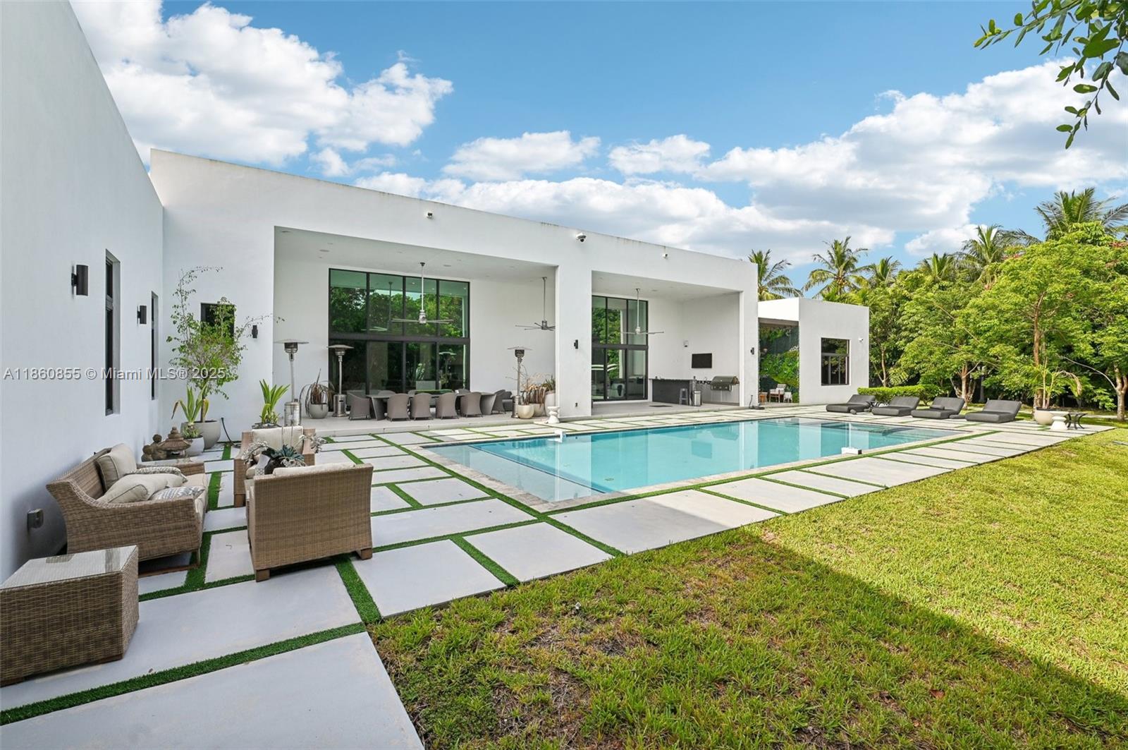 The Ultimate Modern Luxury Resort-Style Residence Flooded with natural light, this stunning 2020-built one-story home offers the perfect blend of elegance and comfort. Featuring 6 spacious bedrooms with en-suites, a dedicated den/office, wine room, and a sleek Italian kitchen with quartz countertops, this residence was designed for both everyday living and grand entertaining. High ceilings and porcelain floors flow seamlessly throughout. Step outside to a true private resort, with multiple outdoor living spaces including covered lounge areas with TVs and sofas, a gas fire pit with seating, dining area, and full BBQ/summer kitchen. Enjoy a spectacular infinity pool, hot tub, sauna, cold plunge and a gym. Furniture and artwork negotiable, this home is truly one-of-a-kind. Easy to show.