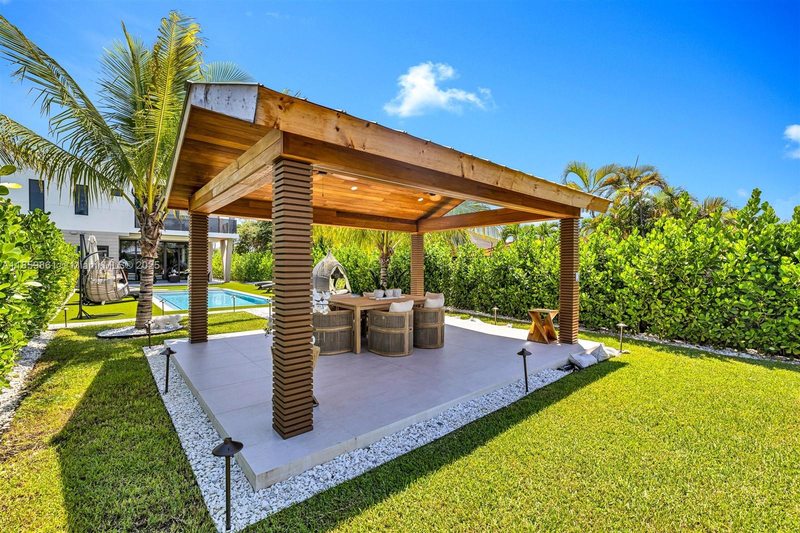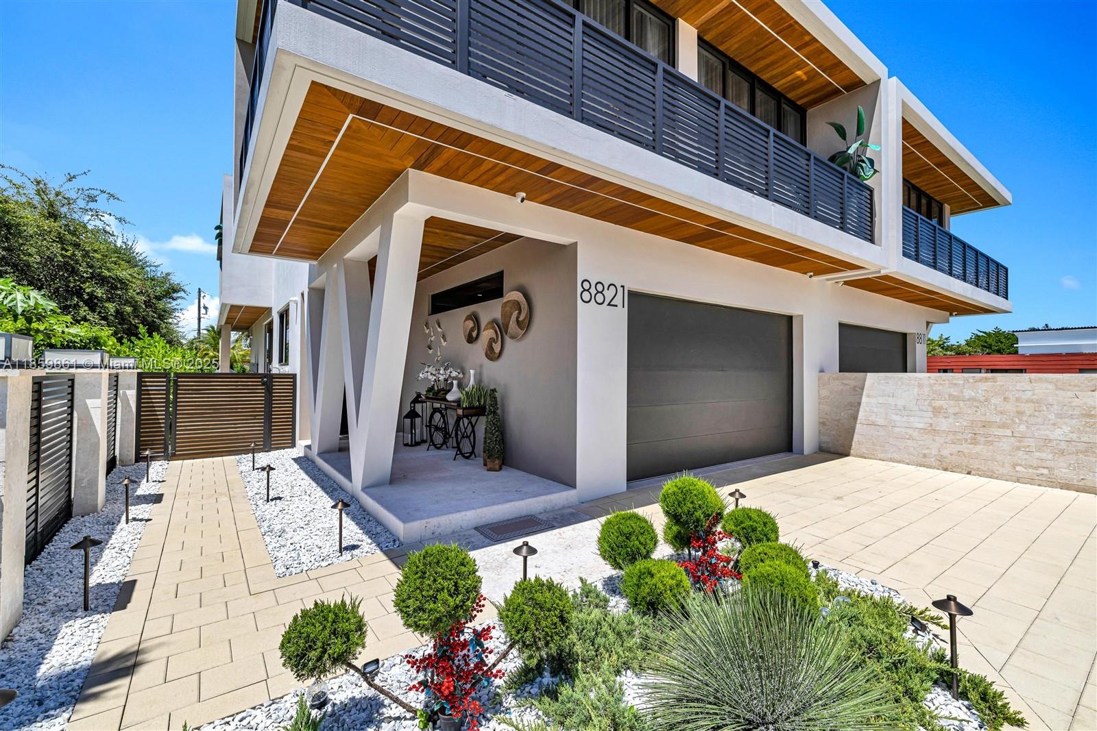 Built in 2024, this luxury twin home offers 3,385 sf of refined living space with 4 beds and 5 full baths. Designed with modern elegance, it features porcelain floors, high-impact windows, custom closet cabinetry, and soaring ceilings. The open-concept kitchen includes, all Thermador appliances, a butler’s pantry which connects to a 2-car garage. The exterior showcases coral stone and Brazilian teak, giving the home a striking tropical sophistication. Outdoor living includes a private pool, gazebo perfect for BBQ's, and lush, lighted landscaping. Fully gated for privacy, the home combines comfort with advanced amenities. Located near top schools, parks, and Miami attractions, it offers the perfect balance of luxury, convenience, and style for those seeking a move-in-ready modern residence.