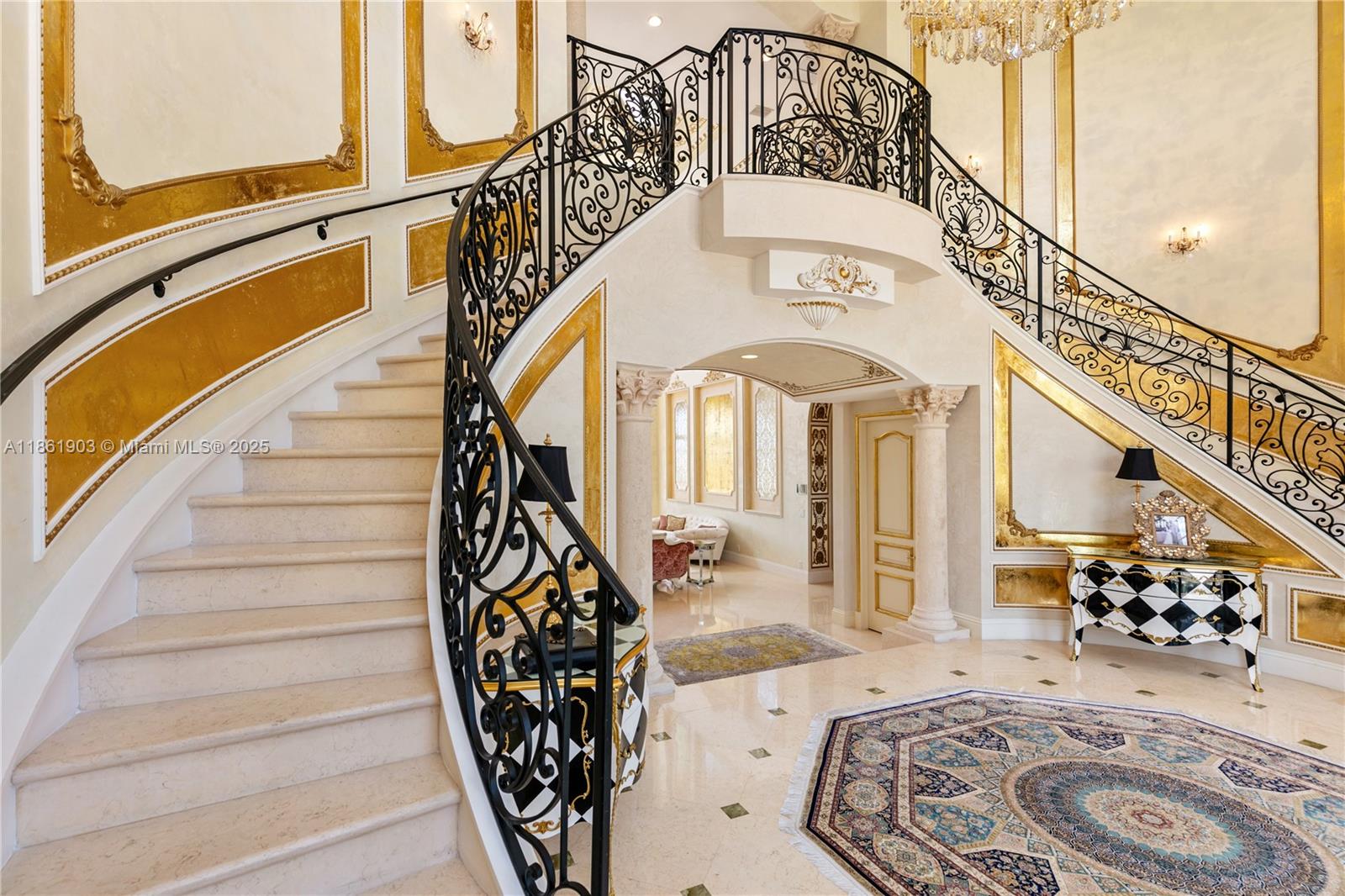 Welcome to "Bella Maison", a 2-story estate in the gated community of Windmill Reserve. Featuring 8BR/8FB/2HB, 4-car garage, Travertine circular driveway, on protected natural preserve w/ western sunsets. Marble & wood flooring, incredible gourmet kitchen, large island, walk-in pantry, granite, Wolf gas range & high-end appliances, 2 new Bosch dishwashers. Featuring home theater, game room, gym, elevator, bar/billiards room, office study, sunroom, up/down laundry rooms, 5 marble fireplaces & impact glass and doors. Owner's suite w/vast walk-in closets. French-renaissance style w/hand-painted artistry, crown moldings, gold/silver leaf foil & murals, 3 balconies, 2 fountains, decorated lions, lush landscape, heated pool & spa. *New roof in 2015. *5 new A/C units. This home is a must-see!