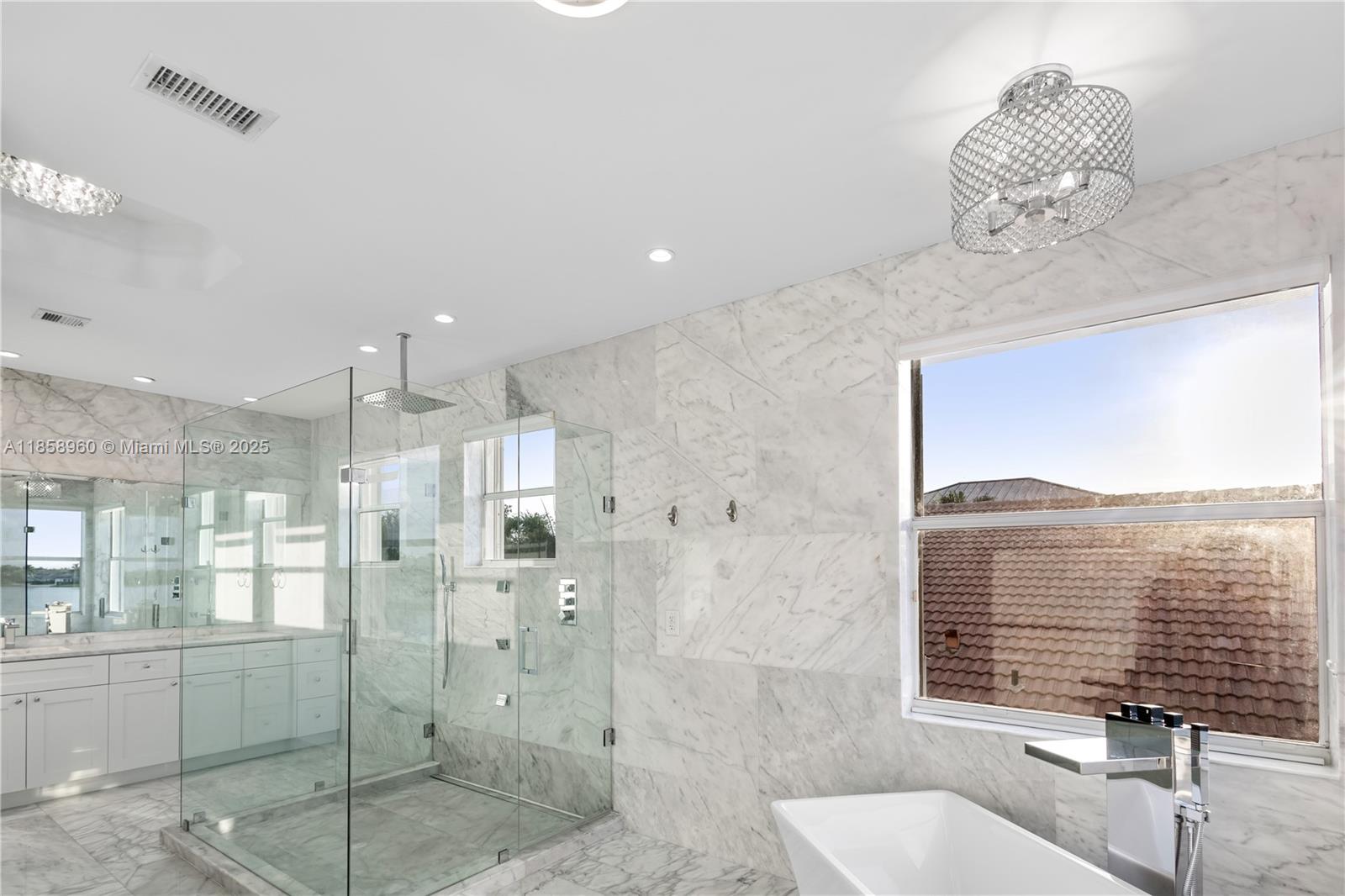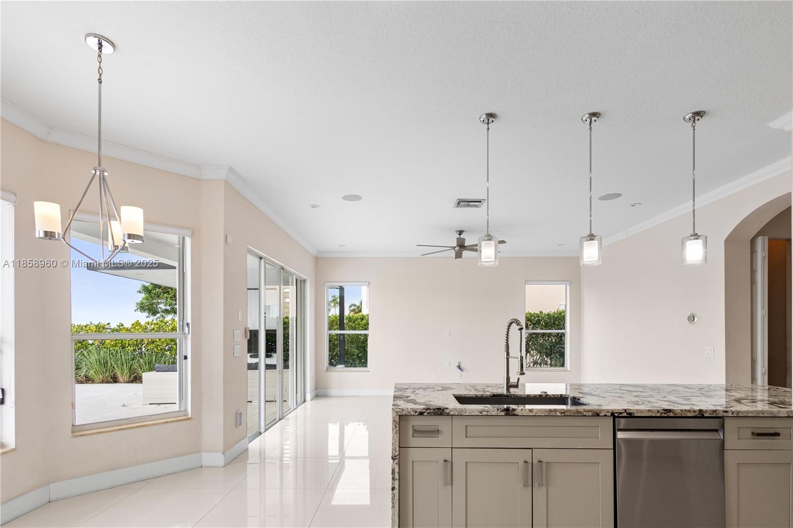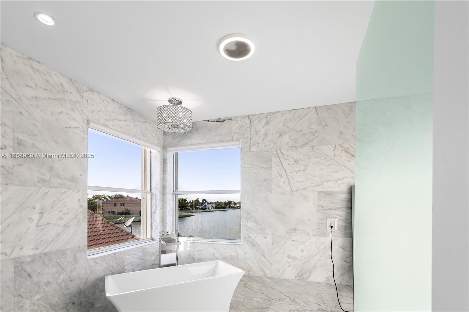 Rare Mile-Wide Lake View! This fully upgraded The roof was completed in April of 2024 6BR/4BA, 3-car garage home blends modern luxury with breathtaking water views. Gourmet kitchen with exotic granite waterfall counters, 3D backsplash, Samsung appliances, and soft-close cabinets. Spacious family room opens to panoramic lake scenery. Features 32"x32" porcelain floors, upgraded lighting, crown molding, glass stair rails. Master suite with sitting area, Italian marble spa bath, freestanding tub, and custom walk-in closet. Accordion shutters, new landscaping, custom laundry, and amazing pool.