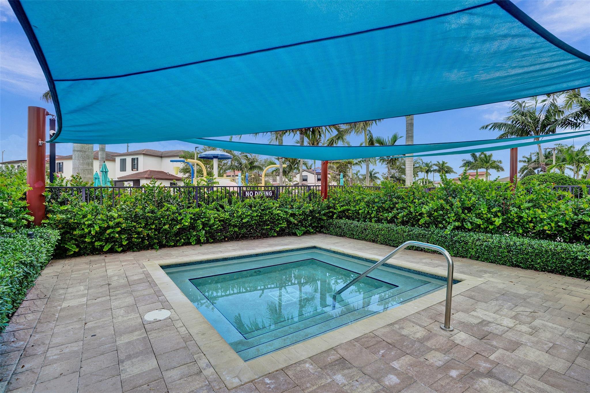 Absolutely stunning modern townhouse nested in the luxury gated AQUABELLA community! This 2018 Lennar built home offers 1959sqft of living area with 3 bedrooms and 3 bathrooms plus a good size family room which can be used as 4th bedroom to accommodate big family. The house features all tiles flooring downstairs and carpeting upstairs, granite countertop for spaces kitchen with Stainless-steel appliances. Master Bedroom has tray ceiling. 1-car garage with epoxy floor, tankless water heater. Private paved patio opens back to park/green area of parking lots. House is only 5" walk to waterfront resort style Clubhouse with business/fitness center, sparkling pools, splash park. Easy access to I75, turnpike & Okeechobee highways and shopping district. HOA $142.53/month. **EASY TO SHOW AND SELL**