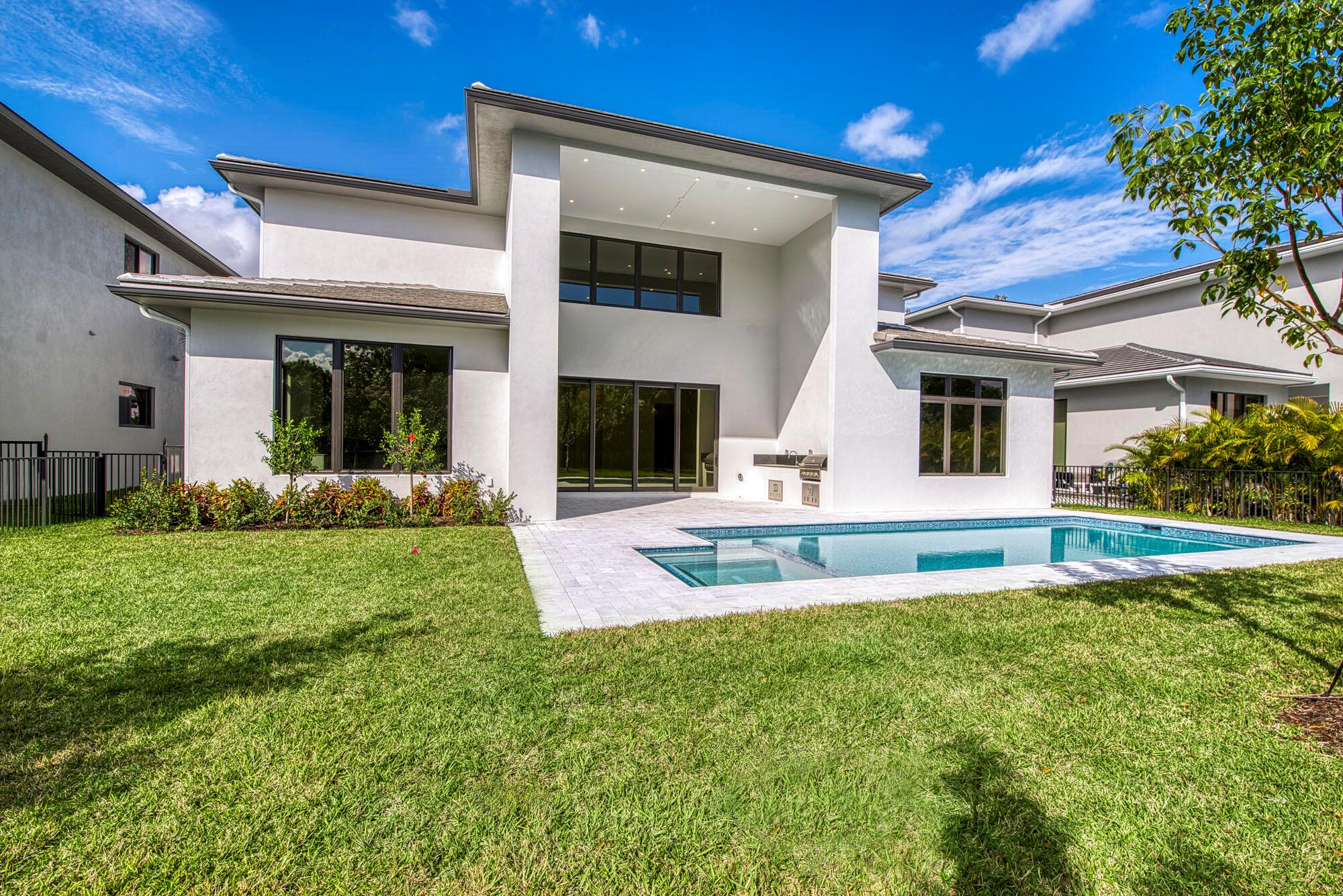 Brand new construction right in the heart of Jupiter, this stunning 6 bed, 6.5 bath, two-story home spans 4,906 sq feet of pure perfection. The attention to detail and seamless flow throughout are realized upon the moment of entry. Elegant and open, the main living area features 10 ft floor to ceiling sliders offering a dramatic indoor/outdoor living experience. The chef's kitchen features waterfall quartz countertops, tons of cabinet space, and top of the line Sub Zero and Wolf appliances. The ground floor primary suite boasts dual walk-in closets, separate dual shower and soaking tub, and beautiful porcelain tile extending from floors to ceiling. Upstairs you'll find a spacious bonus loft area along with sizable bedrooms