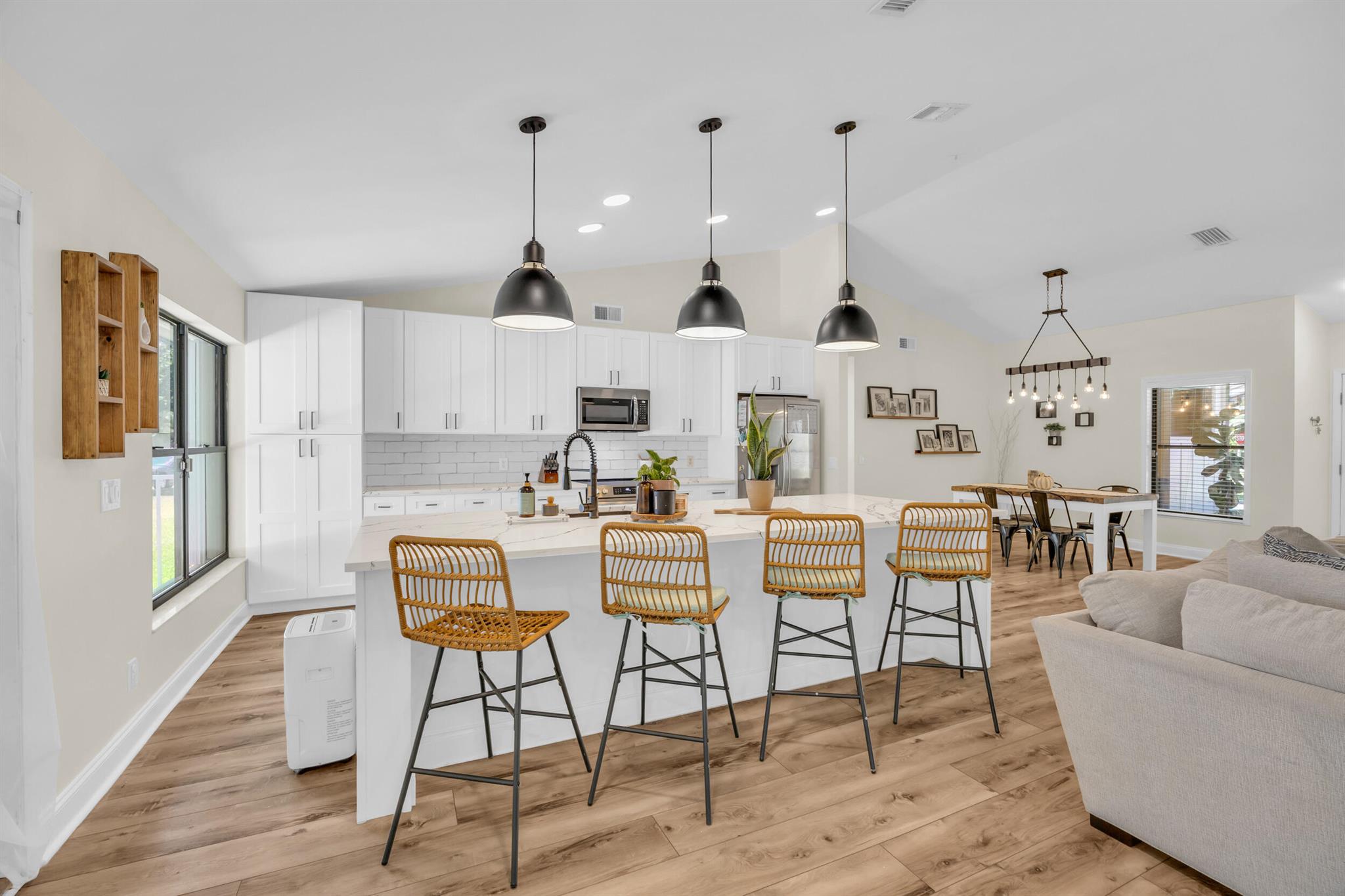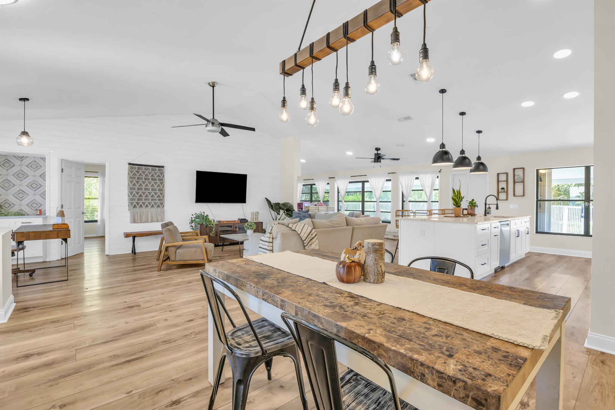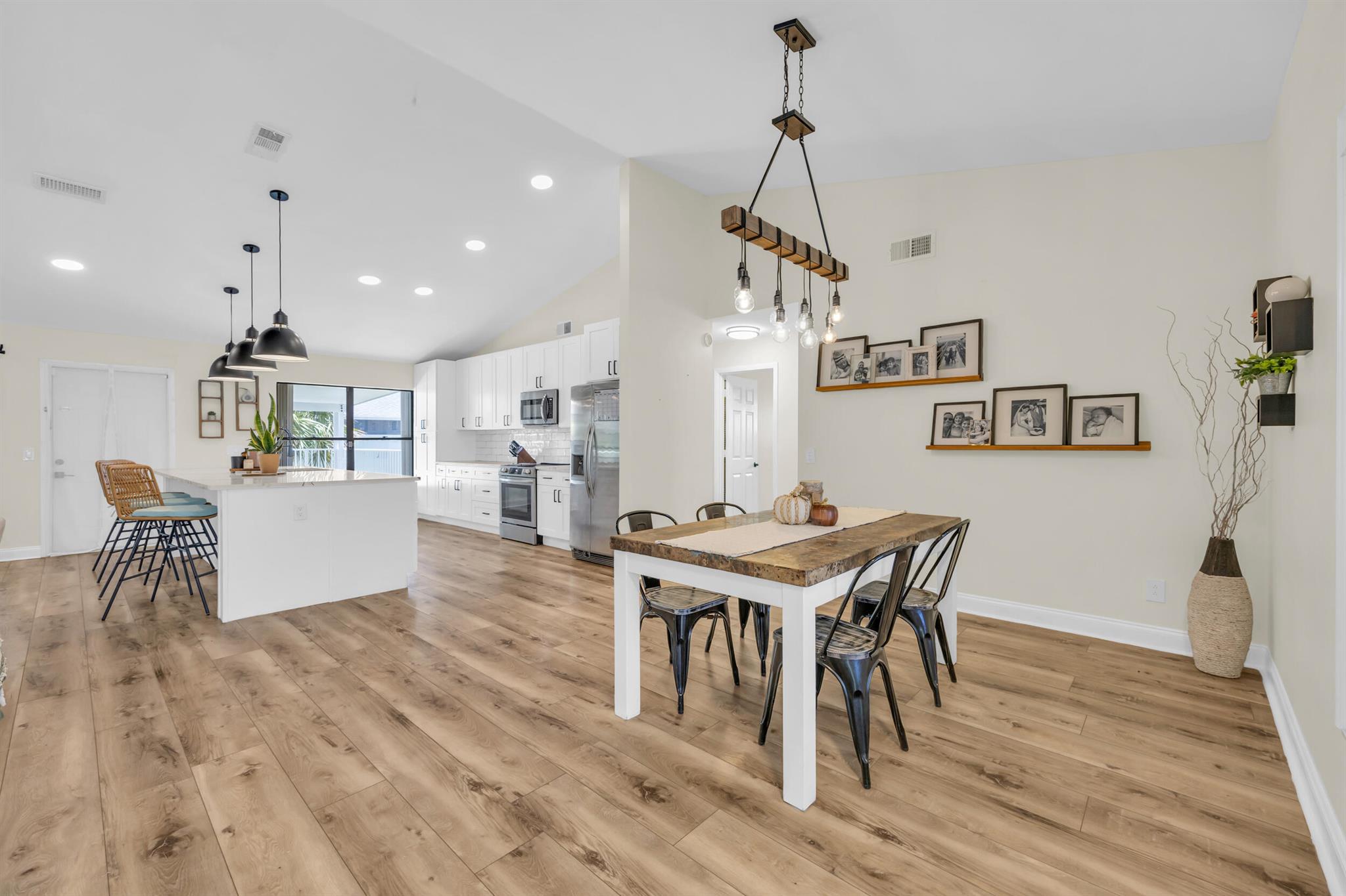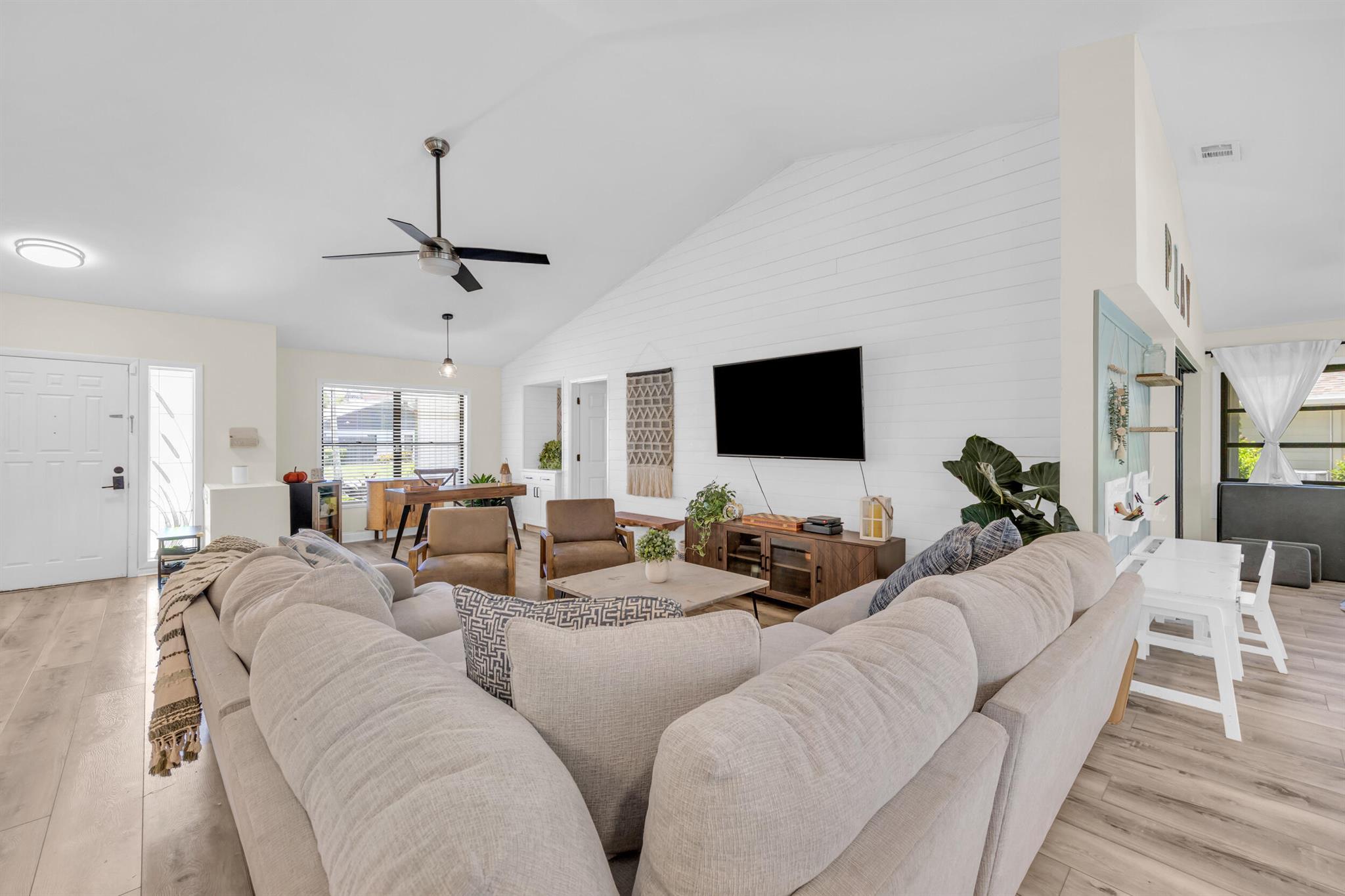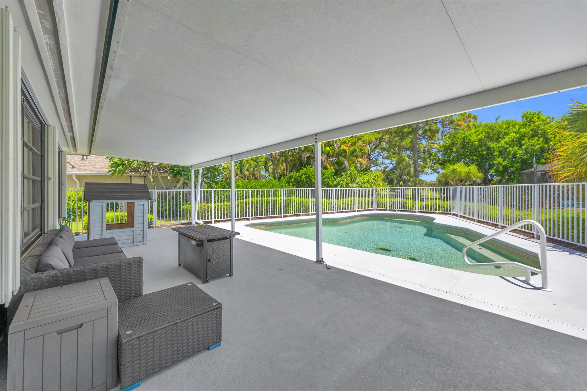 A true value in charming Hobe Sound. This 3-bedroom pool home sits on a private, corner lot and offers golf course views. High ceilings, open concept layout, coastal updates and large windows make this home feel inviting and larger than it's 2,340 square feet. Updated flooring, kitchen, guest bathroom, lighting and trim work add character. The newer roof and A/C add peace of mind. Bonus features include a split floor plan, large laundry room, playroom/den space, and a convenient circular driveway. Amenities include a community pool, hot tub and tennis/pickleball courts. You also have direct access to Heritage Ridge Golf Course. Hobe Sound is a picture of a thriving ''Old Florida'' community. Come enjoy serene beaches, boating access, golf courses, and restaurants. This is the one.