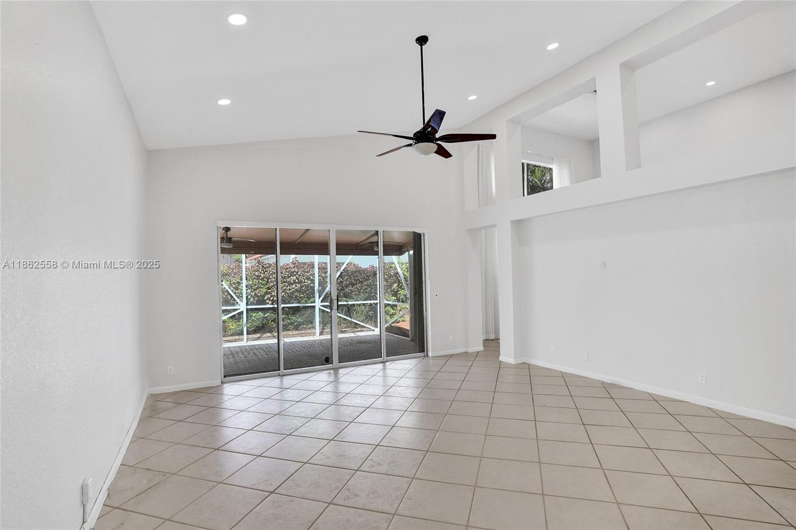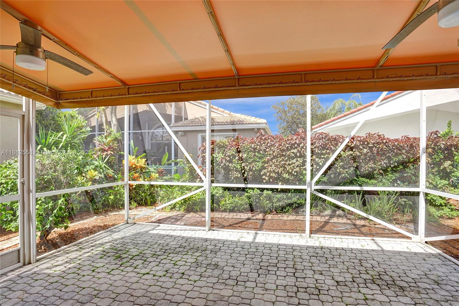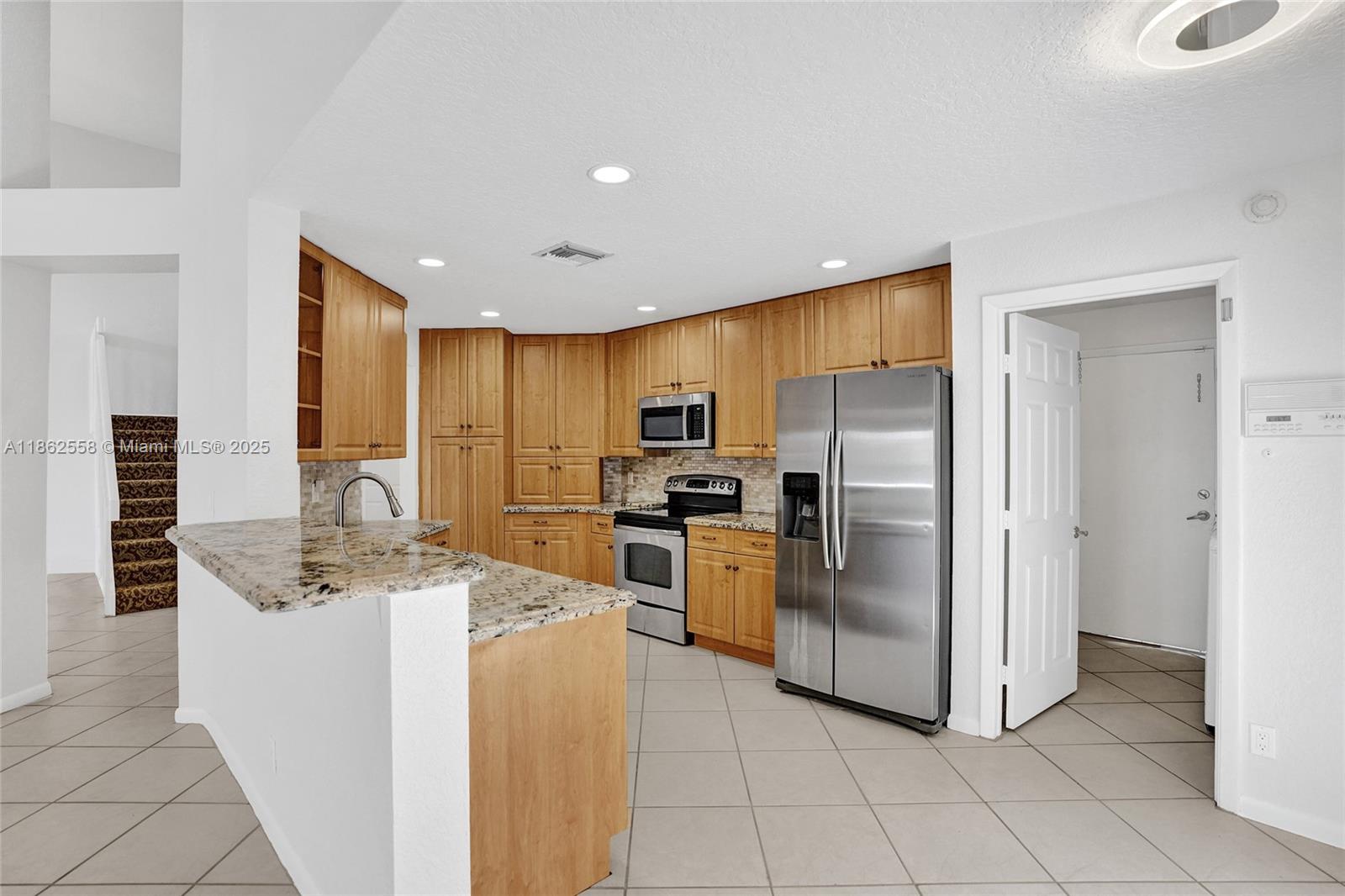 HURRY! NEW ROOF! Discover exceptional value in this updated 2-story home.This light & bright residence offers 3 bedrooms (desirable downstairs primary suite), a flexible built-in office/loft area, impressive volume ceilings with recessed LED lighting, tasteful off-white tile set on the diagonal, luxury vinyl flooring. The open-concept kitchen features 42'' light oak cabinetry, gleaming granite countertops, a marble tile backsplash, and stainless steel appliances, all complemented by a charming breakfast nook. Enjoy the convenience of updated bathrooms and a newer washer & dryer. Accordion hurricane shutters provide storm protection. A additional room adds extra living space, while the private backyard retreat features an inviting screened patio surrounded by lush landscape design .