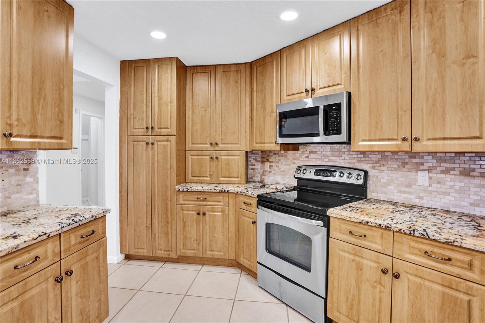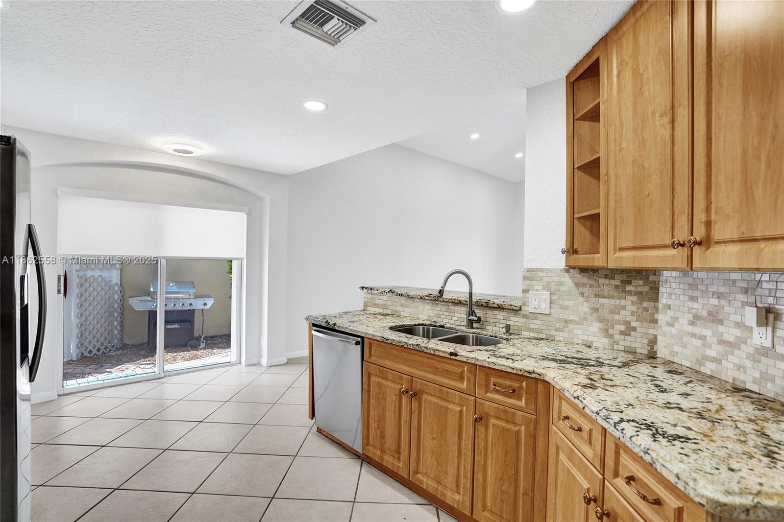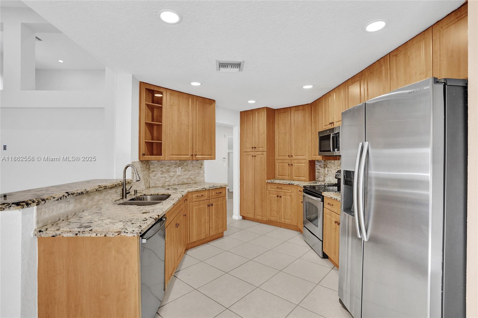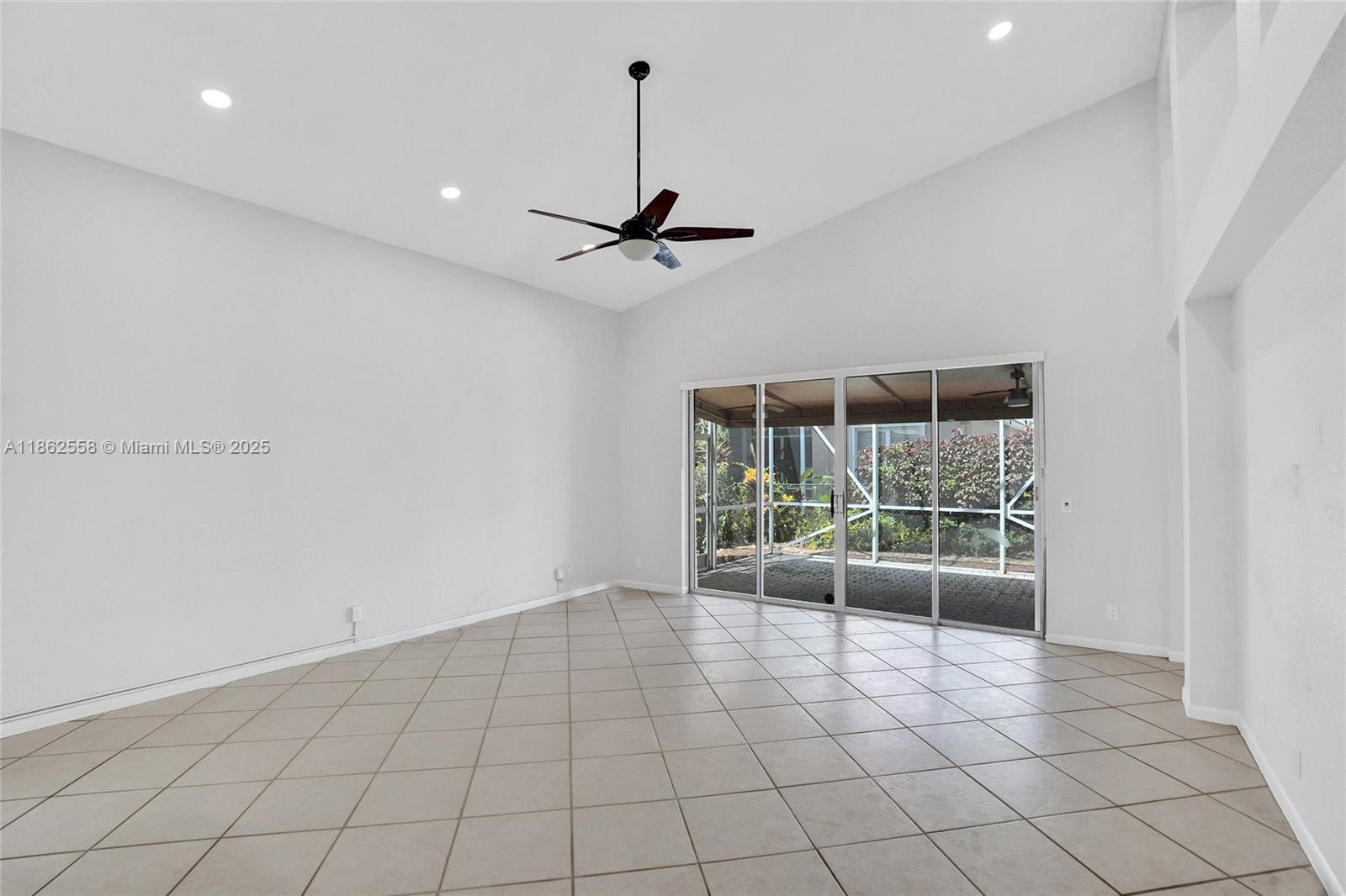 HURRY! NEW ROOF! Discover exceptional value in this updated 2-story home.This light & bright residence offers 3 bedrooms (desirable downstairs primary suite), a flexible built-in office/loft area, impressive volume ceilings with recessed LED lighting, tasteful off-white tile set on the diagonal, luxury vinyl flooring. The open-concept kitchen features 42'' light oak cabinetry, gleaming granite countertops, a marble tile backsplash, and stainless steel appliances, all complemented by a charming breakfast nook. Enjoy the convenience of updated bathrooms and a newer washer & dryer. Accordion hurricane shutters provide storm protection. A additional room adds extra living space, while the private backyard retreat features an inviting screened patio surrounded by lush landscape design .