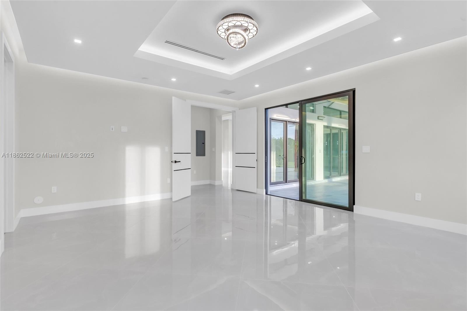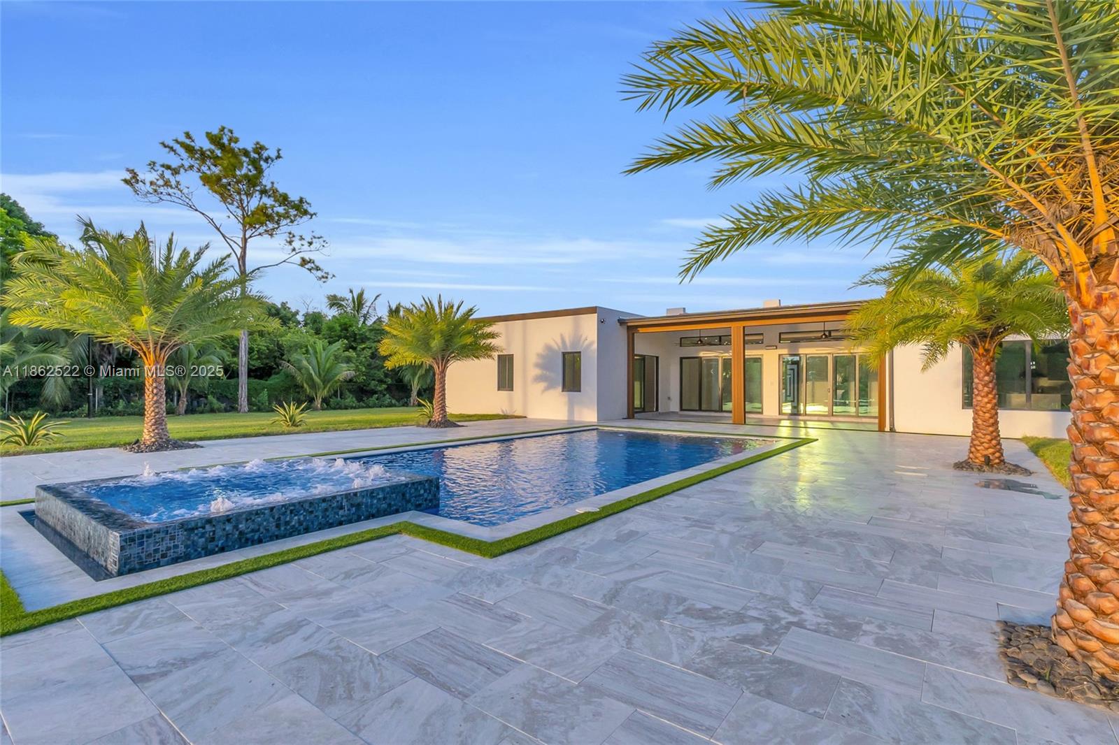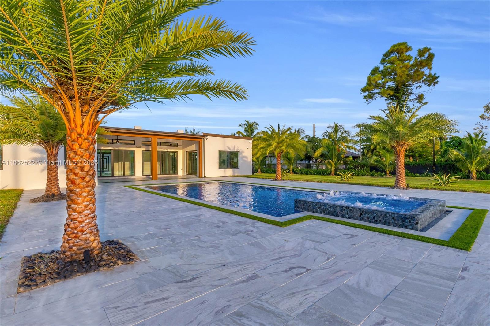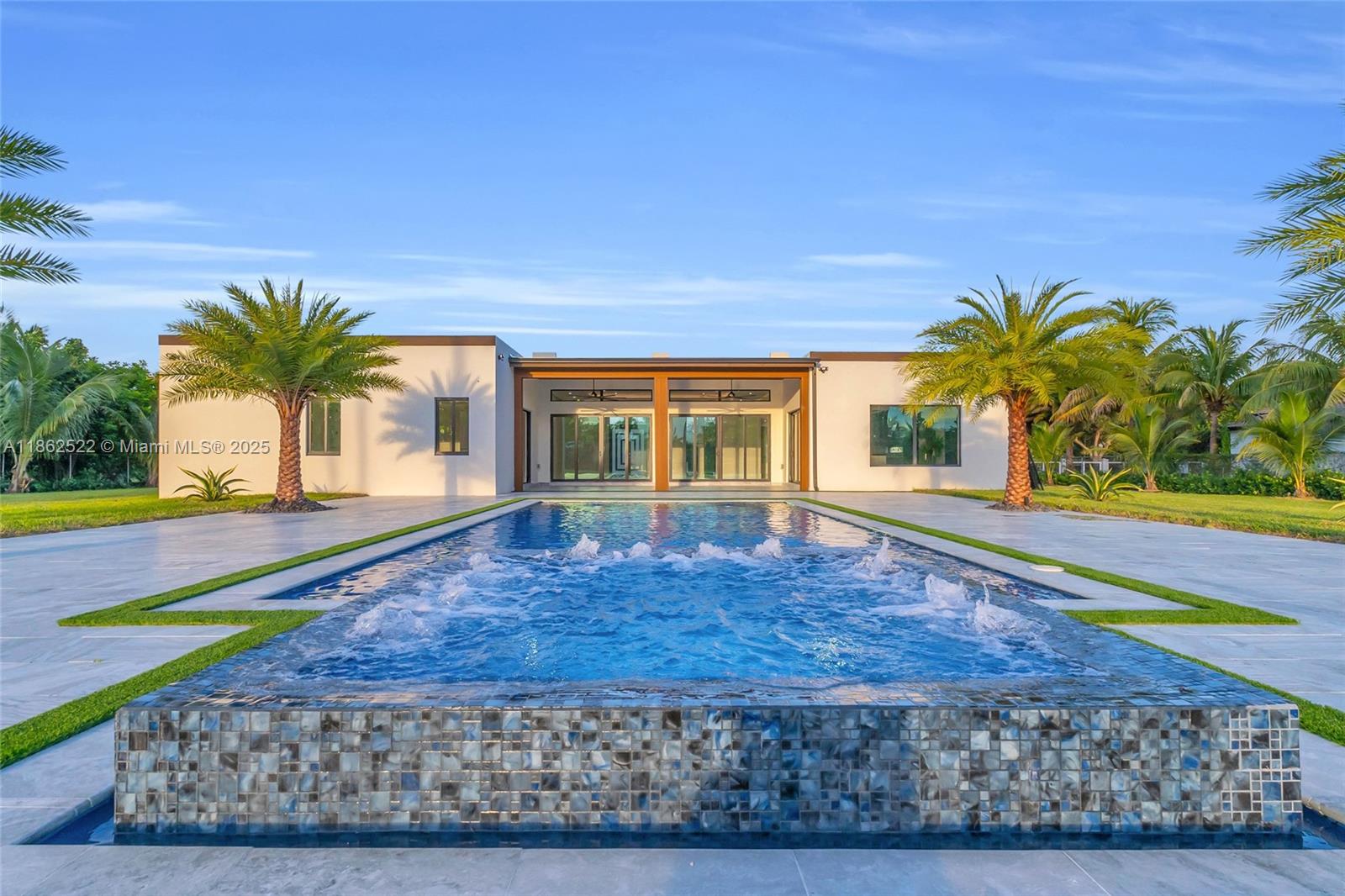 Discover unparalleled luxury in this brand-new custom estate with exquisite finishes. This expansive single-level home offers 4 bedrooms, 3.5 bathrooms, a spacious laundry room, and a chef’s kitchen with sleek cabinetry, premium appliances, and a marble waterfall island. The open-concept layout boasts soaring ceilings and modern design. The owner’s suite features a spa-inspired bath with freestanding tub, rainfall shower, and custom walk-in closet, while a second master with private bath adds flexibility. Set on 1.2 acres, the outdoor oasis showcases a saltwater pool, Jacuzzi, and terrace with fans and speakers. A gated entrance, 2-car garage, and parking for 20 complete this private retreat, minutes from Black Point Marina and Biscayne National Park.