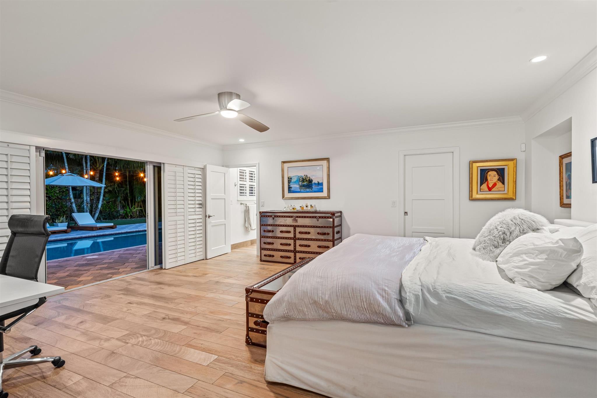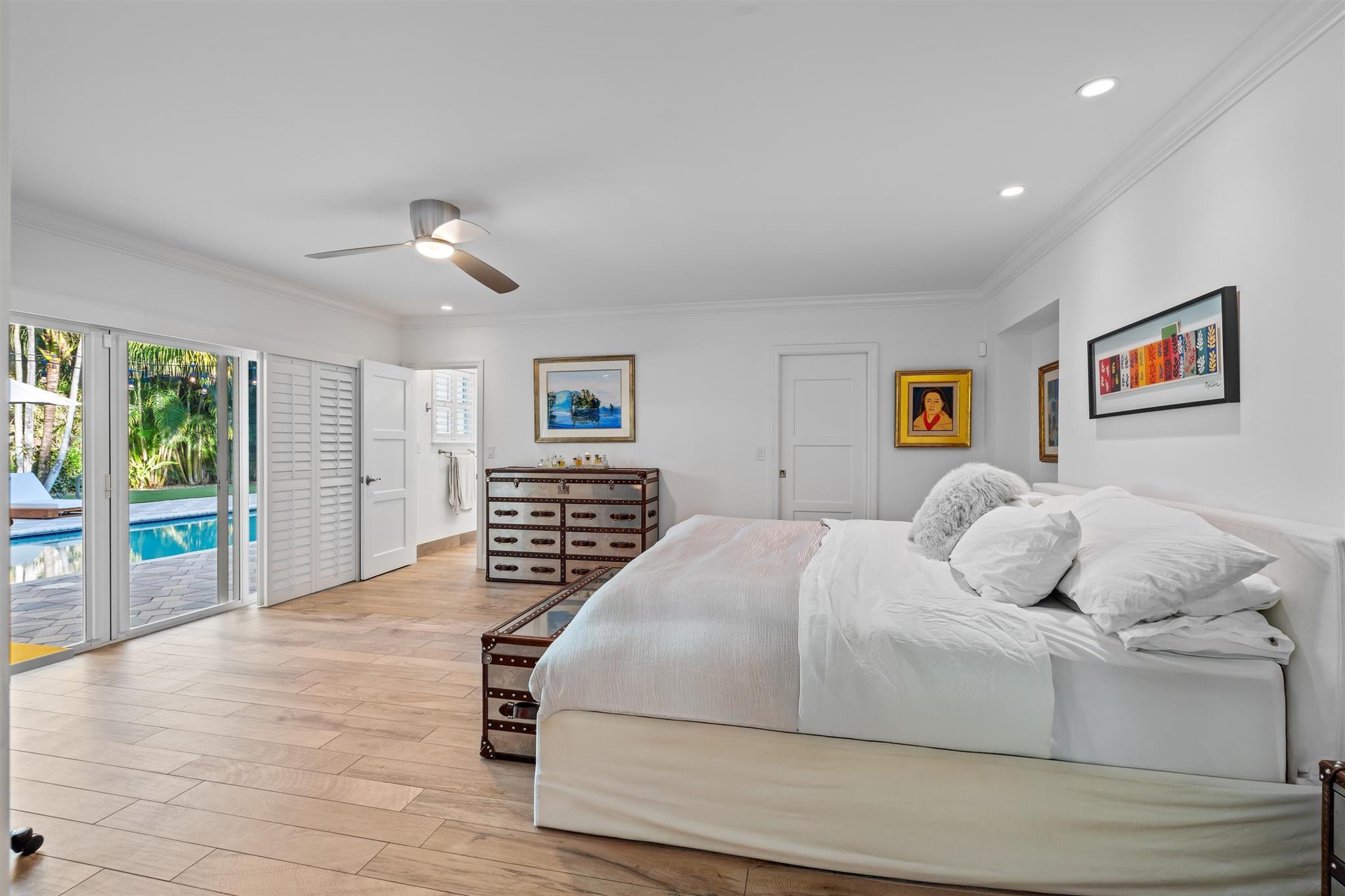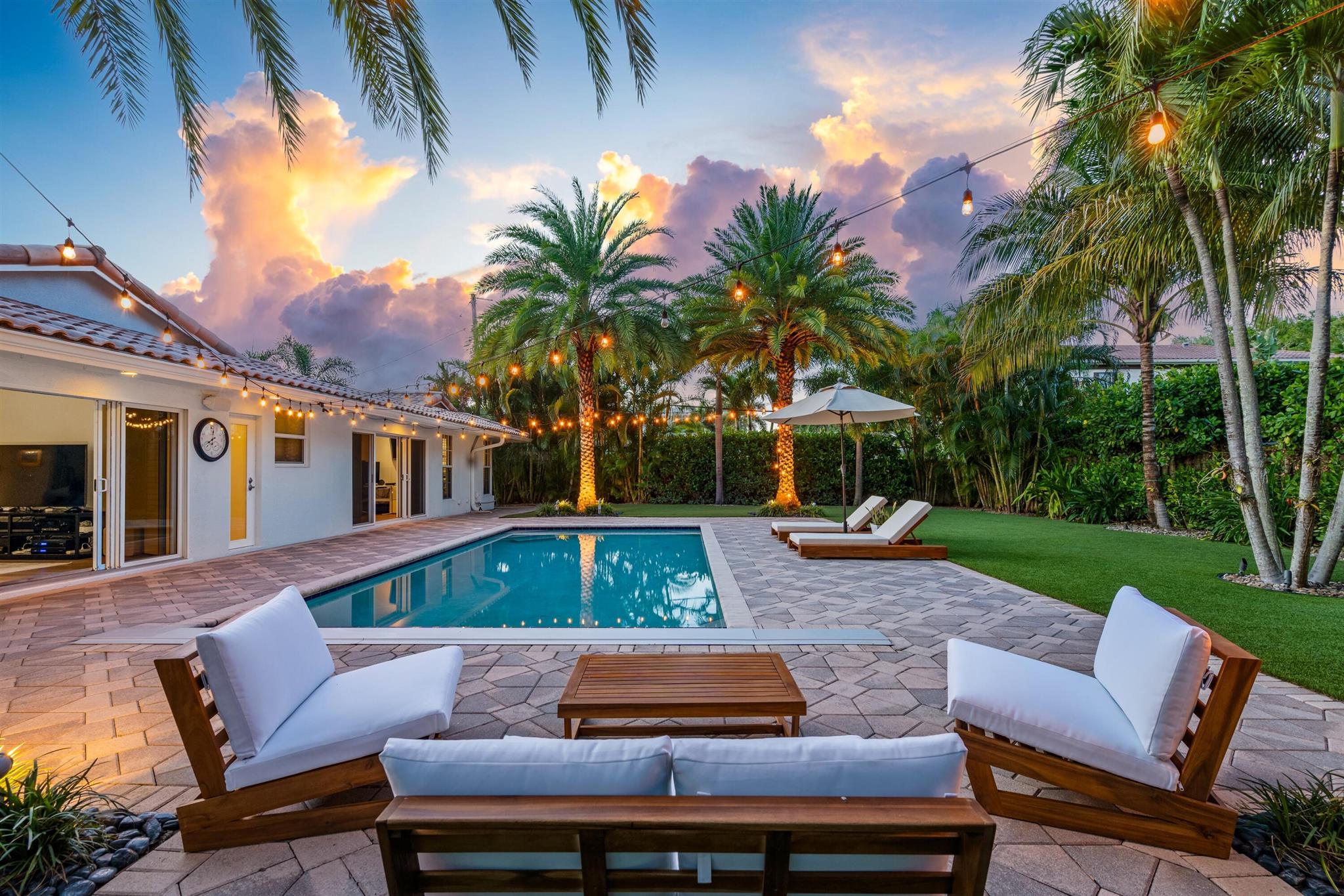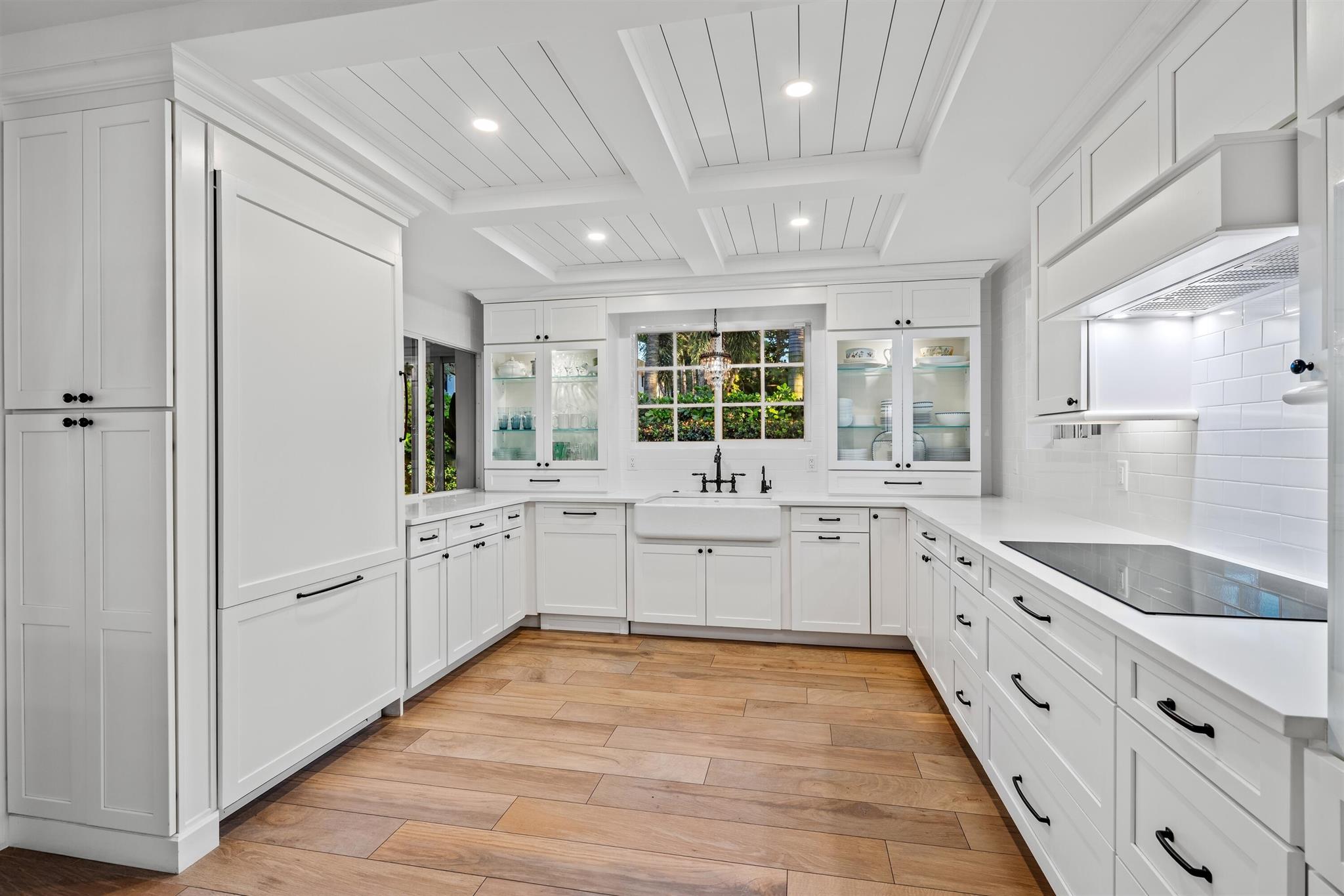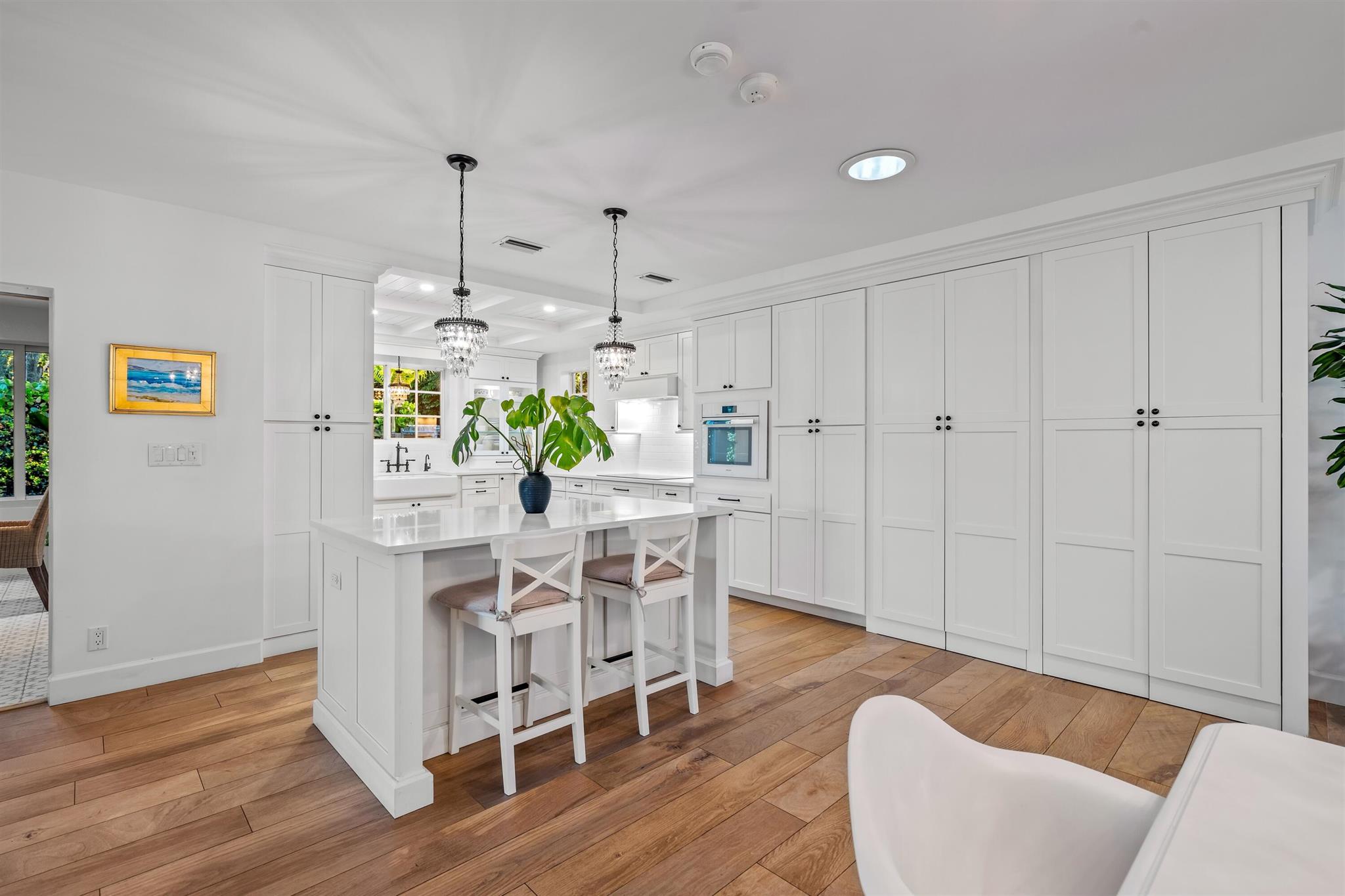Blending West Indies charm with modern luxury, this renovated residence, with four bedrooms and 3,373+/- total square feet, conveys a relaxed casual elegance that emphasizes easy livability and care-free maintenance. Impact-glass sliding windows and doors from all main rooms offer serene pool and garden views, designed in an open flowing layout that meets every need for gracious entertaining. The temperature-controlled 200-bottle wine room, perfectly positioned next to the dining area, is a connoisseur's delight, while the spacious great room adjoins the gourmet kitchen appointed with high-end Miele appliances. Imported Italian wide plank wood style porcelain tile flooring throughout and Plantation shutters in the living areas and bedrooms lend a coastal ambience.