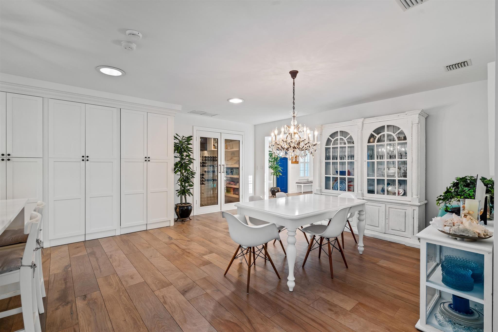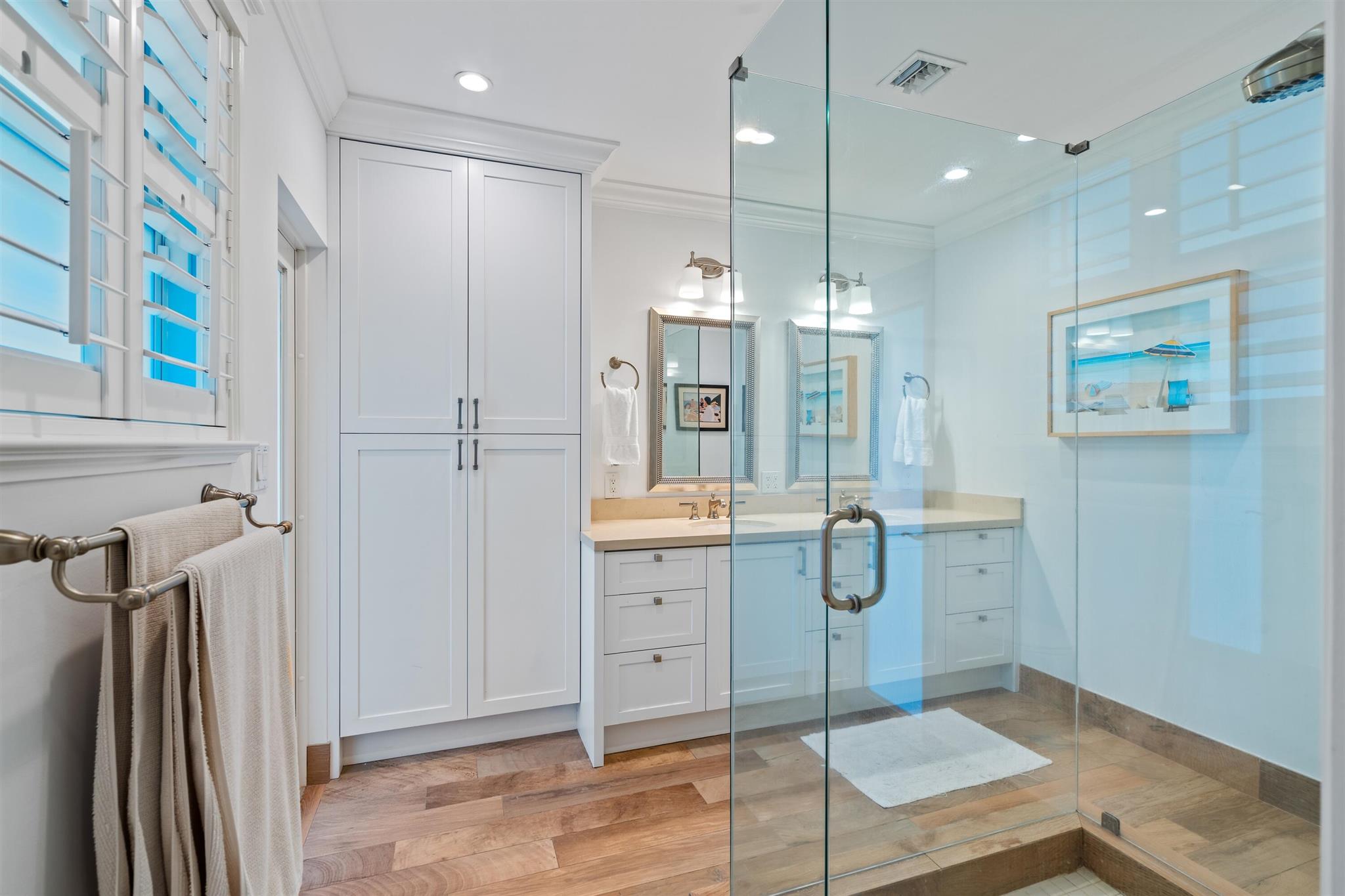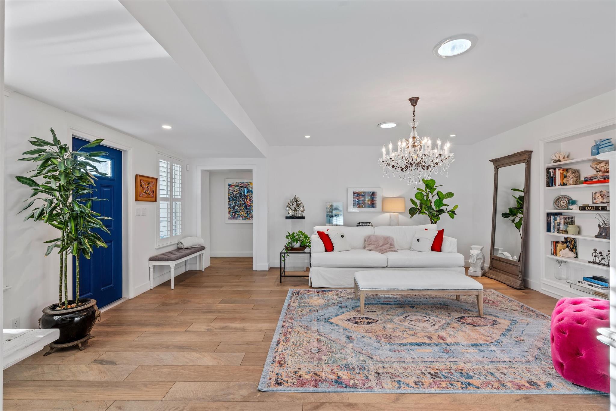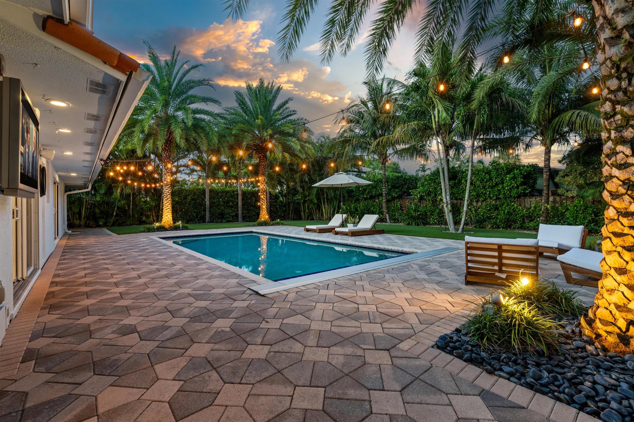 Blending West Indies charm with modern luxury, this renovated residence, with four bedrooms and 3,373+/- total square feet, conveys a relaxed casual elegance that emphasizes easy livability and care-free maintenance. Impact-glass sliding windows and doors from all main rooms offer serene pool and garden views, designed in an open flowing layout that meets every need for gracious entertaining. The temperature-controlled 200-bottle wine room, perfectly positioned next to the dining area, is a connoisseur's delight, while the spacious great room adjoins the gourmet kitchen appointed with high-end Miele appliances. Imported Italian wide plank wood style porcelain tile flooring throughout and Plantation shutters in the living areas and bedrooms lend a coastal ambience.