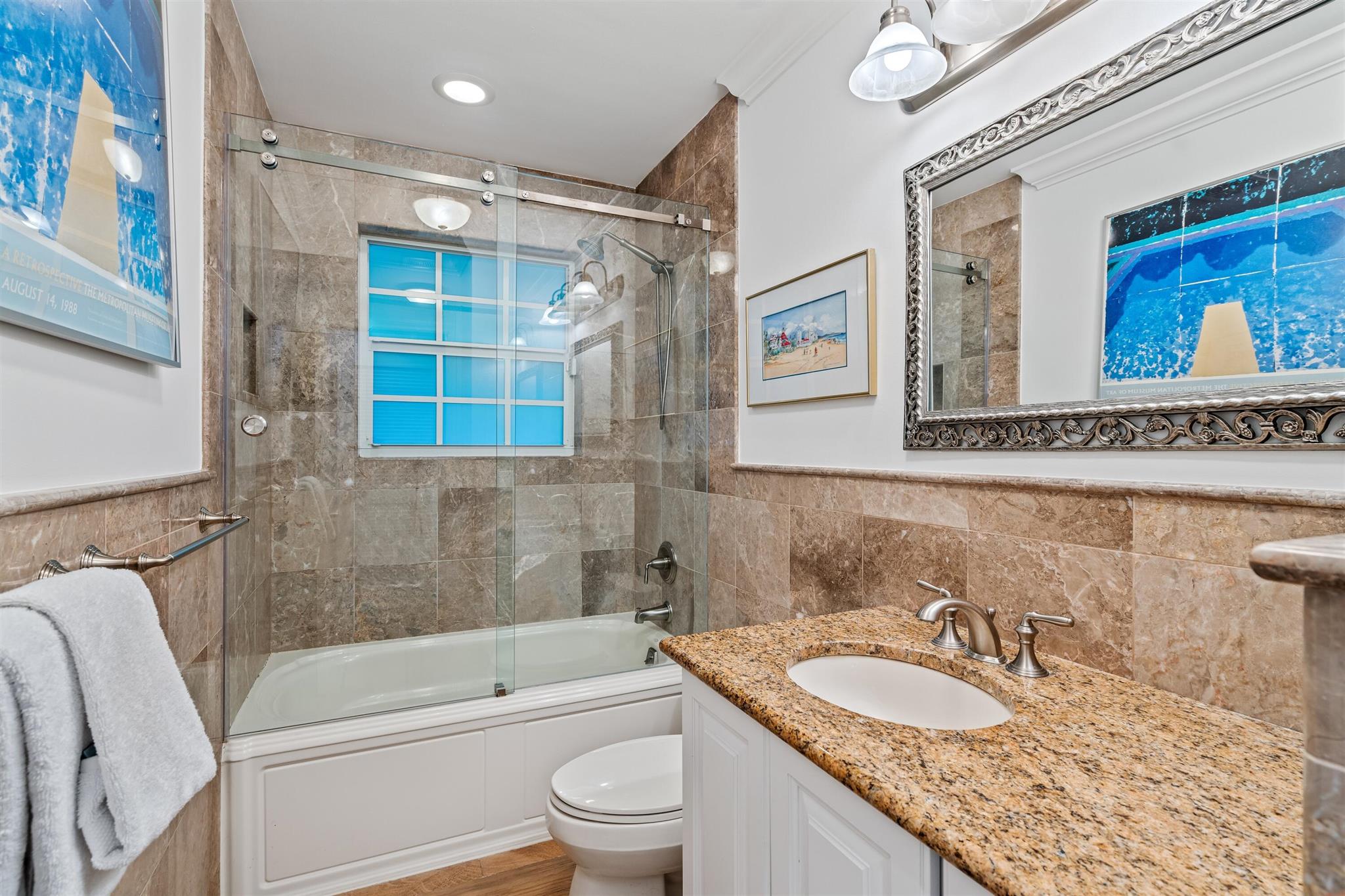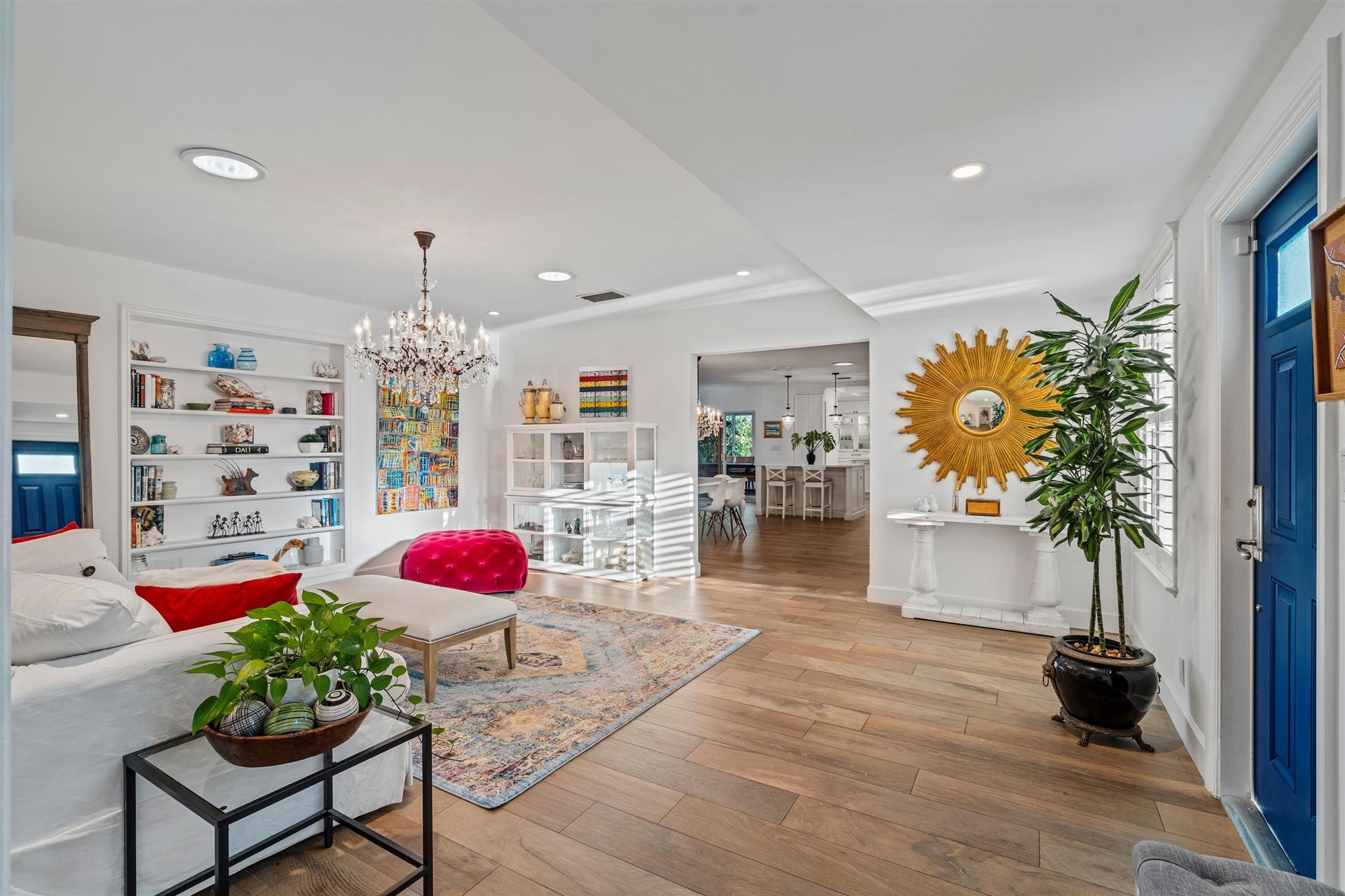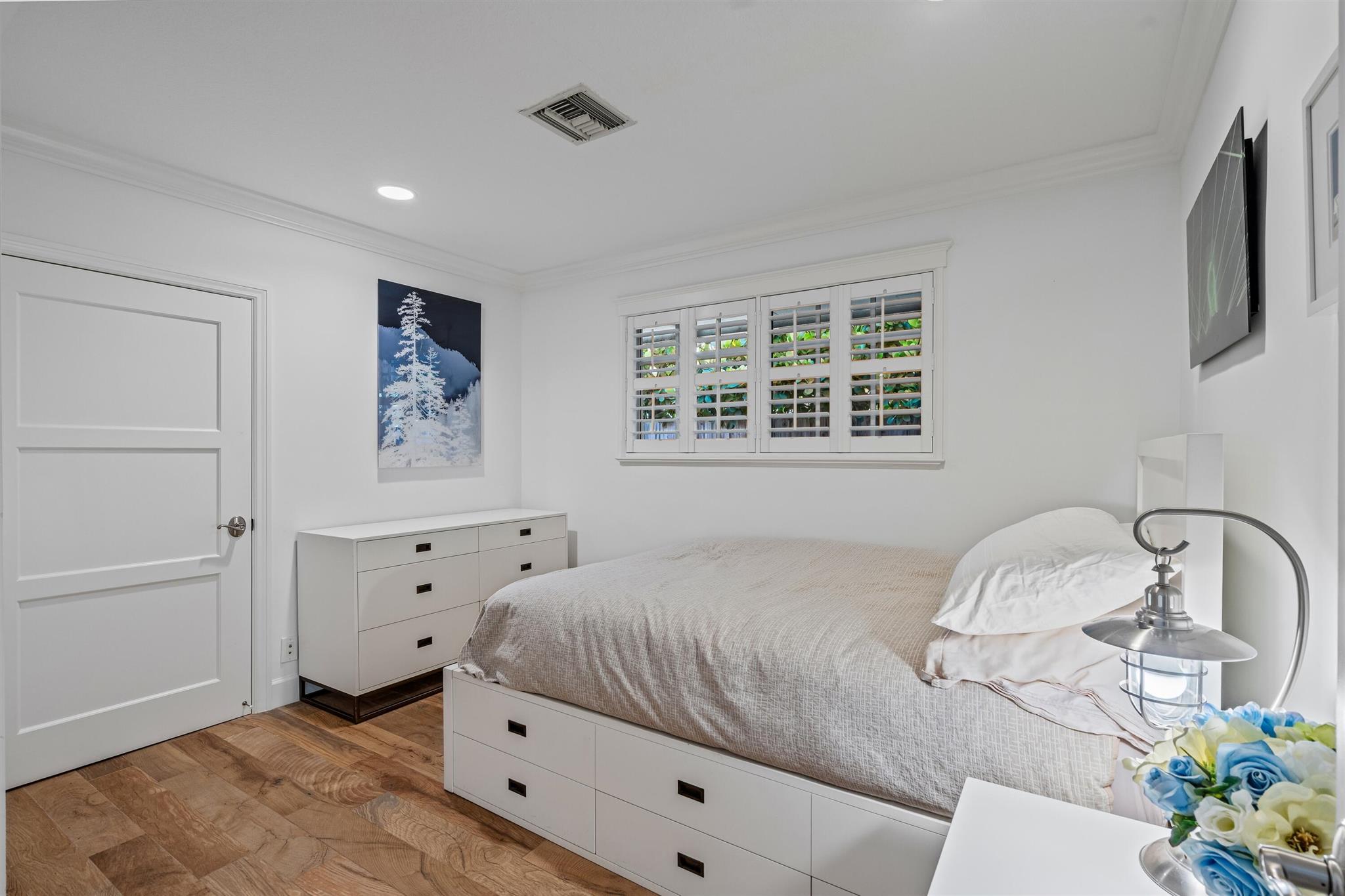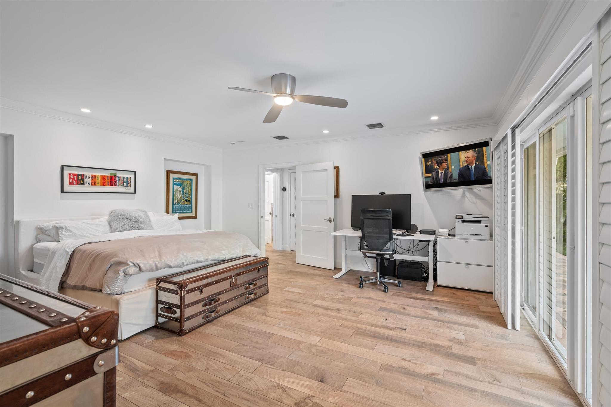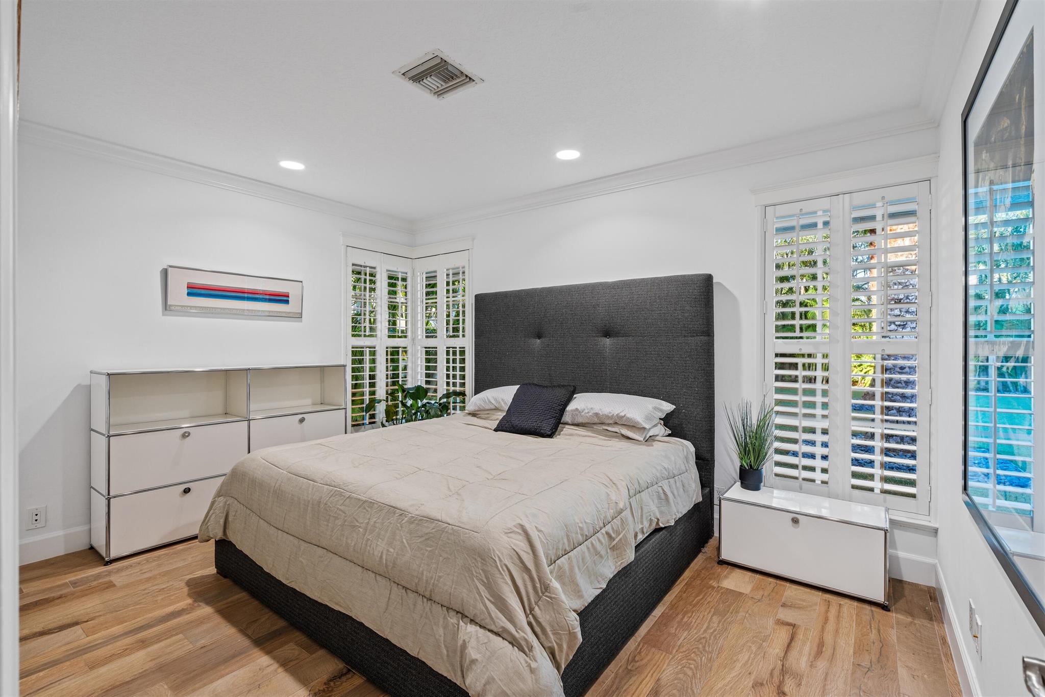 Blending West Indies charm with modern luxury, this renovated residence, with four bedrooms and 3,373+/- total square feet, conveys a relaxed casual elegance that emphasizes easy livability and care-free maintenance. Impact-glass sliding windows and doors from all main rooms offer serene pool and garden views, designed in an open flowing layout that meets every need for gracious entertaining. The temperature-controlled 200-bottle wine room, perfectly positioned next to the dining area, is a connoisseur's delight, while the spacious great room adjoins the gourmet kitchen appointed with high-end Miele appliances. Imported Italian wide plank wood style porcelain tile flooring throughout and Plantation shutters in the living areas and bedrooms lend a coastal ambience.
