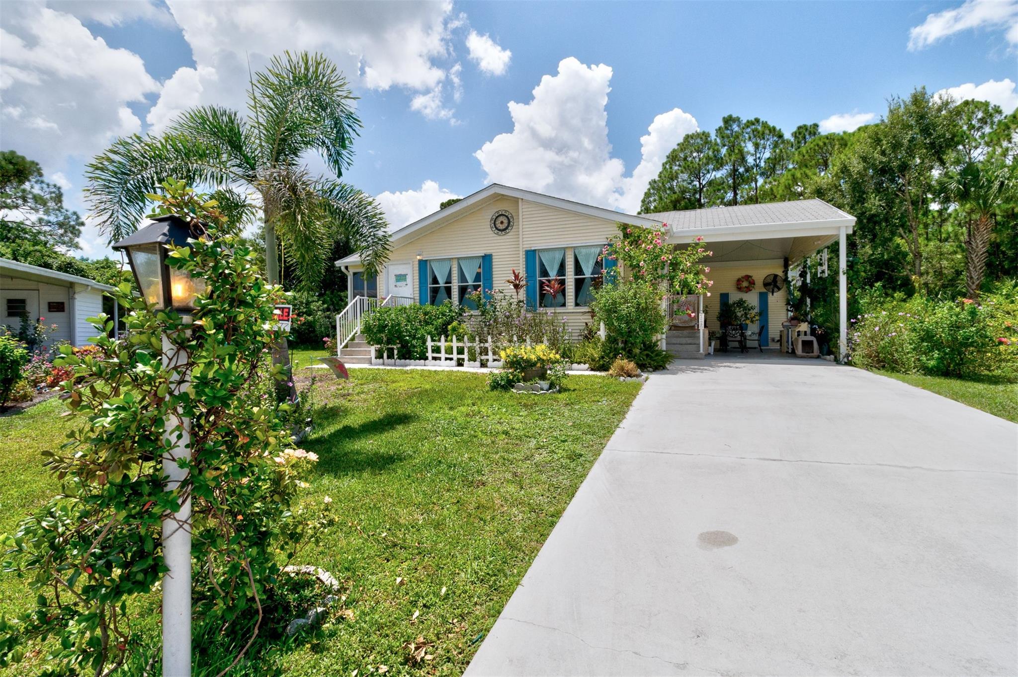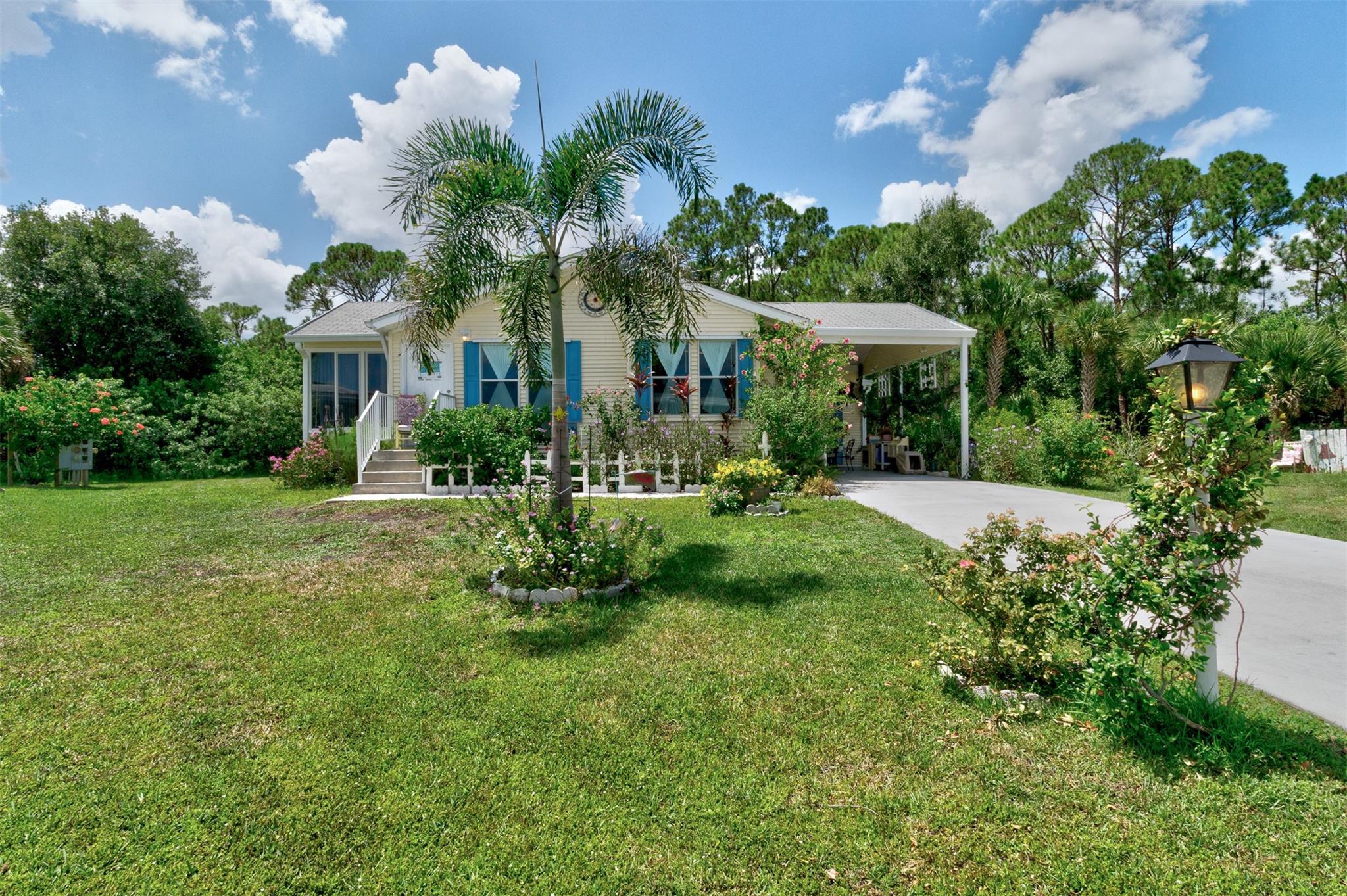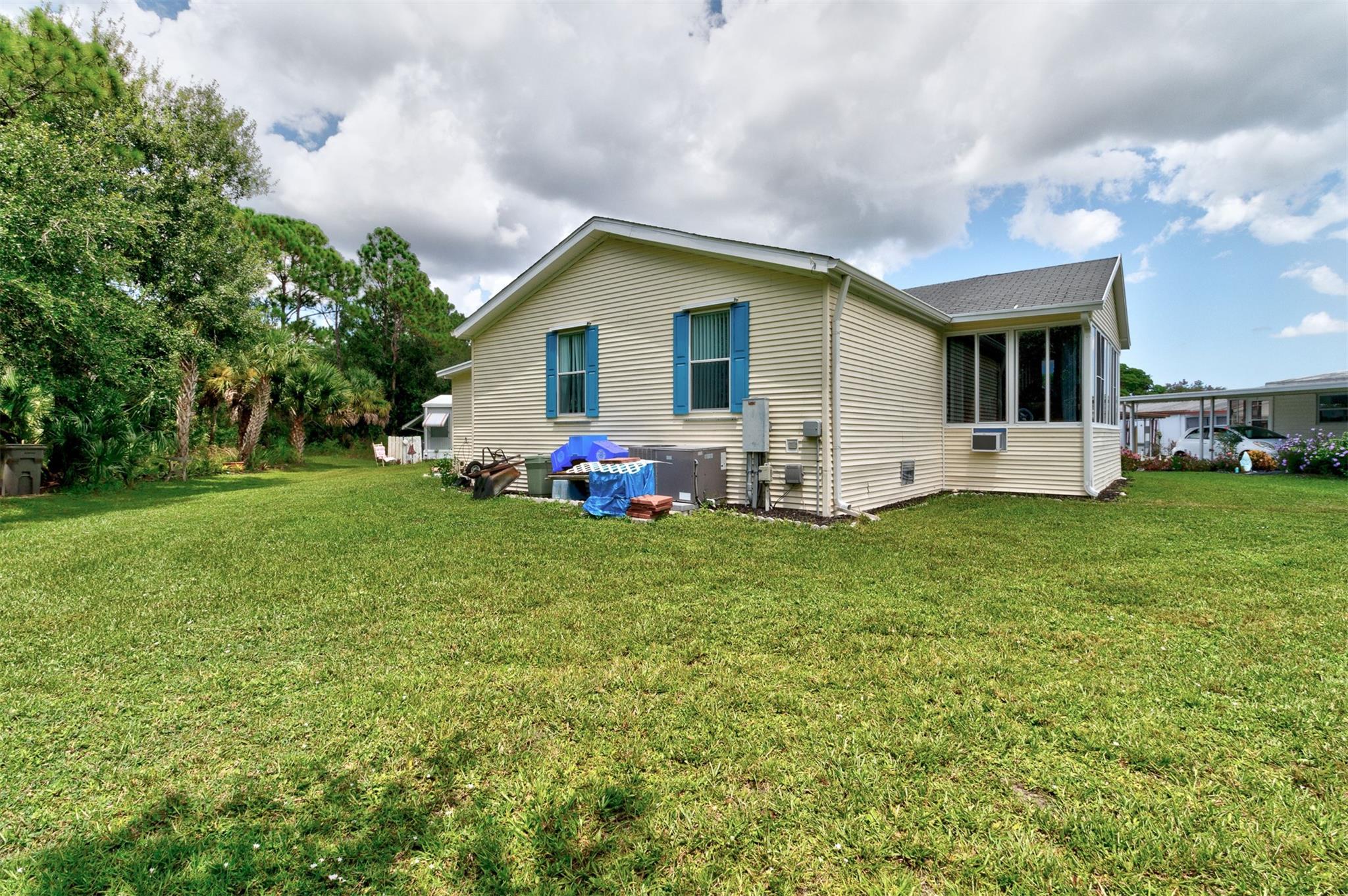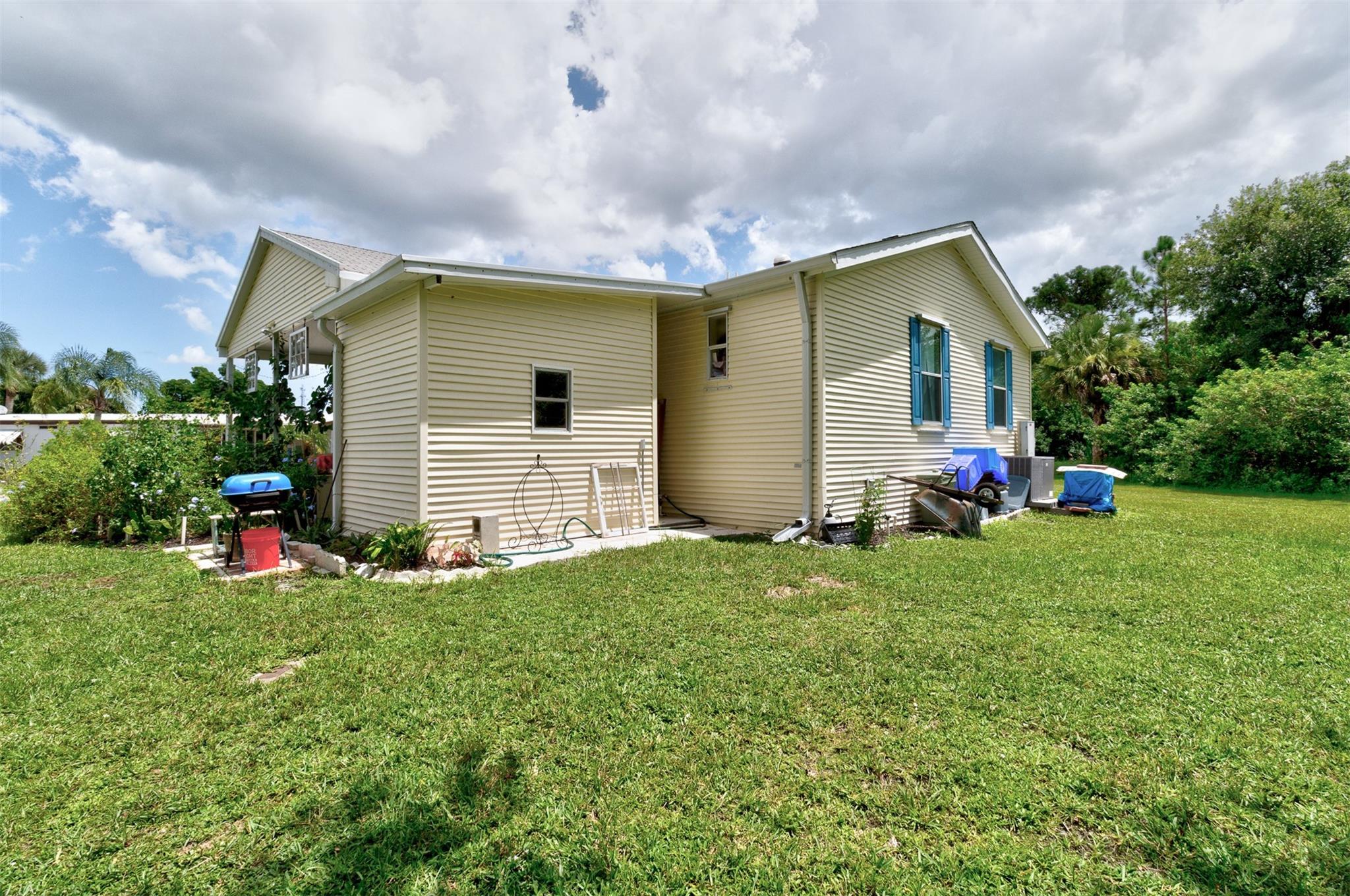 Adorable Artists Home on a double corner lot (only one lot rent) with wooded back yard. New Floors, New sink. AC& hotwater are 2016. Whole house Fully wired to a 9000 watt new generator. A Gardener's dream. this 2/2 will make you want to move in. Shingled roof. 10x 8 shed with electricity. Wide drive holds 3 cars...Heritage Plantation has a clubhouse, tennis and pool and much more Pet FRiendly. Convenient to I 95 and the Indian River Mall area with restaurants and shopping. Artists will love this house.