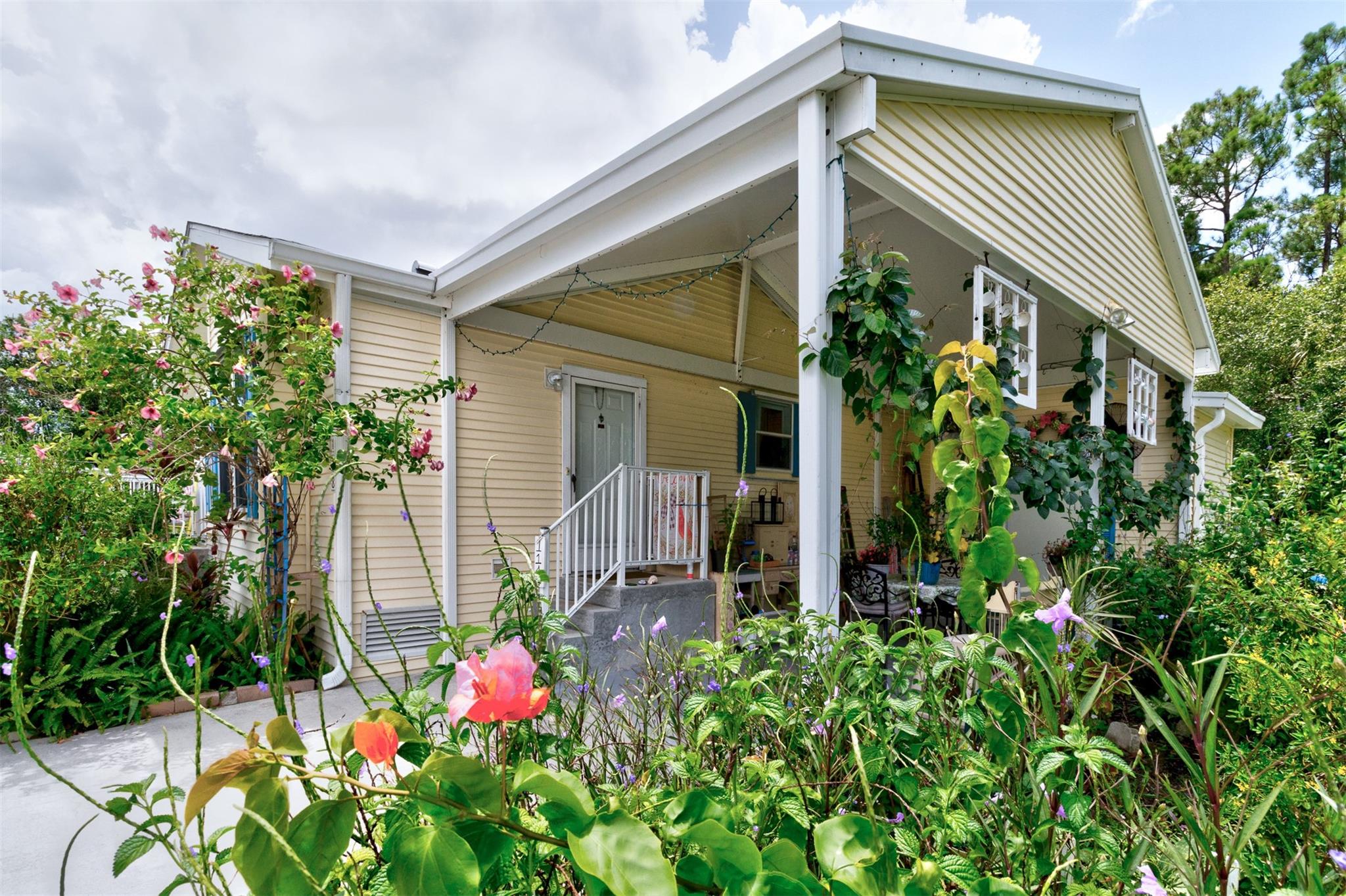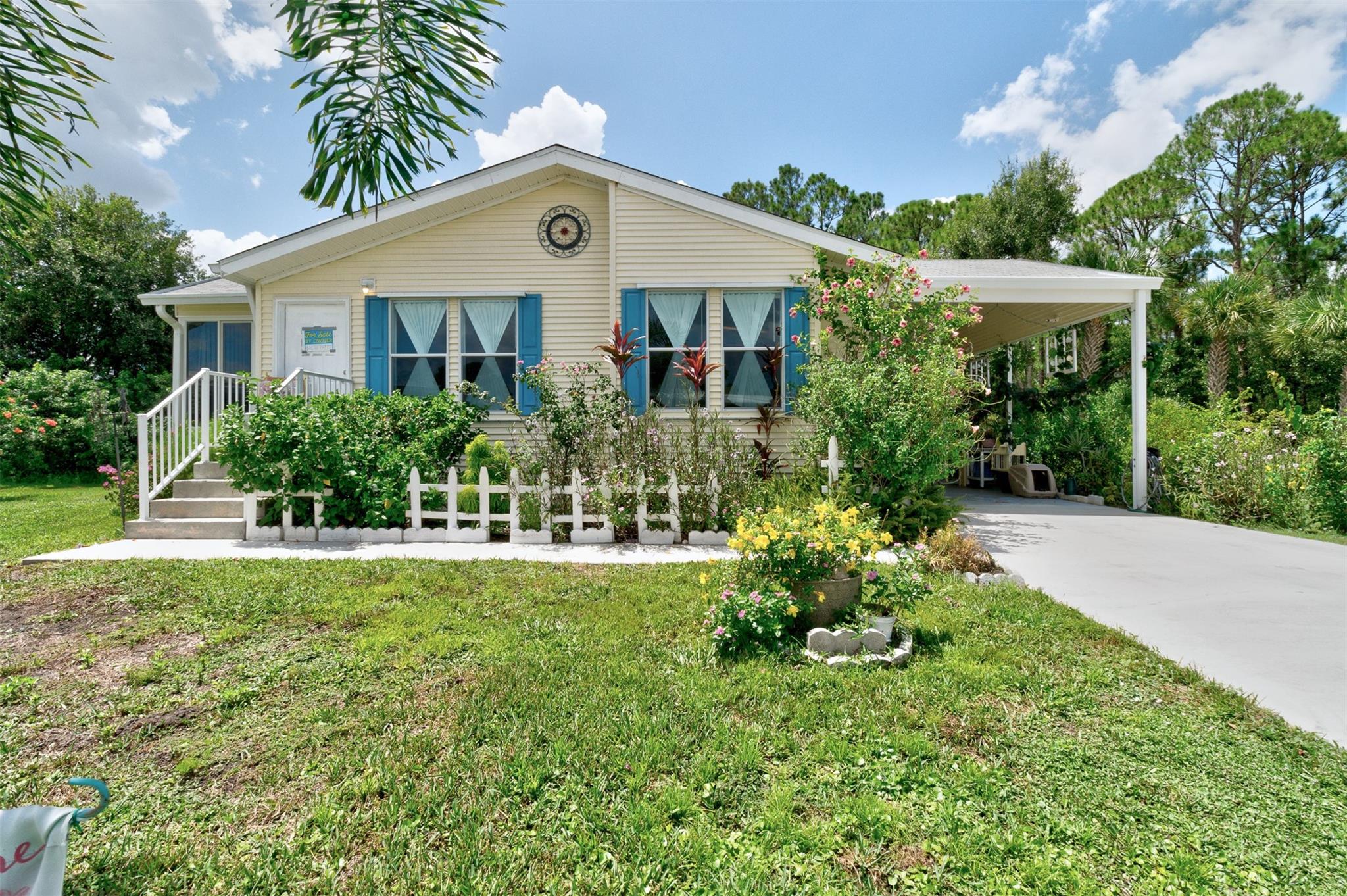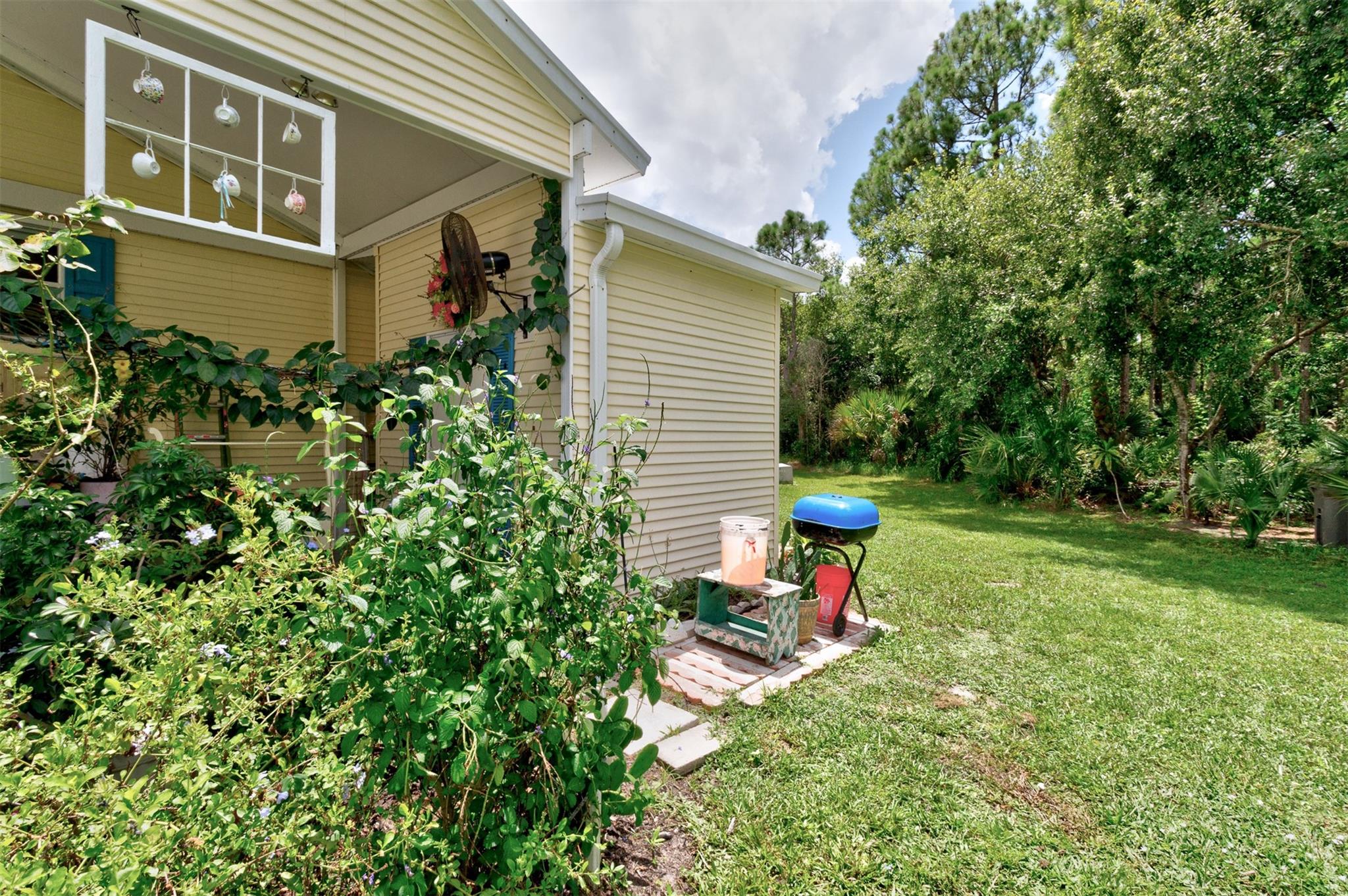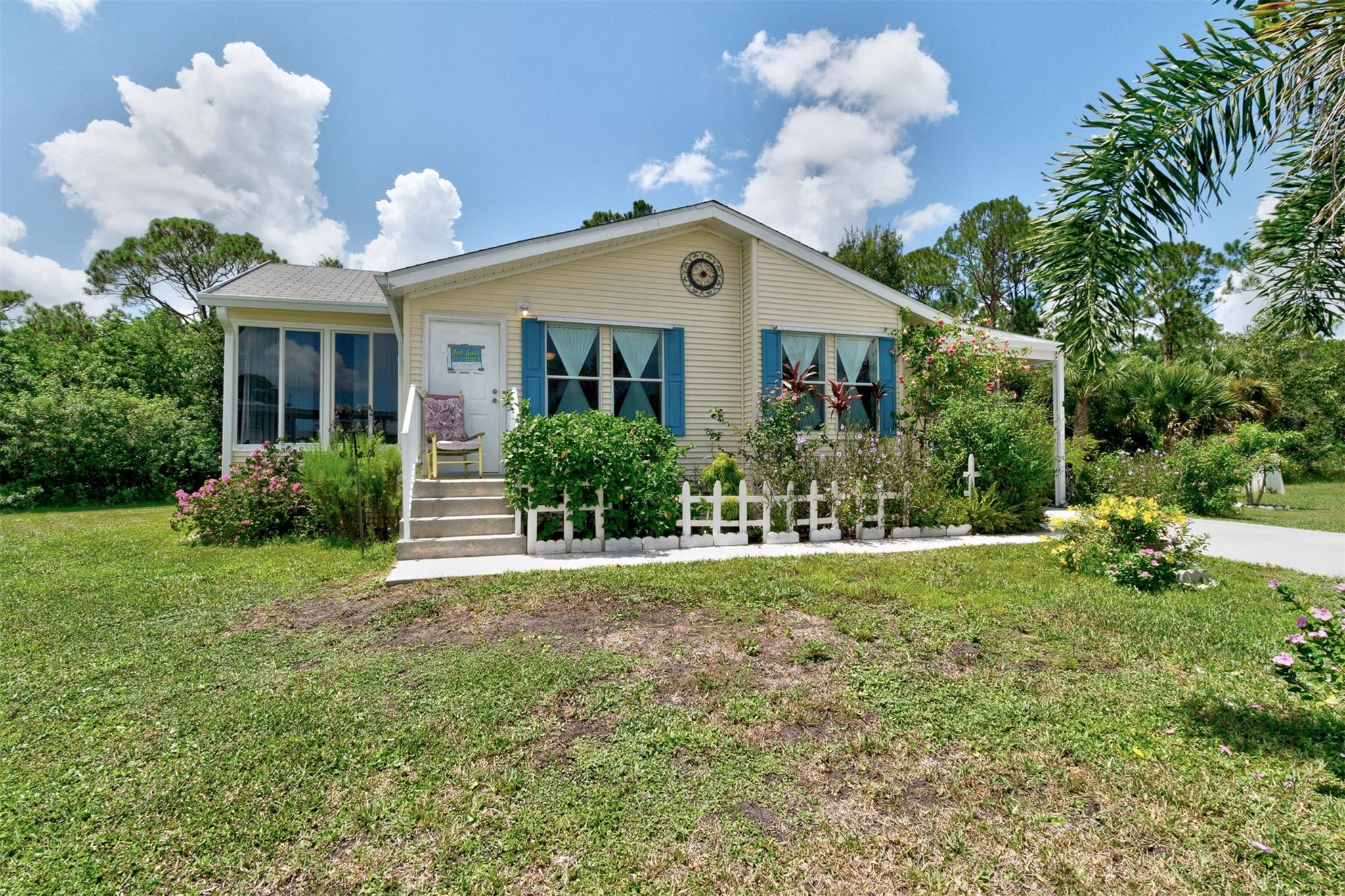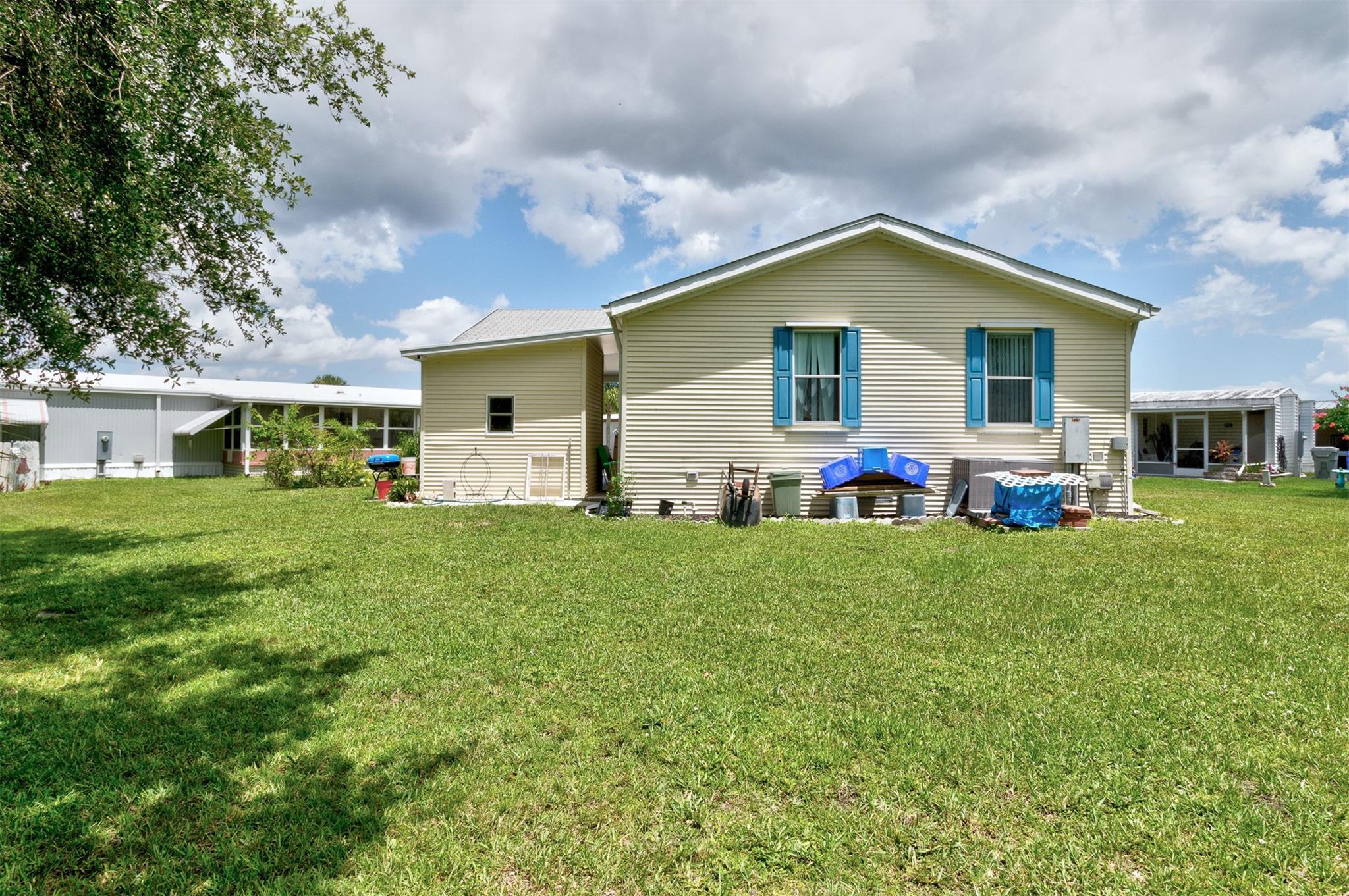 Adorable Artists Home on a double corner lot (only one lot rent) with wooded back yard. New Floors, New sink. AC& hotwater are 2016. Whole house Fully wired to a 9000 watt new generator. A Gardener's dream. this 2/2 will make you want to move in. Shingled roof. 10x 8 shed with electricity. Wide drive holds 3 cars...Heritage Plantation has a clubhouse, tennis and pool and much more Pet FRiendly. Convenient to I 95 and the Indian River Mall area with restaurants and shopping. Artists will love this house.