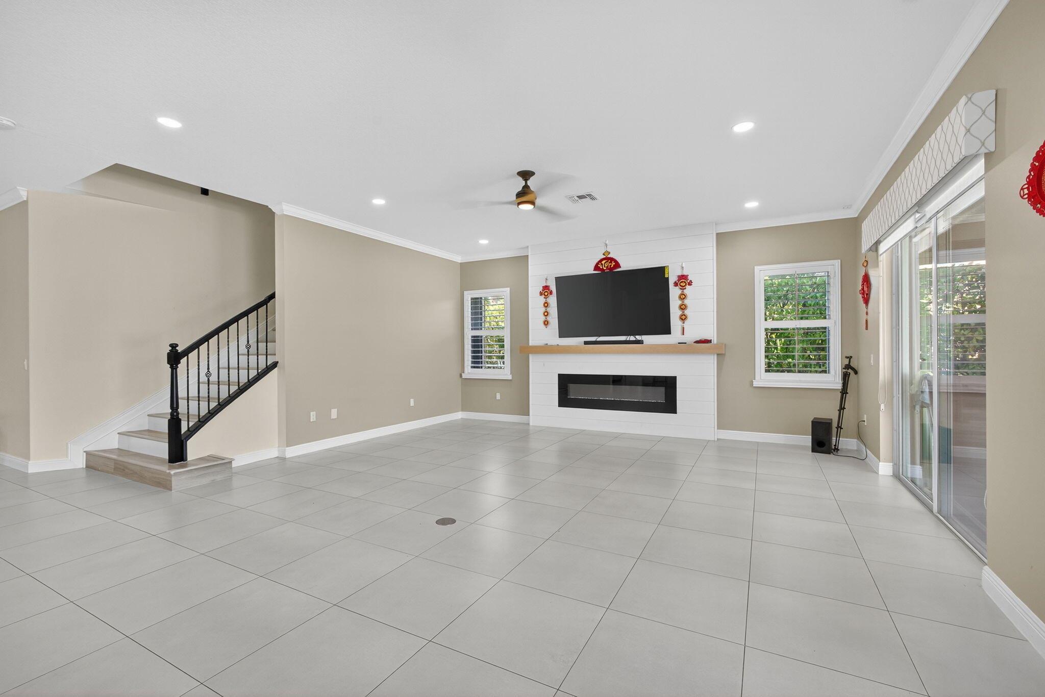 Stunning and spacious 5-bedroom, 5.5-bath estate pool home with bonus room & office and 2-car garage, located on a premium 0.28-acre lakefront lot in the highly sought-after resort community of Olympia. Step inside to a beautifully renovated interior where soaring ceilings, sunlit spaces, and custom details create a warm yet refined ambiance. The gourmet chef's kitchen boasts dual islands, custom cabinetry, double ovens, a built-in pantry, and top-of-the-line appliances. The outdoor living space is a true sanctuary. Overlooking serene lake views, the expansive loggia is complete with a summer kitchen and fireplace, setting the stage for effortless indoor-outdoor living. The heated saltwater pool with sun shelf and infinity-edge spa offers a resort-style escape in your own backyard.