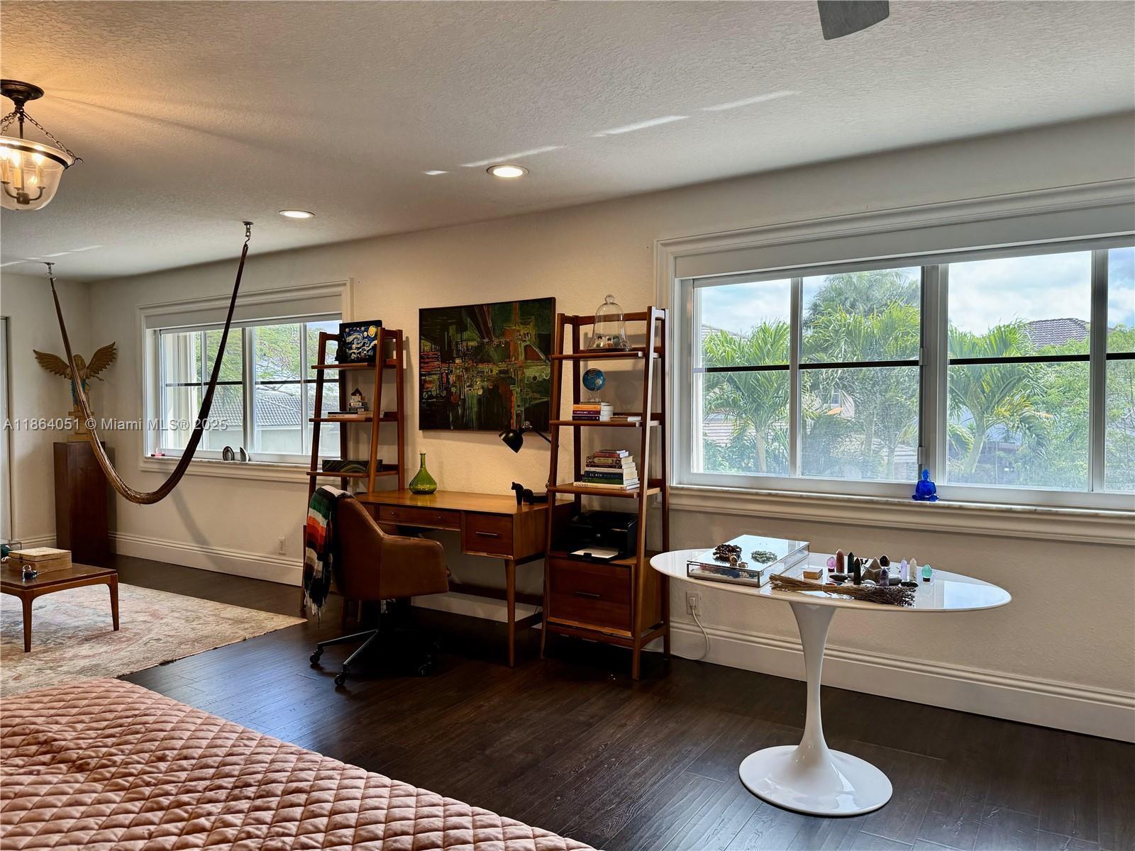 Stunning, Renovated 6-Bed/4-Bath Home with Designer Finishes! This elegant residence showcases rich dark wood engineered flooring throughout and custom trim work on all windows and doors. Enter into a dramatic double-height living room, flowing into a formal dining area perfect for entertaining. The expansive kitchen is a chef’s dream, seamlessly connected to a spacious TV room and second formal dining space. Step outside to a backyard oasis featuring a beautifully extended covered sitting area — ideal for outdoor gatherings. Upstairs, you’ll find four generously sized bedrooms plus a luxurious oversized primary suite with abundant closet space and a dedicated storage room. Additional highlights include brand-new A/C units, premium updates throughout.