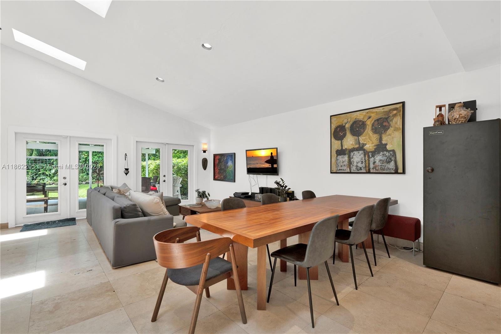 Discover this classic Coconut Grove residence, situated in the sought-after Southern Grove neighborhood. Featuring soaring 14-foot vaulted ceilings, abundant natural light from 5 new skylights, and an updated custom open kitchen this home blends timeless charm with modern comfort. Main residence offers 3 bedrooms and 2.5 bathrooms, highlighted by a stunning primary suite with 14-foot ceilings & a 250 sq. ft. walk-in closet. Separate 1-bedroom, 1-bath cottage is the ideal space for guests, in-laws, or a private office. Enjoy seamless indoor-outdoor living with four sets of impact doors opening to a spacious 650 sq. ft. covered terrace and BBQ area perfect for entertaining family and friends. Additional brand-new A/C & updated roof (2021/2022).