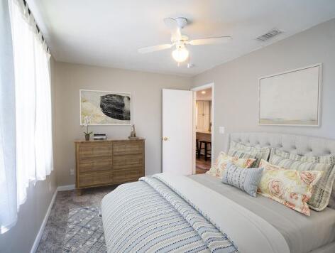 This 4 bed/2bath home offers 1840 sq ft of updated living space, w/ 1,000 sq ft added in 90s. Major systems in great shape w/ 2022 Roof & 2020 AC & Handler, lowering long-term costs. Walk in to the vaulted ceilings, enhancing the open layout, & see freshly painted interiors, new carpet & trim along w/ a fully renovated guest bathroom. Kitchen features upgraded appliances while the new luxury vinyl plank flooring is sleek & durable. Fully fenced backyard, w/ a mango & banana tree & two storage sheds, is perfect for entertaining/relaxing. Located less than a mile from public boat ramp, home is ideal for boating/fishing. Walk to the nearby Town Center, restaurants, shops, outdoor concert venue & more! Highly rated schools are minutes away, adding long-term value. Don't miss this opportunity!