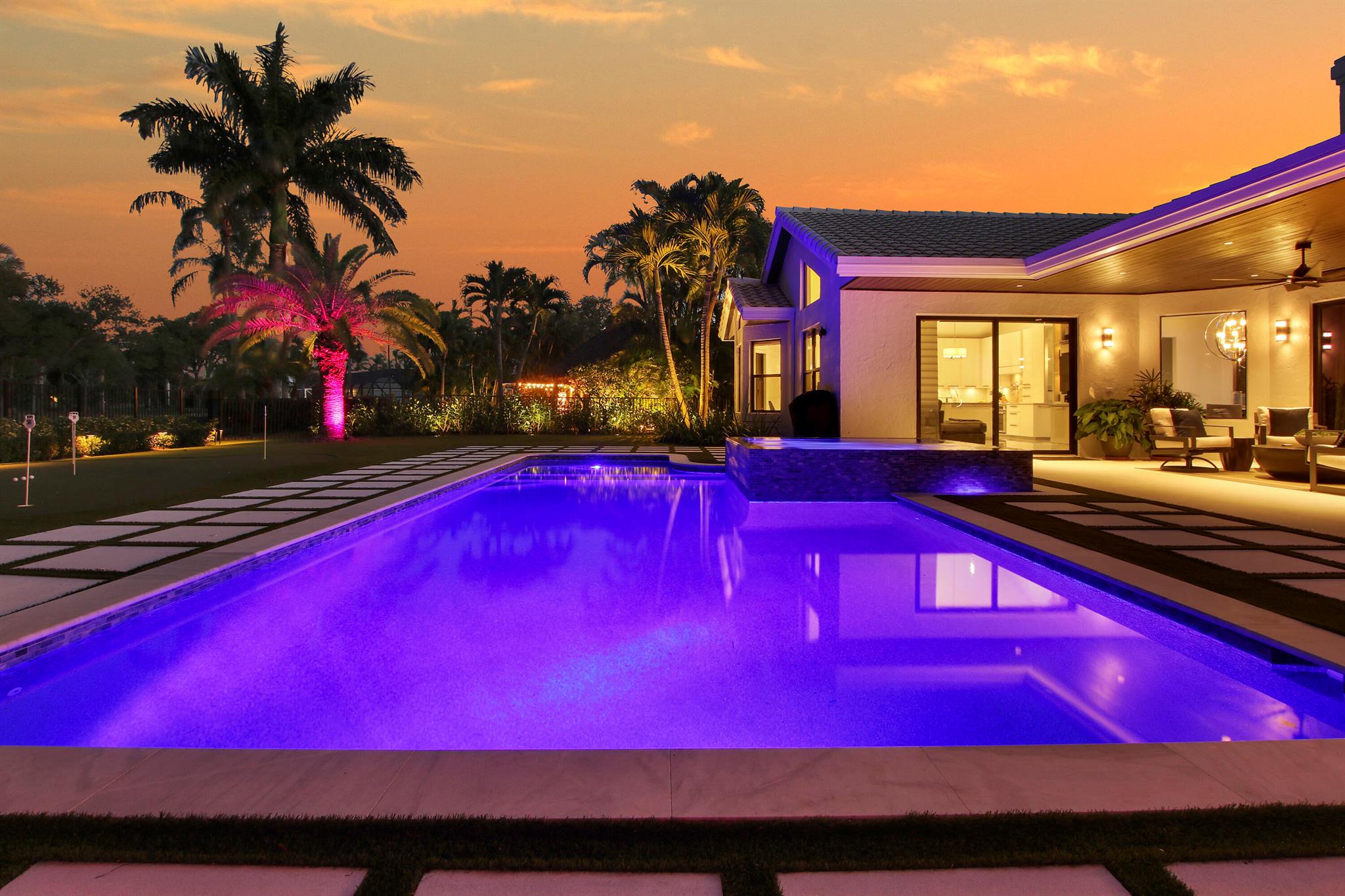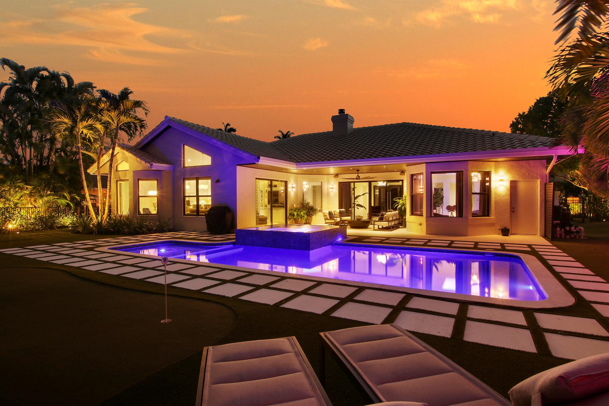 Prepare to be impressed! No expense was spared to create a lavishly remodeled resort style property! New pool and spa with remote control app and salt water system 2021. New landscaping pavers, golf course grass and architectural landscape lighting with app to control. New aluminum fencing. Impact rated windows and doors. Private backyard and views of the BallenIsles 18th hole of the East course. Professionally designed and decorated. Ring camera system. Thermador stove and cooktop. GE Monogram refrigerator matches the cabinets. Wine wall in the dining room. Lighted, coffered ceilings in the master bedroom and dining room. Putting green in the backyard. Enjoy the amazing sunrises and Eastern breezes. Sonos. Fully furnished negotiable. Available for rent $10,000/month annual furnished.