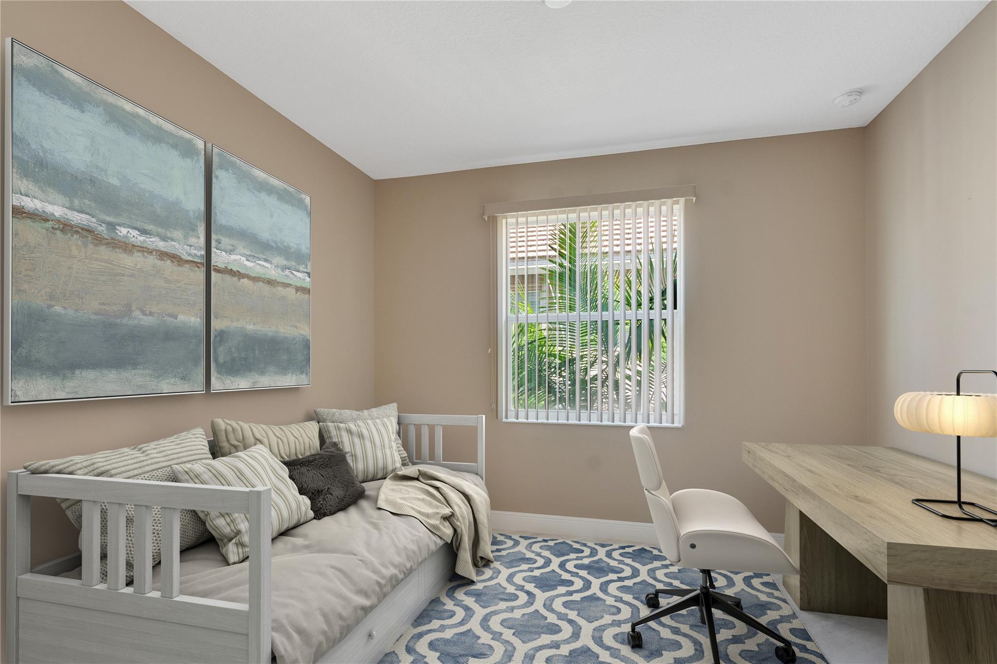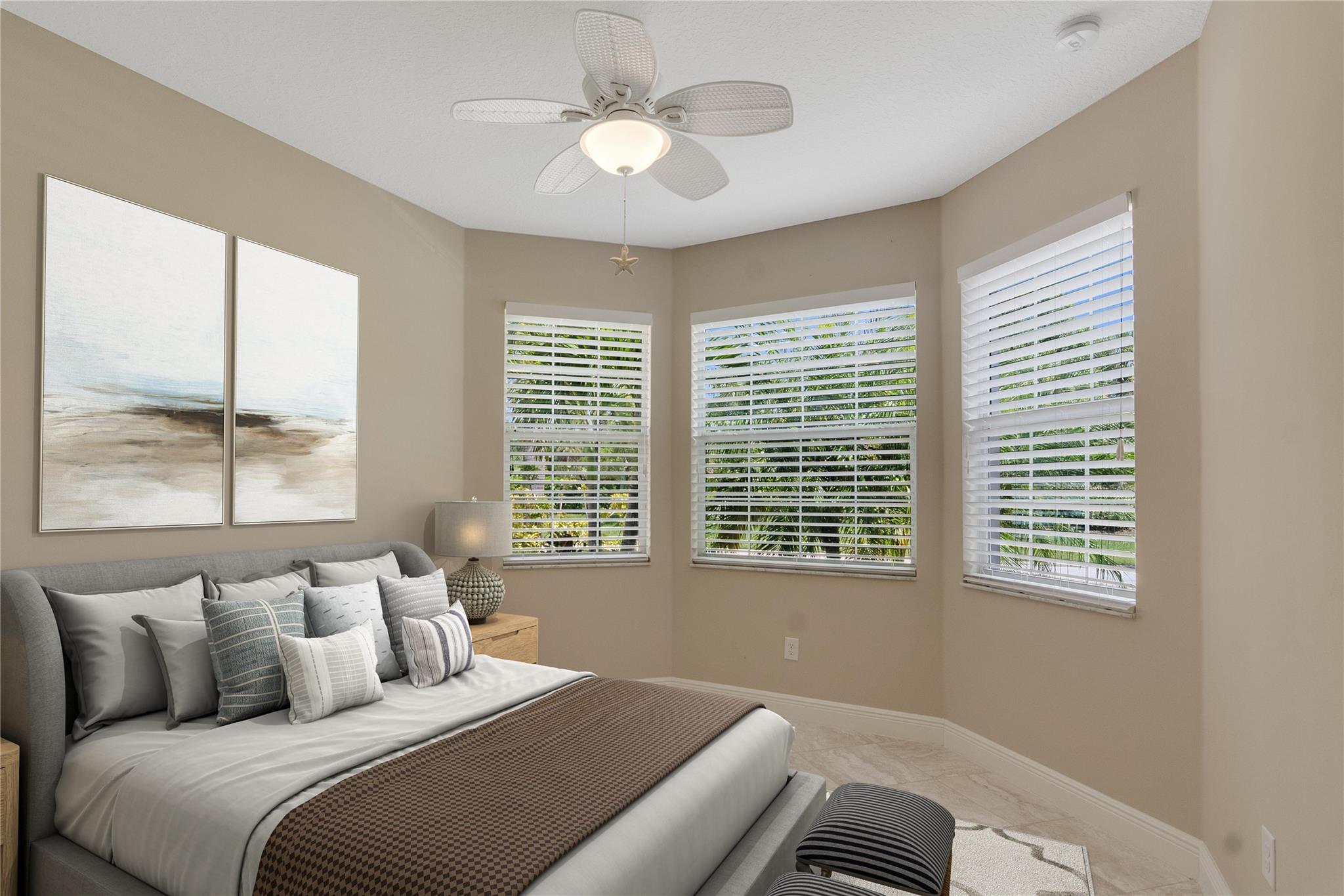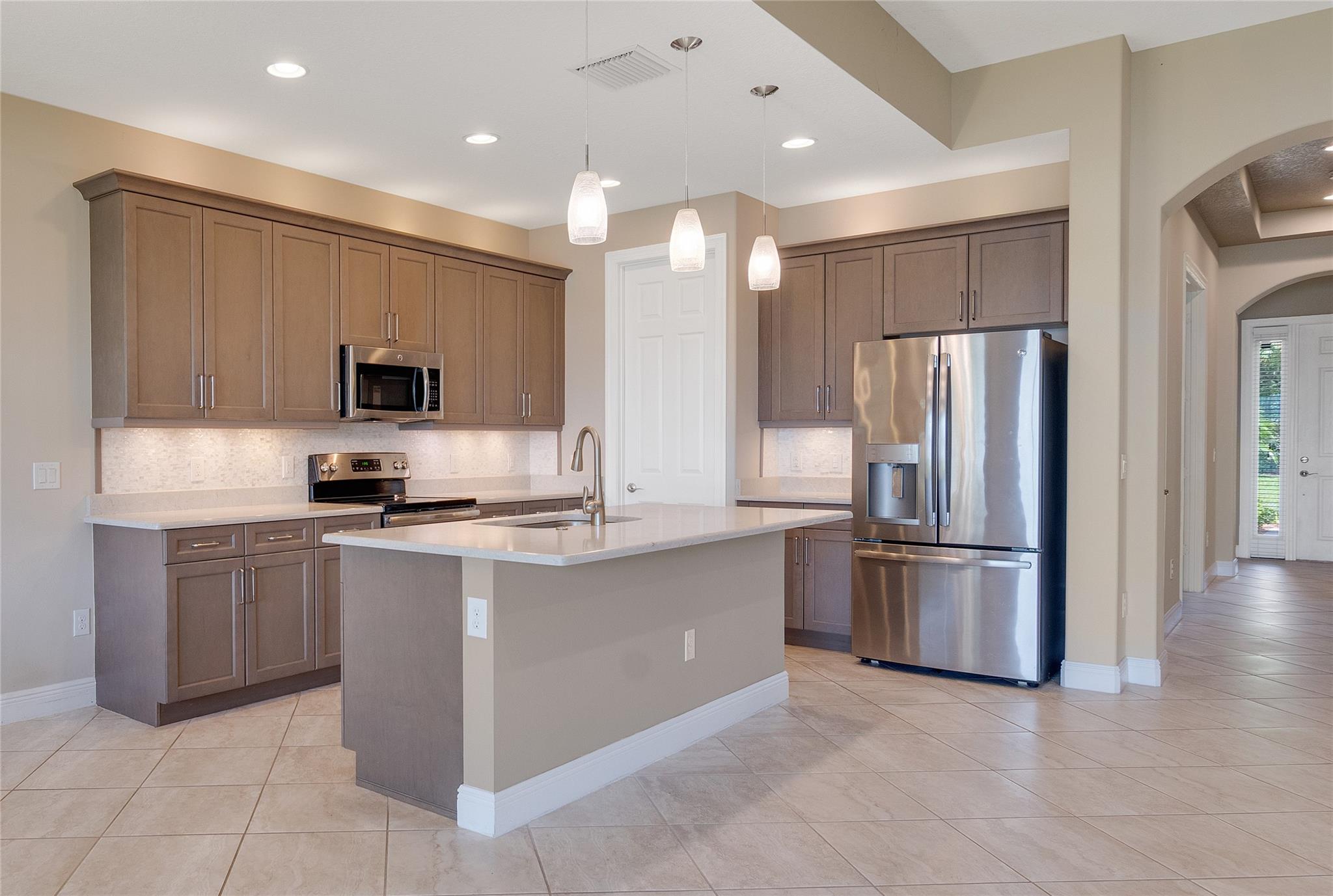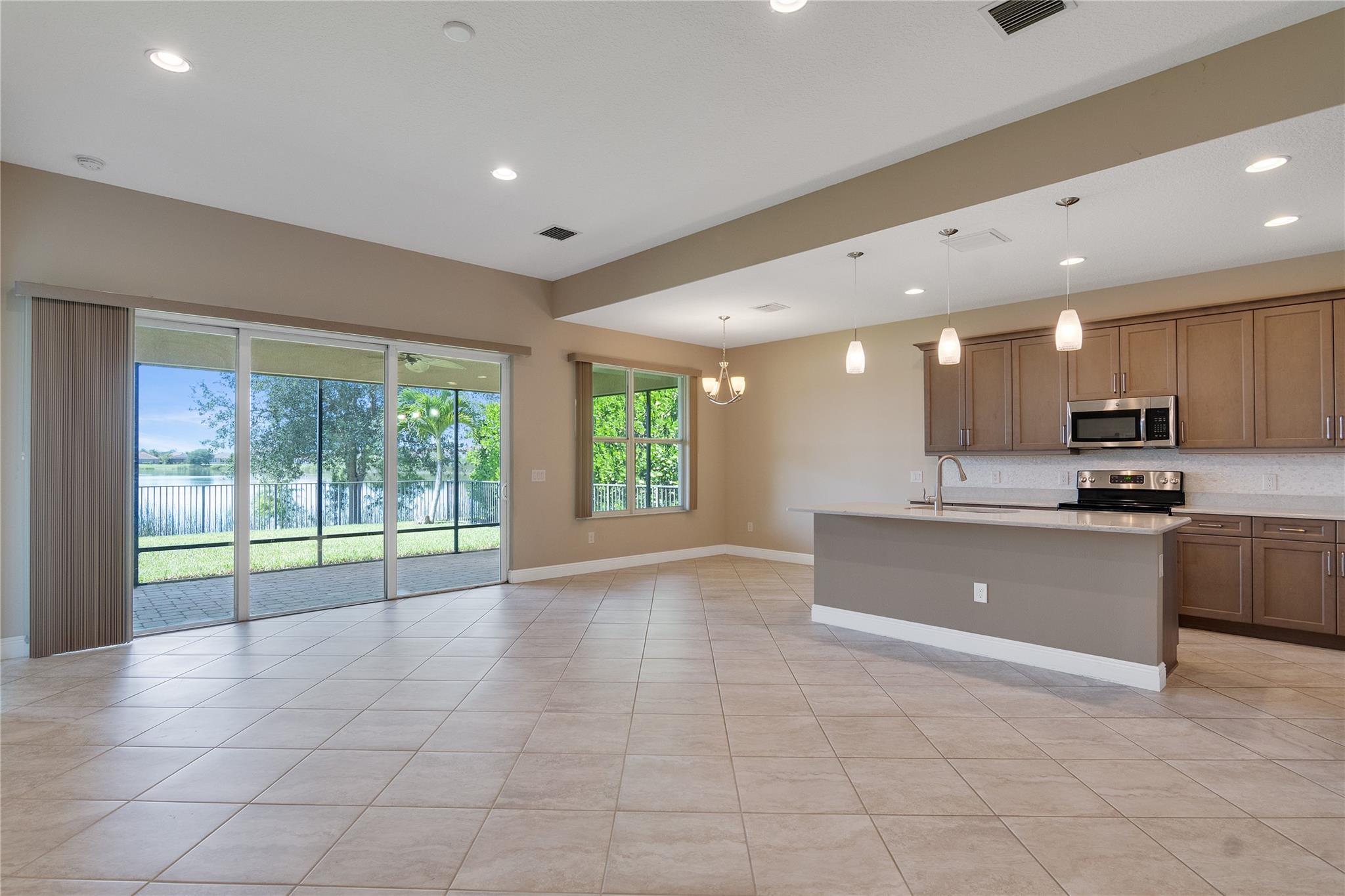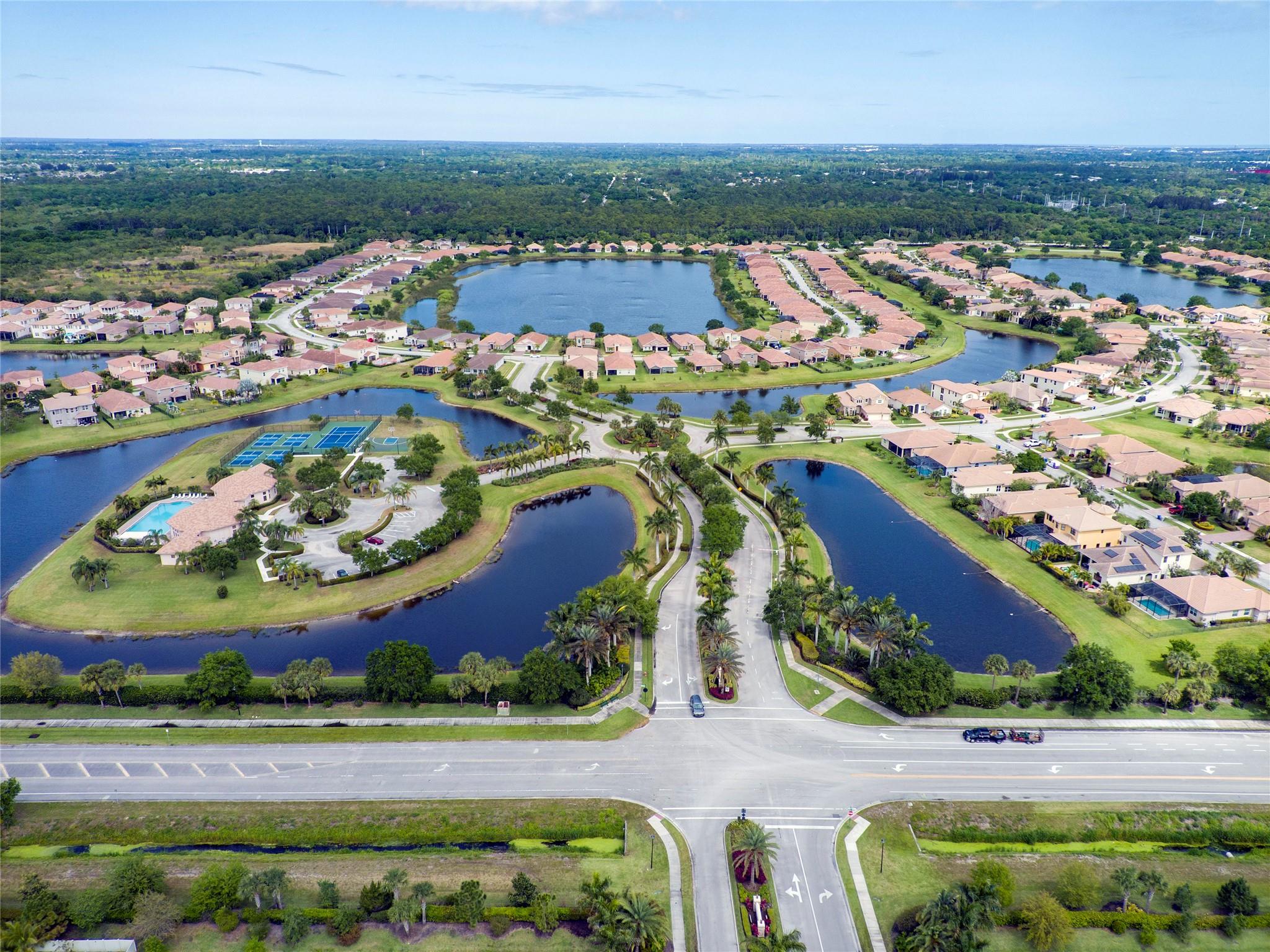 Open-concept, split floorplan with lakefront views. IMPACT WINDOWS, SLIDERS AND GARAGE DOOR. A screened lanai and fenced yard create the perfect setting to savor Florida’s outdoor lifestyle. 3 bedrooms PLUS a den (coud use as a 4th bedroom) all adjacent to its own bathroom, as if each area were its own wing. The kitchen features 42" cabinets with slow close doors and drawers, gorgeous quartz countertops, a timeless mother of pearl backsplash, stainless steel appliances, and island/breakfast bar. Tall ceilings throughout with an additional foot in dining and primary bedroom. Ceramic tile throughout. Community amenities include tennis, pickleball, pool, library, and clubhouse. Built by GHO Homes with premium construction features. Sidewalks line the neighborhood of this gated community.