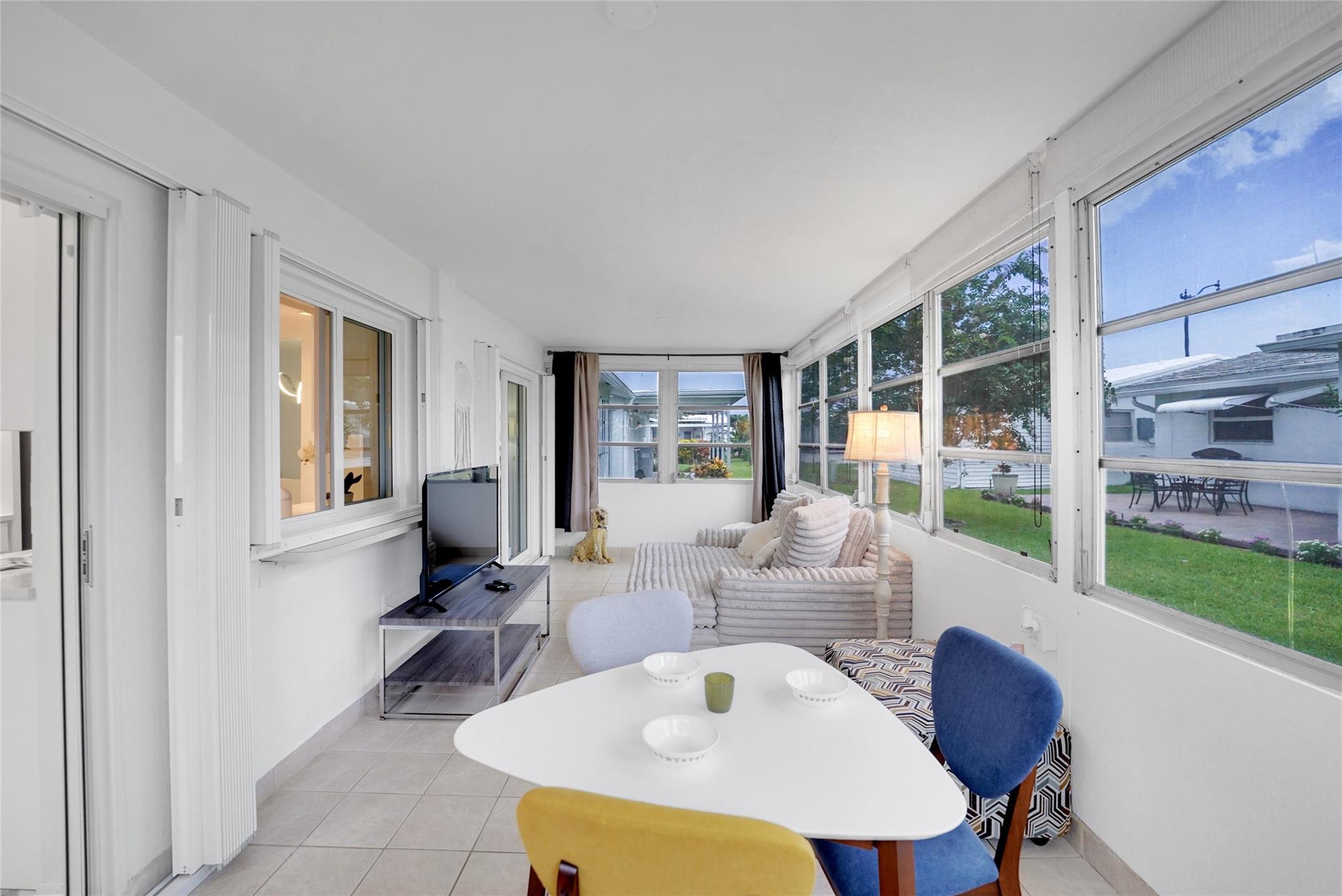 This updated Leisureville home is ready for you to enjoy the south Florida lifestyle. Everything has been updated within the past few years. Main roof 2015, flat roof 2024, new stamped concrete driveway 2024, new kitchen, appliances & under sink water filter 2024, Impact windows 2020 + locking accordian shutters, bathrooms updated 2021, new AC & duct cleaning 2024, tankless water heater 2025, updated landscaping / rocks 2024. 2 Community pools, par 3 golf course, shuffleboard, 2 clubhouses, exercise room, management on site. Low HOA $298 mo includes lawn care, sprinklers, outisde painting. Leisureville requires 700+ credit score, one person on the deed 55+, $350 application fee, $500 capital contribution & $150 record transfer fee at closing.