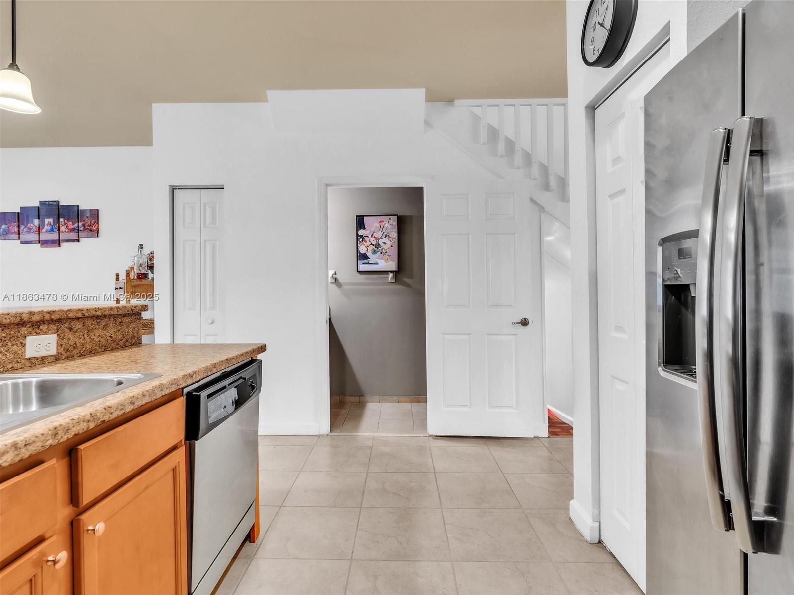 This spacious 2-story villa features 3 bedrooms and 2.5 bathrooms with a modern open layout. Tile flooring on the first floor and laminate wood upstairs add a stylish touch throughout. The open kitchen with stainless steel appliances flows seamlessly to a private paved, fenced patio—perfect for family gatherings. Located in the gated community of Aragon, residents enjoy resort-style amenities including a clubhouse, pool, fitness center, playground, 24-hour security, and more. The property offers two assigned parking spaces in front, plus ample guest parking. Conveniently situated near major highways, supermarkets, schools, and restaurants.