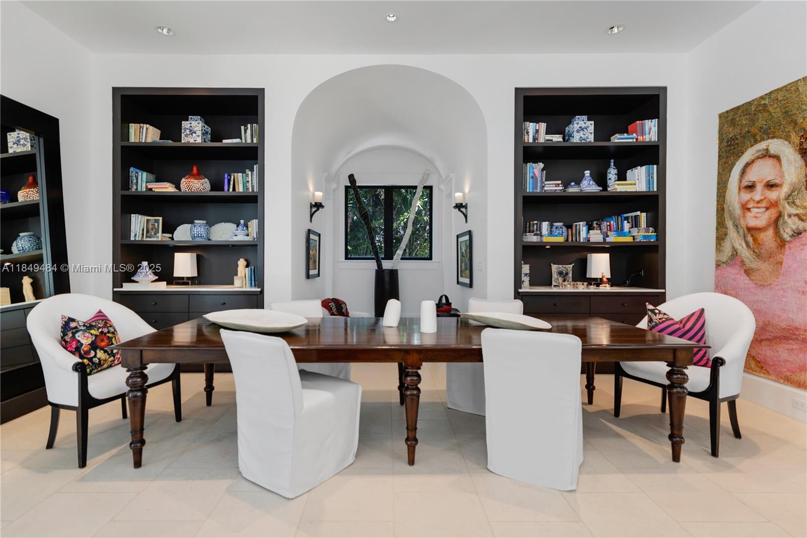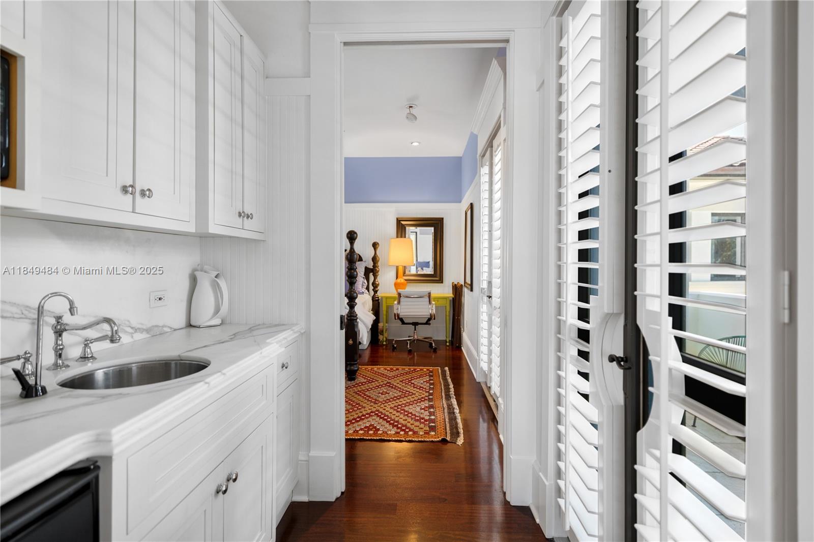 Located on prestigious Sunset Island III, this exquisite 6-bed, 5.5-bath Spanish-style home blends timeless elegance with modern comfort. Soaring 12' ceilings, French limestone floors, and a coral stone courtyard set the tone for refined indoor-outdoor living. The chef’s kitchen boasts a Calacatta marble island, Wolf appliances, gas stove, and dining area flowing into a family room with sweeping Biscayne Bay and Miami skyline views. Upstairs features 10' ceilings, Brazilian cherry floors, and a primary suite with dual walk-ins and a private bayfront terrace. A detached guest house offers privacy and flexibility. Your backyard escape awaits with a heated saltwater pool, outdoor shower, and private dock 13,125 SF lot with direct bay access.