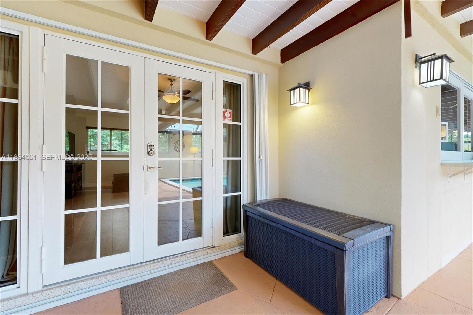 No HOA & Low Taxes!! Not Flood Zone (Elevation 13 Ft.) Tropical Paradise over 1/2 acre lot (25,200 sqft). Beautiful 1-story house, 3 bedr., 2 bath, plus independent & spacious 1 Bedr./1 Bath Guest House/In-Law Quarters or use as a Rental Income. The 3rd bedr. is currently used as open office layout but easy to convert back before closing. 2019: Changed to PVC Pipes, Main House Metal Roof w/Solar Panels (owned/not leased 2025 Bill Ranges $46-$123), Flat Roof Guest House. Gorgeous kitchen w/cathedral ceiling, quartz counter tops, SS appliances. Built around 6' screened Saltwater & Heated Pool w/outdoor sitting & quartz counter from kitchen to pool. 2 garage, auto sprinkler, well irrigation, impact windows & accordion main house, accordions in guest house/garage/laundry, wood carved front door, 2022 A/C, space for boats & RVs. Mango, Avocado, Lychee, Longan trees. Great Schools, Near Palmetto Golf Course & Bay Park.