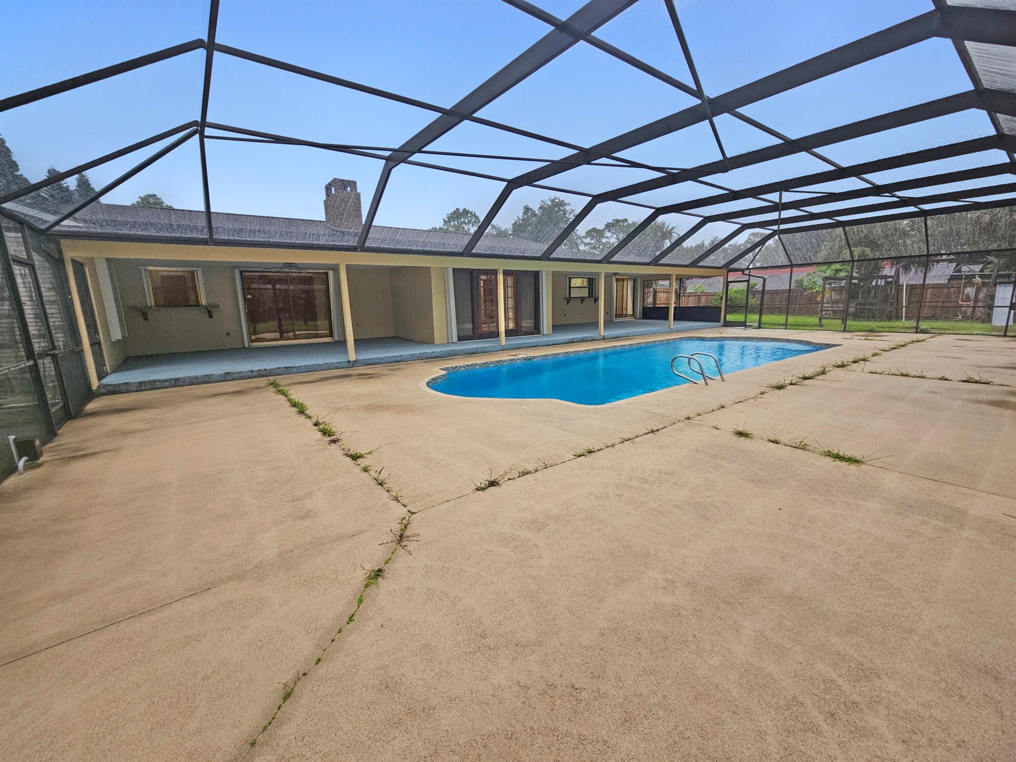Your Private Paradise Awaits in Titusville! 1+ Acre HUGE Pool City Water!Some photos VIRTUALLY STAGED. Well-loved and well-maintained home with accordion hurricane shutters, 2017 roof & A/C. Expansive layout, HUGE pool & pool deck, HUGE raised patio & pass-through bar-an entertainer's dream on 1 acre in Titusville! Fully fenced yard with powered shed & fruit trees. Granite kitchen, oversized office/game room. Close to shopping, dining, medical & Kennedy Space Center. ***Move-in ready*** THIS HOME HAS CITY WATER, A UNIQUE AND VALUABLE FEATURE FOR THIS AREA, and fire hydrants on each side of the property. The rooms in the rear of the home have windows allowing you to know what's happening in the pool area at all times. Note the door closing off the 2 middle bedrooms for privacy!