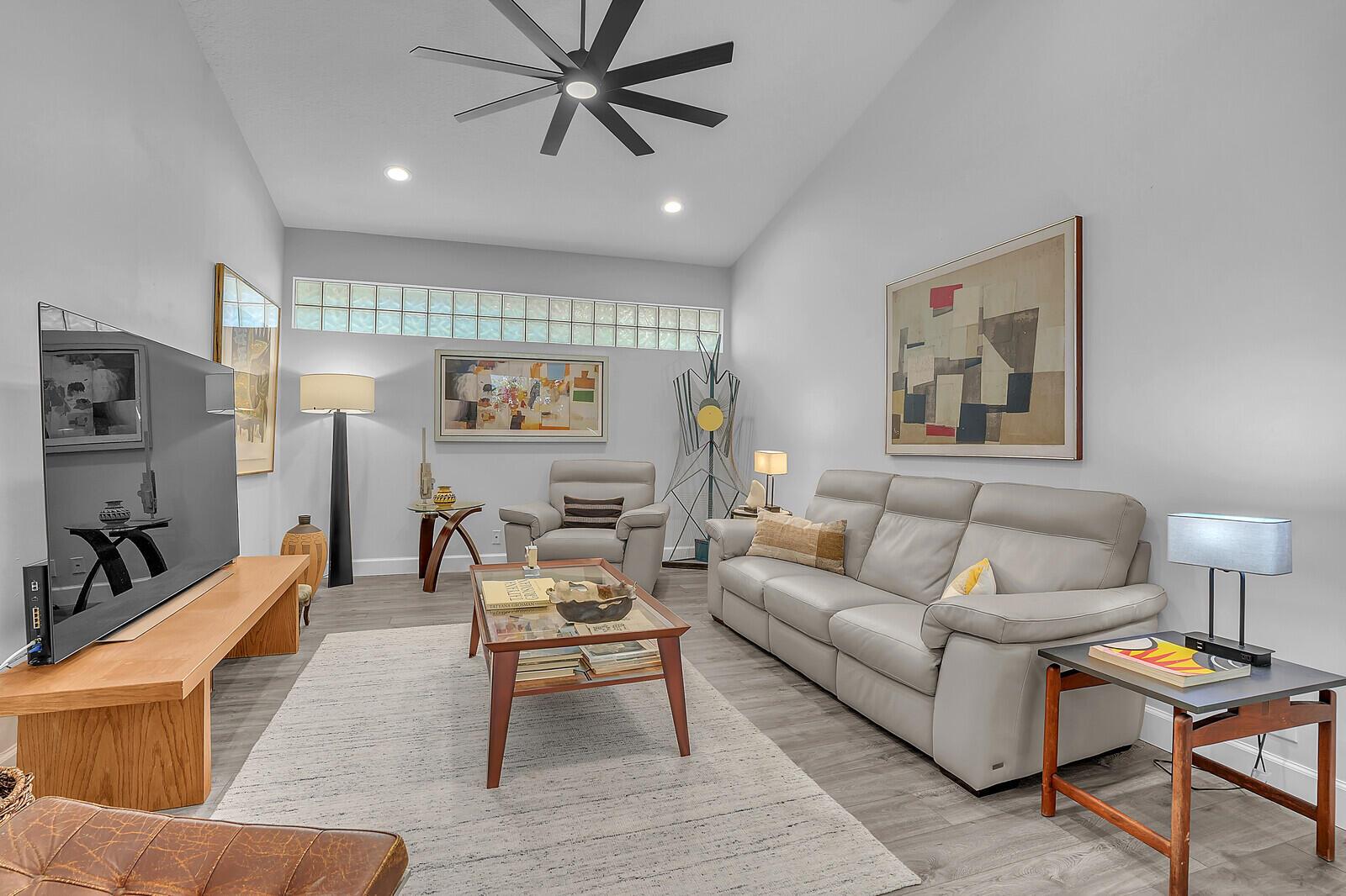 Experience Luxury and South Florida Living at its Finest in this Stunning Three Bedroom + Den, Three and a Half-Bathroom Renovated Home in Manchester Lakes, Wycliffe Golf and Country Club. Offering the Perfect Blend of Luxury, Elegance, and Vibrant Community Life, this Former Builder's Model Home is Ideally Situated Near the End of a Quiet Cul-de-Sac on a Picturesque Street lined with Royal Palms-No Neighbors Across for Added Privacy and Tranquility. *Brand New Roof*Two Brand New AC's*New Flooring Throughout*New Appliances, completed 2021* Step into your Private Tropical Retreat with a Free-Form Heated Pool, Resurfaced 2025, Complete with a Rock Waterfall, Southern Exposure on the Golf Course. SILVER Membership available, not easy to come by, and can Always be Upgraded.
