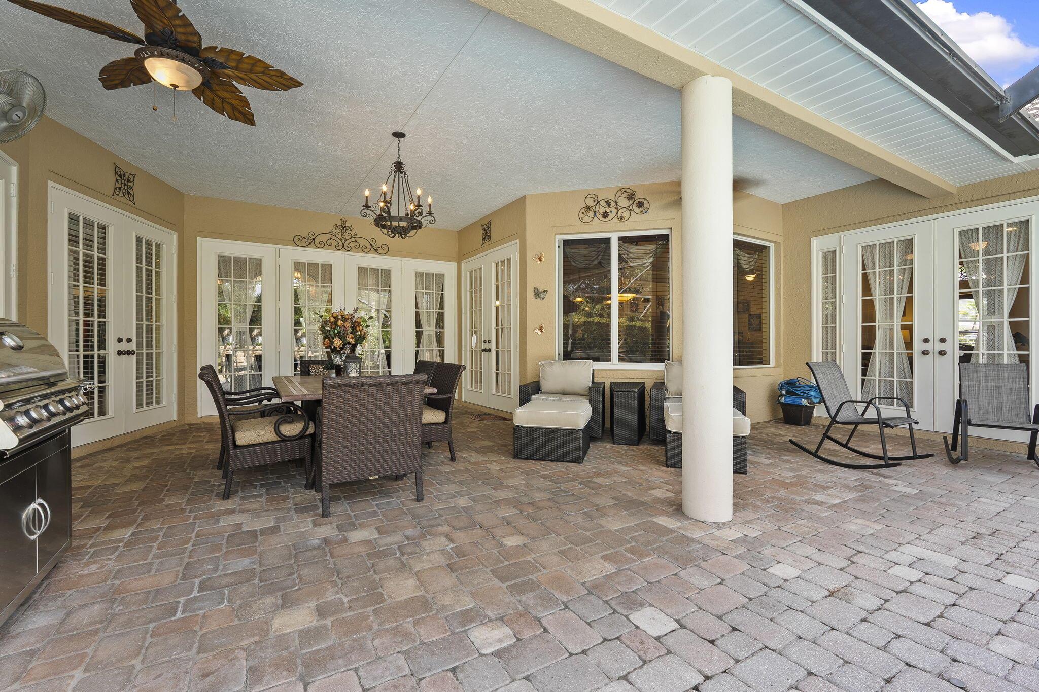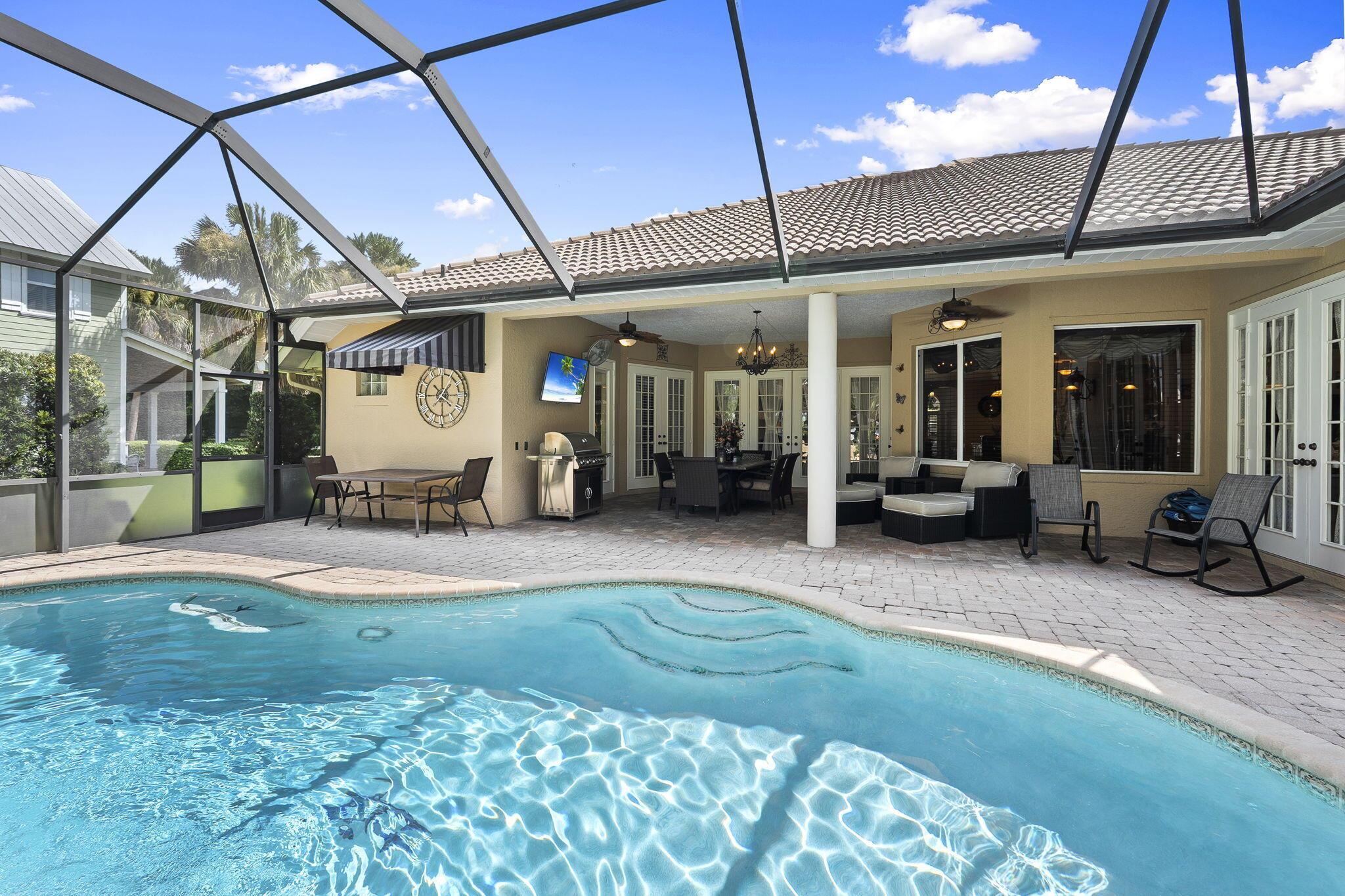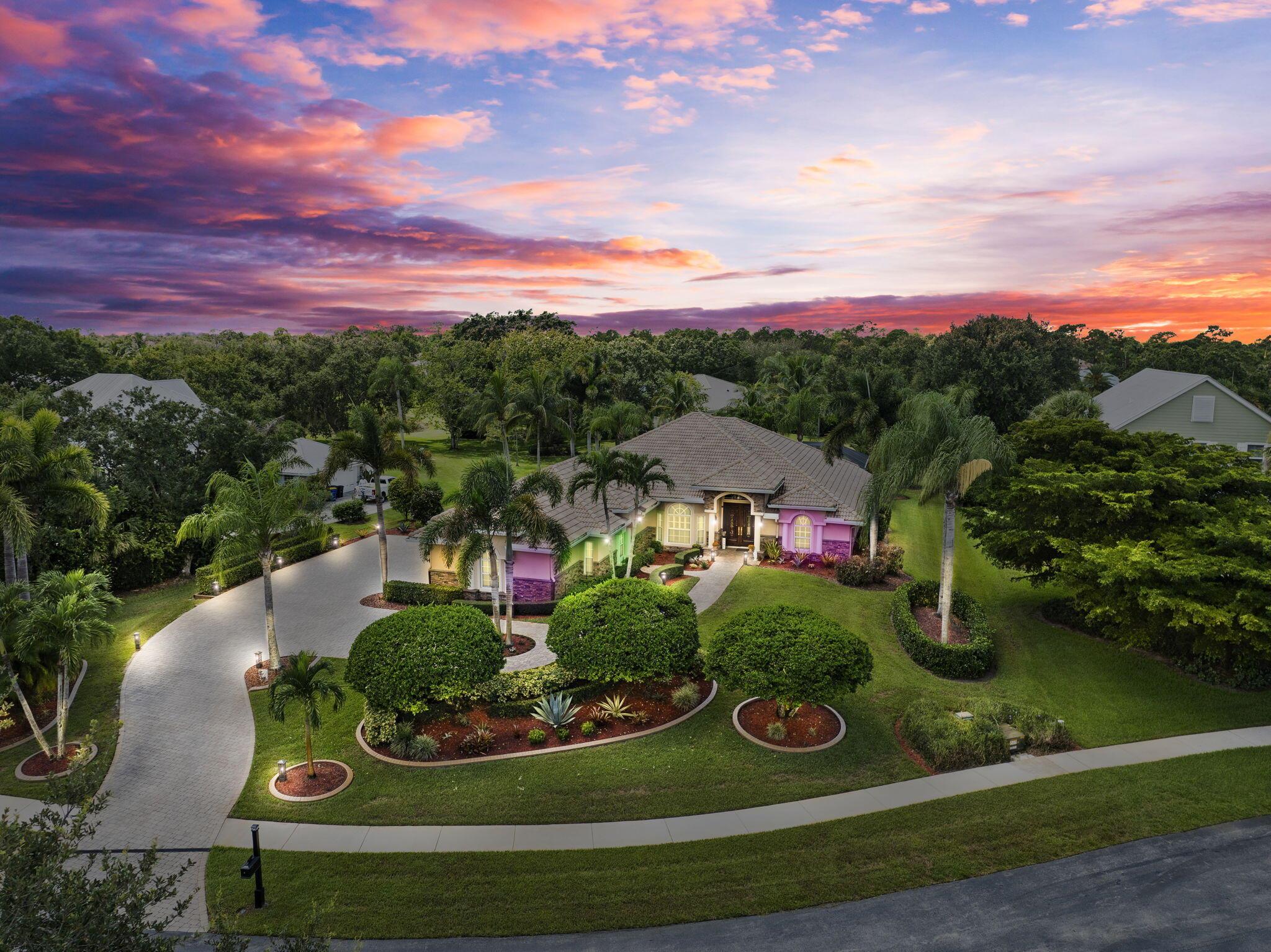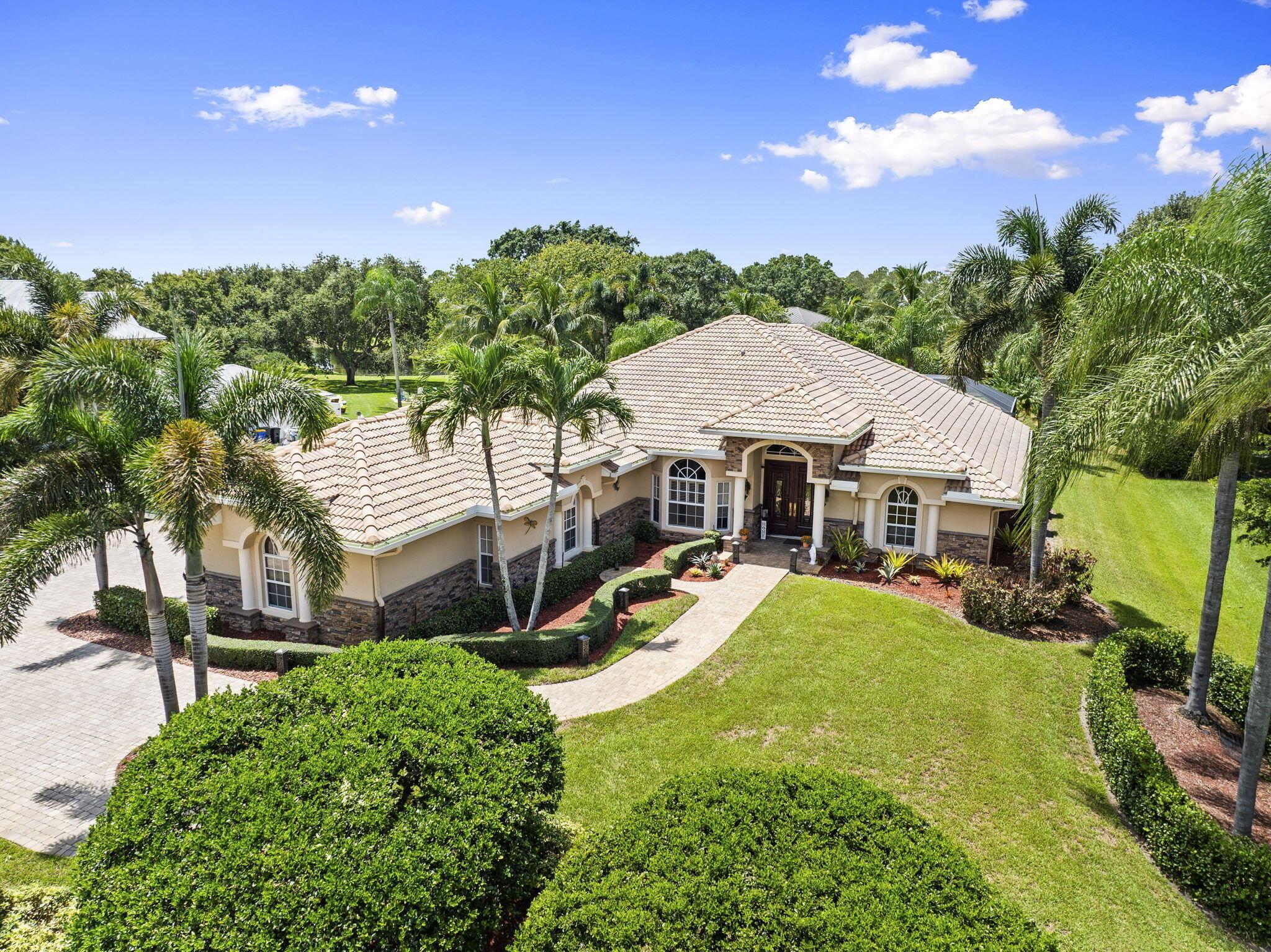 A Tuscan style CBS TURNKEY home featuring 3 beds, 3 bath,+ den, spanning 2639 sqft, complete with a 3 car garage, & situated on .62 acres. The backyard oasis is perfect for entertaining, featuring a stunning saltwater pool, serene waterfall, sundeck, covered patio,& lake views.The chef's kitchen is a dream with 42-inch cabinets, granite countertops, large center island,& new appliances.Upgrades include newer A/C, new HW heater, epoxy garage floors w/ shelving, extended paver driveway/walkway, remote irrigation & landscape lighting. All in the highly desirable Orchid Bay of Palm City. Amenities include tennis, pickleball, basketball, playground, & volleyball court. Close to A+ schools, dining, shopping, beaches, 95/turnpike This home truly combines elegance, functionality, & comfort.