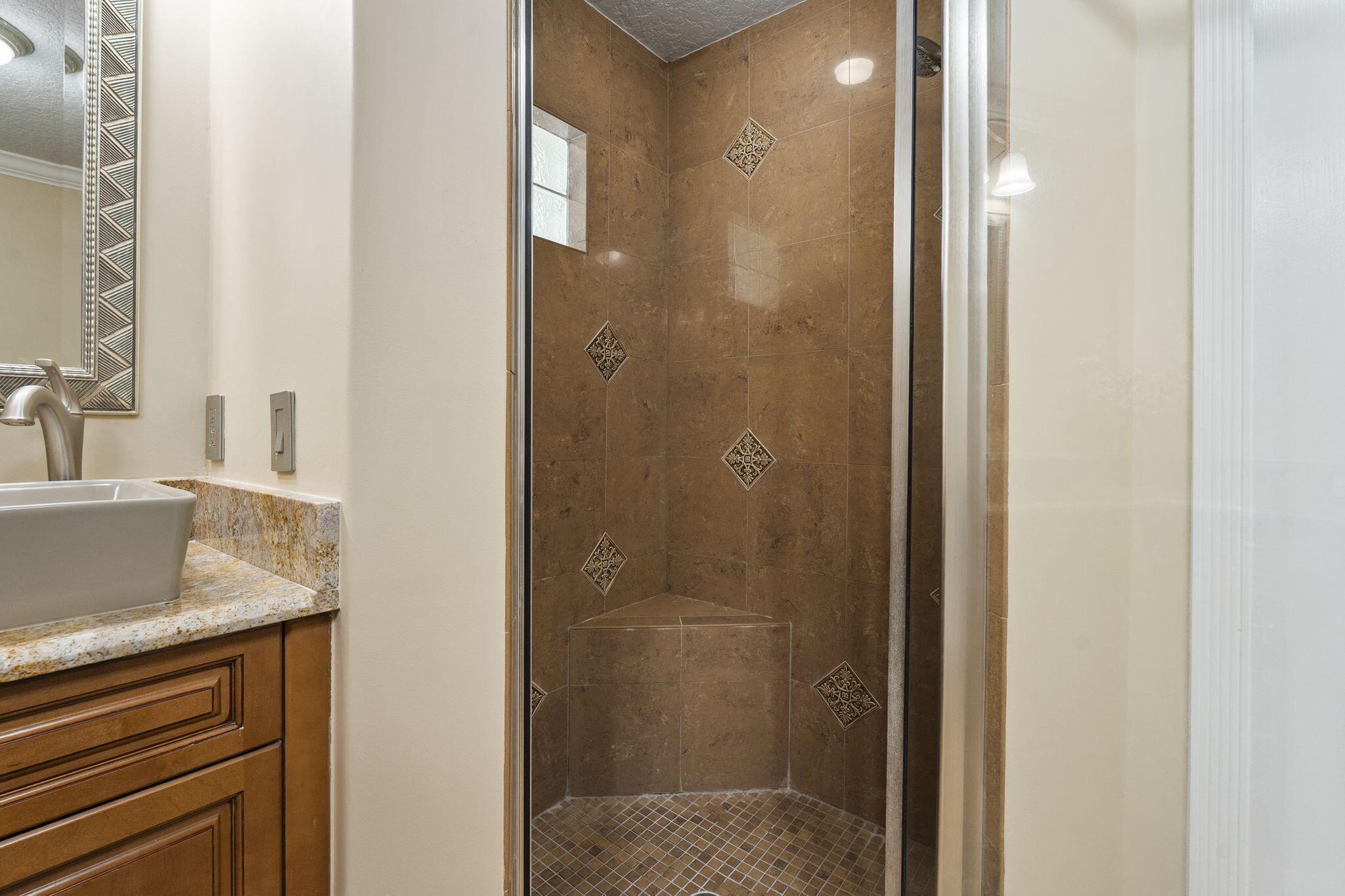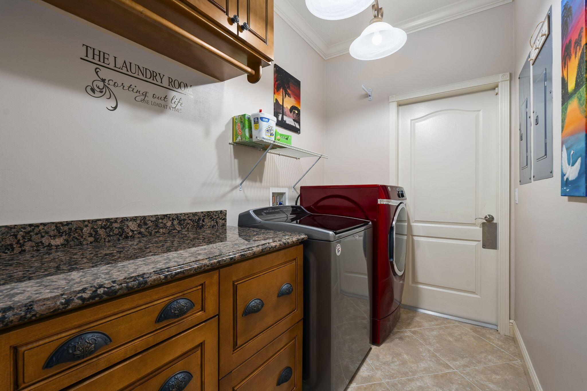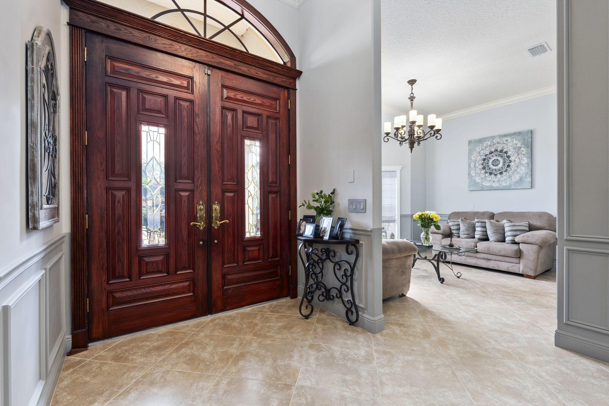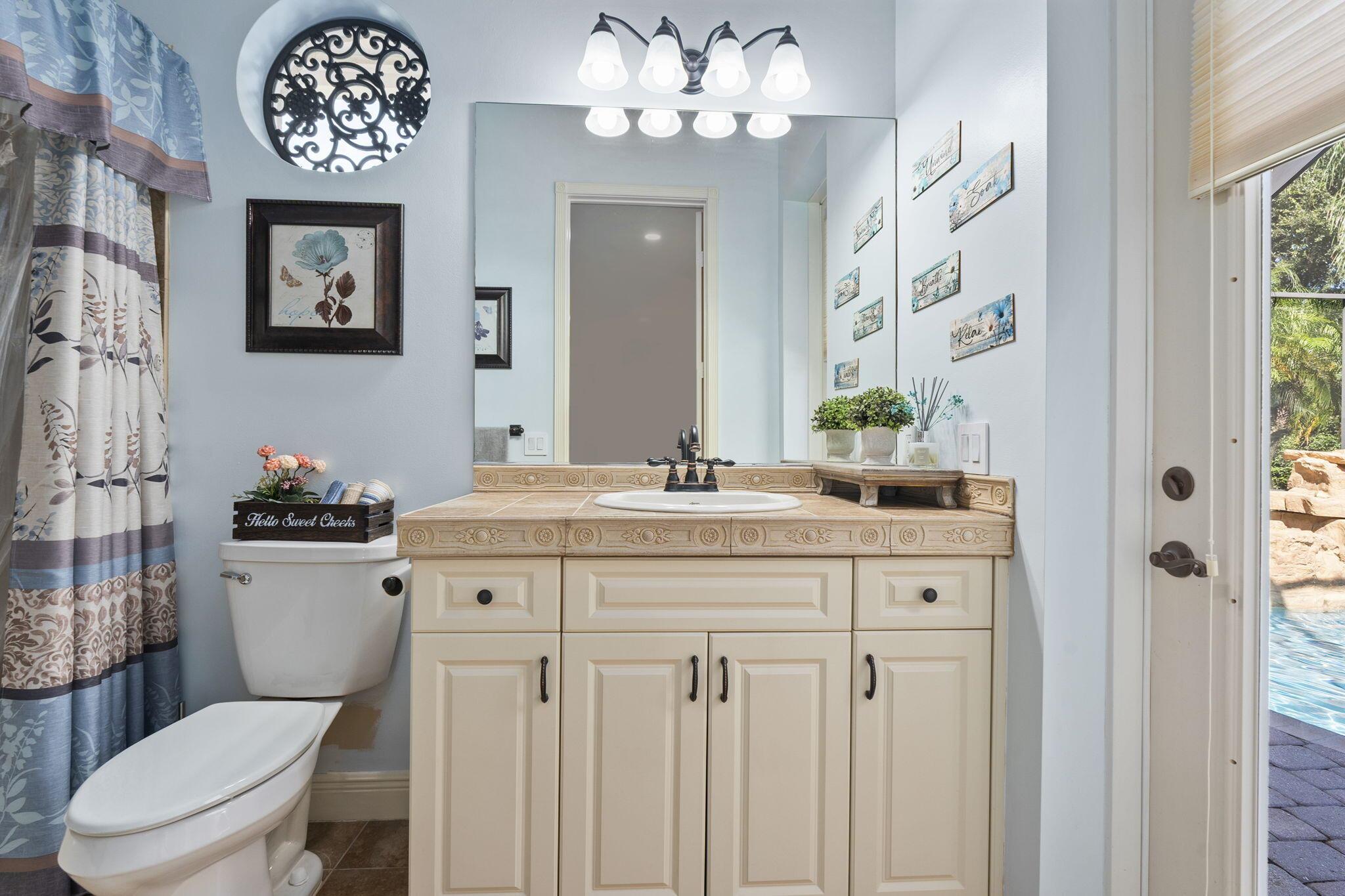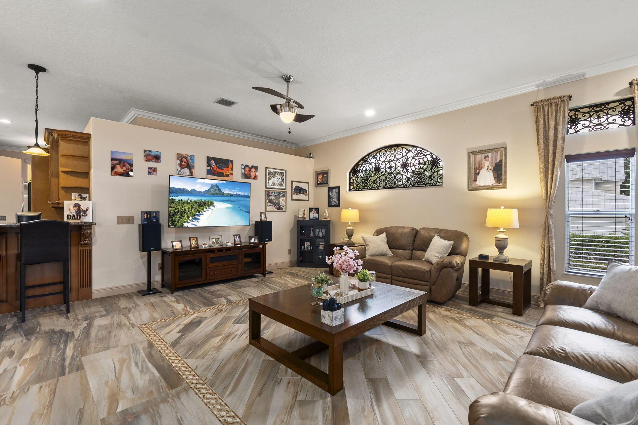 A Tuscan style CBS TURNKEY home featuring 3 beds, 3 bath,+ den, spanning 2639 sqft, complete with a 3 car garage, & situated on .62 acres. The backyard oasis is perfect for entertaining, featuring a stunning saltwater pool, serene waterfall, sundeck, covered patio,& lake views.The chef's kitchen is a dream with 42-inch cabinets, granite countertops, large center island,& new appliances.Upgrades include newer A/C, new HW heater, epoxy garage floors w/ shelving, extended paver driveway/walkway, remote irrigation & landscape lighting. All in the highly desirable Orchid Bay of Palm City. Amenities include tennis, pickleball, basketball, playground, & volleyball court. Close to A+ schools, dining, shopping, beaches, 95/turnpike This home truly combines elegance, functionality, & comfort.