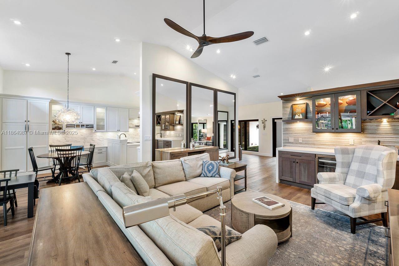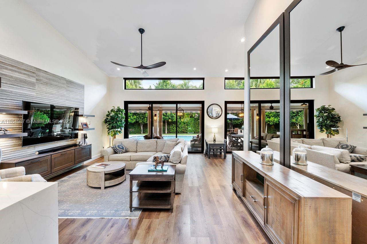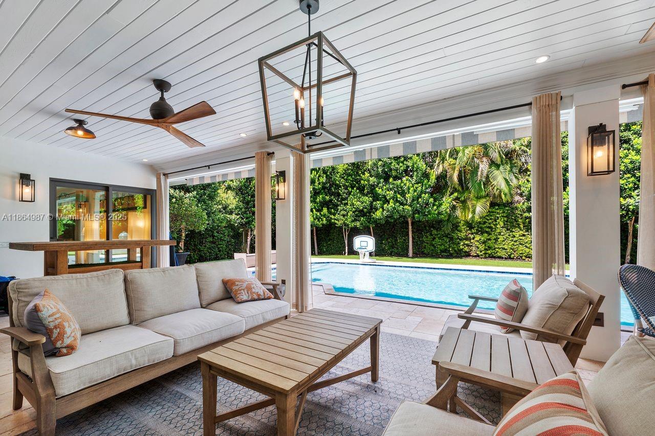 Privacy is the ultimate luxury. Enter Arabesque, a walled community of only 18 homes in Pinecrest, developed in 1990 by one of south Florida’s renowned builders. This 3,254 SF, 4 bed/3 bath corner home was elegantly updated in 2019 to the most discerning standards. Plenty of natural light flows through impact windows and doors. The split floor plan offers a tranquil primary suite with his/hers closets, access to outdoor living area, and views of the pool and garden on one side, and three large bedrooms and two baths on the other. The main living area, with updated kitchen, breakfast space, and family room, open to a large covered patio and pool. Formal living and dining rooms flank the front entrance. The true two-car garage has plenty of built-in storage and epoxy floor. Perfect location.