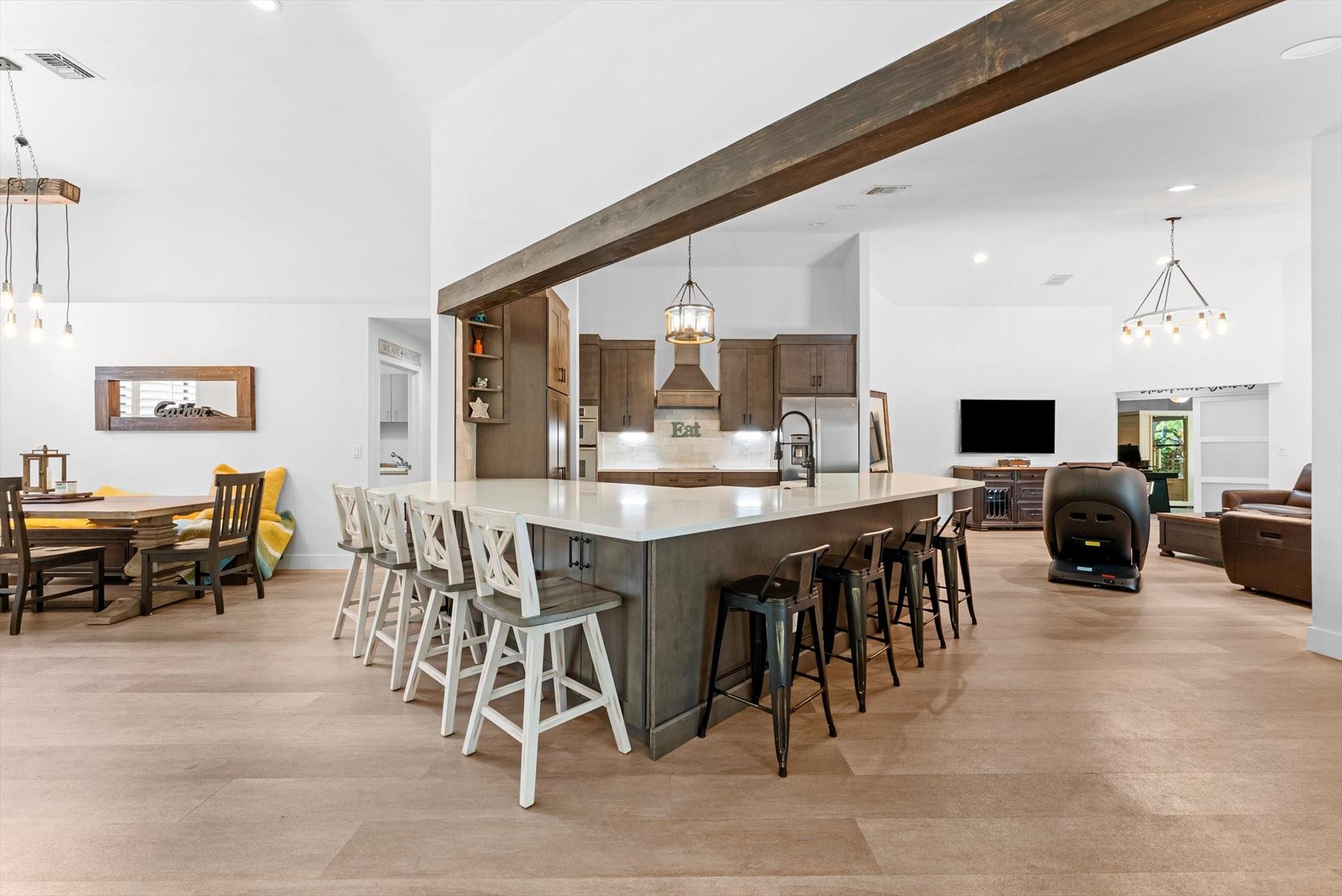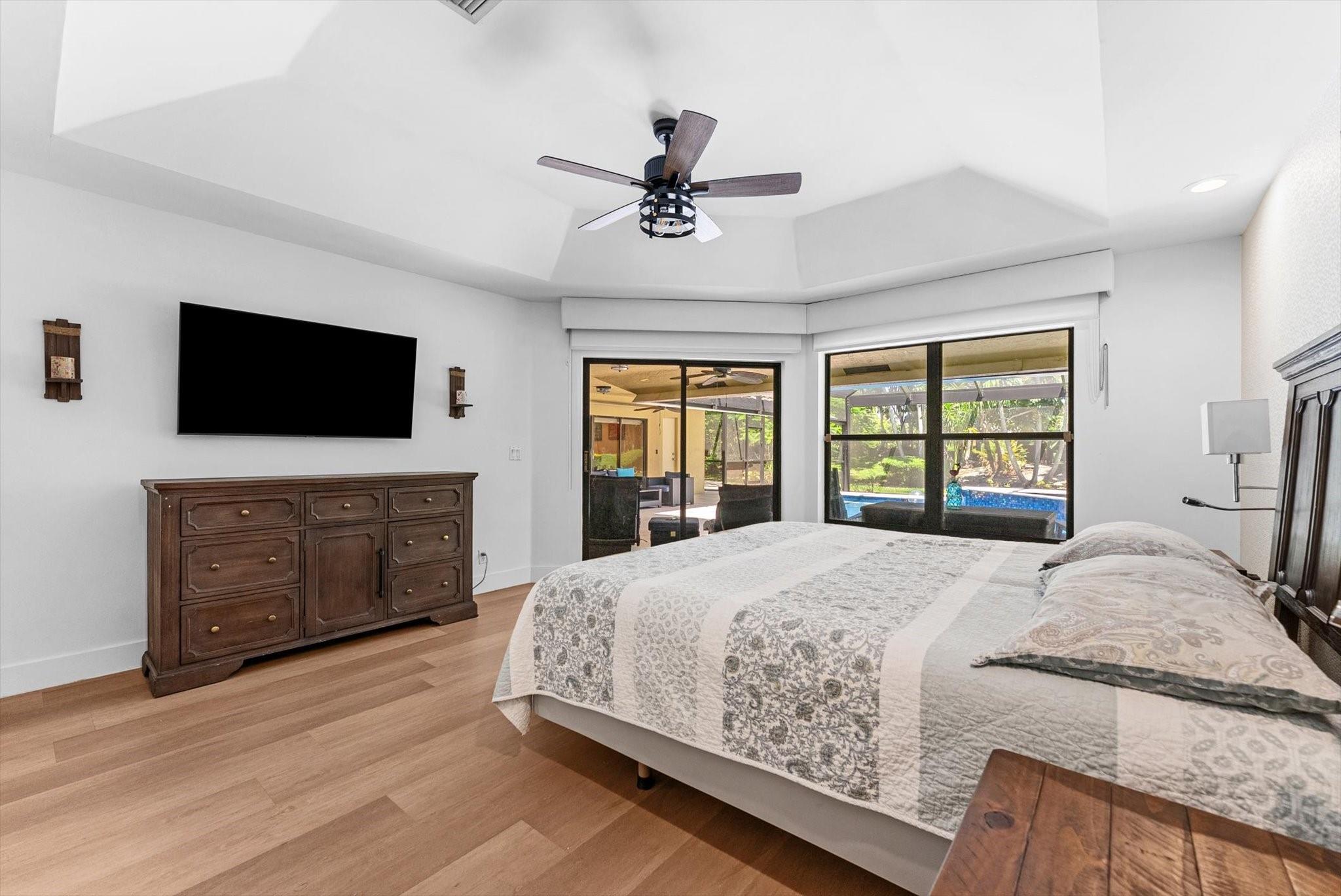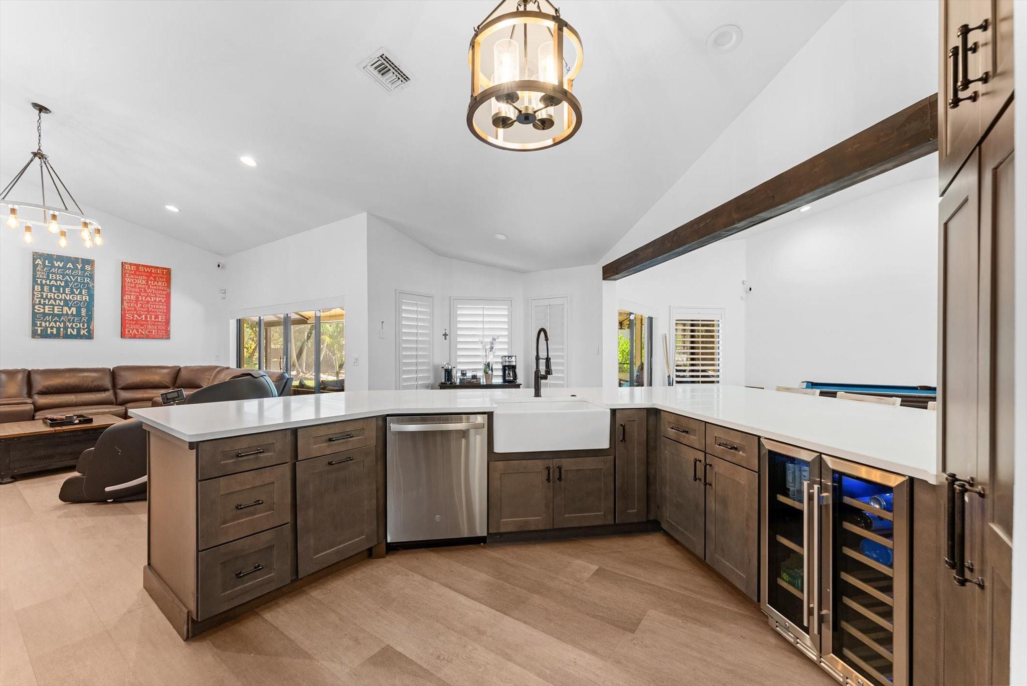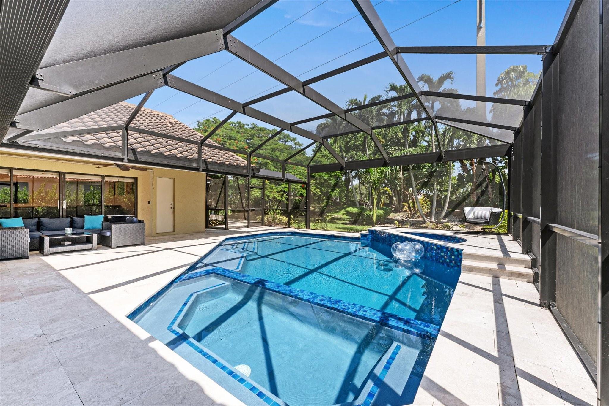 Entertainer's Dream located in the private gated neighborhood of Tequesta. This meticulously updated 5 bedroom, 3 bathroom residence offers luxurious living at it's finest. Move-in-ready, this spacious home has an abndance of natural light that features warm finishes throughout. Recently updated kitchen with custom cabinetry, quartz counters, waterproof flooring and wine fridge is the center attraction to the family room, dining and living rooms. Revel in breathtaking views of the new heated saltwater pool equipped with a 10 person spa, cold plunge and private garden featuring a cozy fire pit, ideal for fun evenings with family and friends. The primary suite is complete with soaking tub, dual sinks, private toilet room and walk in shower. AC 2024, pool and screen 2024 roof 2014, W/D 2016