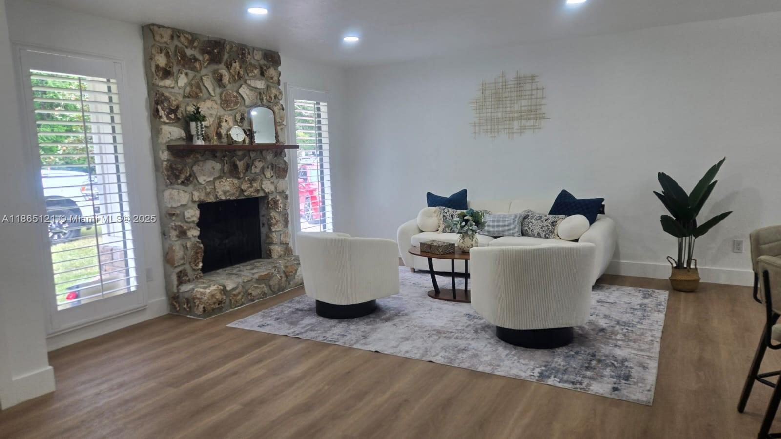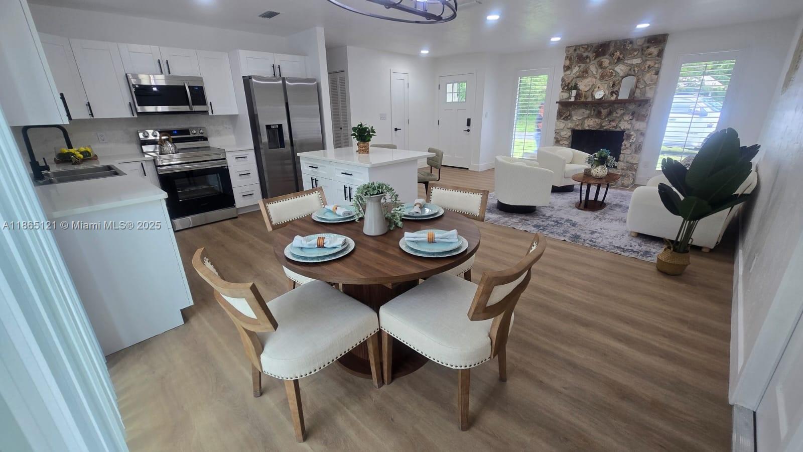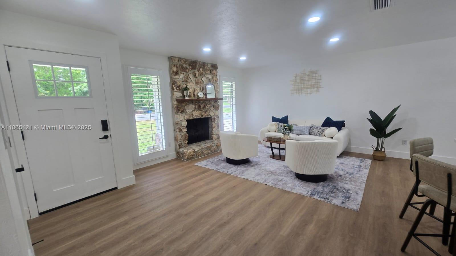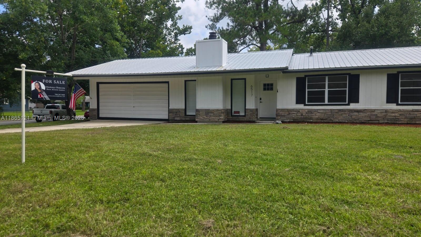 Welcome to this fully remodeled corner concrete block home surrounded by nature and tranquility. Featuring a new metal roof(2016), new gas water heater(2022),and a brand-new A/C(2025)with 10-year warranty, this property blends quality construction with modern upgrades. Inside, enjoy a stylish kitchen with sleek cabinets, stone countertops, new stainless steel appliances, and a separate dining area. The spacious living room highlights a cozy fireplace, creating warmth and charm. Outside, the large fenced backyard with mature trees is perfect for family gatherings or relaxing, 0.26 acres lot. . Two covered garage spaces, Plus a new washer and dryer add extra convenience. A true move-in ready home!