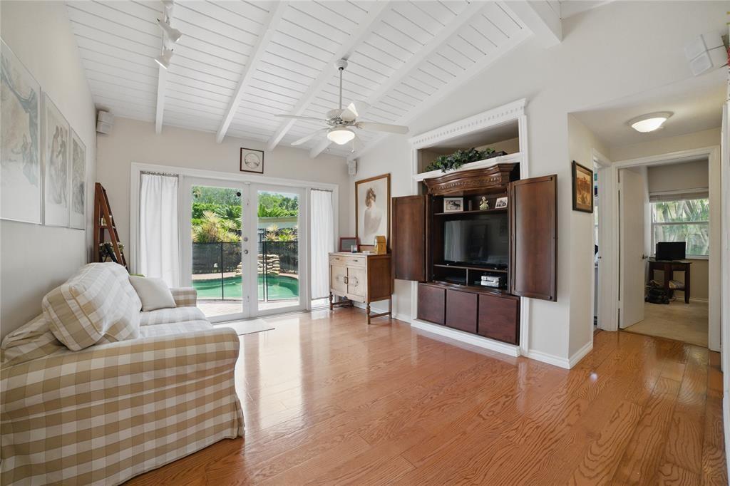 Welcome to your private tropical oasis! A waterfront pool home featuring 4 bedrooms 2 baths on a spacious 9,548 sq ft corner lot. This home offers multiple living spaces including a separate living room, dining room, & den, with an open-concept kitchen that flows seamlessly into the main living & dining areas -perfect for entertaining. Enjoy vaulted exposed beam ceilings, a built-in bar & a one-of-a-kind tree house deck ideal for morning coffee or evening cocktails with serene water views. Park your boat at your dock & enjoy the waterways with no fixed bridges Expansive patio for outdoor gatherings, & a beautiful setting inside & out. Tucked in the east corner of the neighborhood surrounded by riverfront estates, Shady Banks is just minutes to downtown, Las Olas, the Airport & the Beach