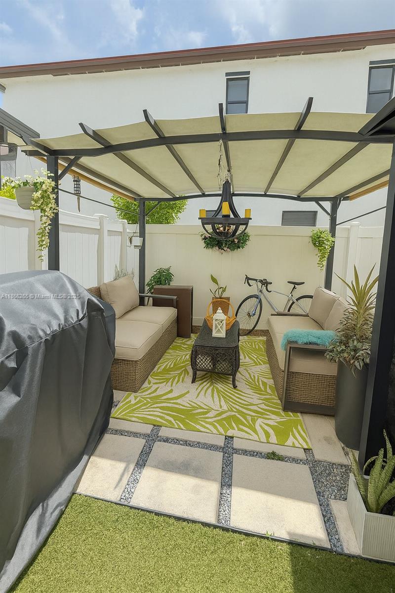 Impact windows and solar panels enhance this beautifully maintained 3 bed, 2.5 bath, home offering energy efficiency and peace of mind. The bright open floor plan features a modern kitchen with stainless steel appliances and spacious island seating. Living and dining areas flow seamlessly to the private outdoor patio, perfect for entertaining. Upstairs, generously sized bedrooms include a comfortable primary suite with walk-in closet. Stylish finishes, updated bathrooms, and ample storage add to the appeal. Ideally located near schools, shopping, and major highways—this move-in ready home combines comfort, style, and sustainability. Property recently appraised $530k as is condition.