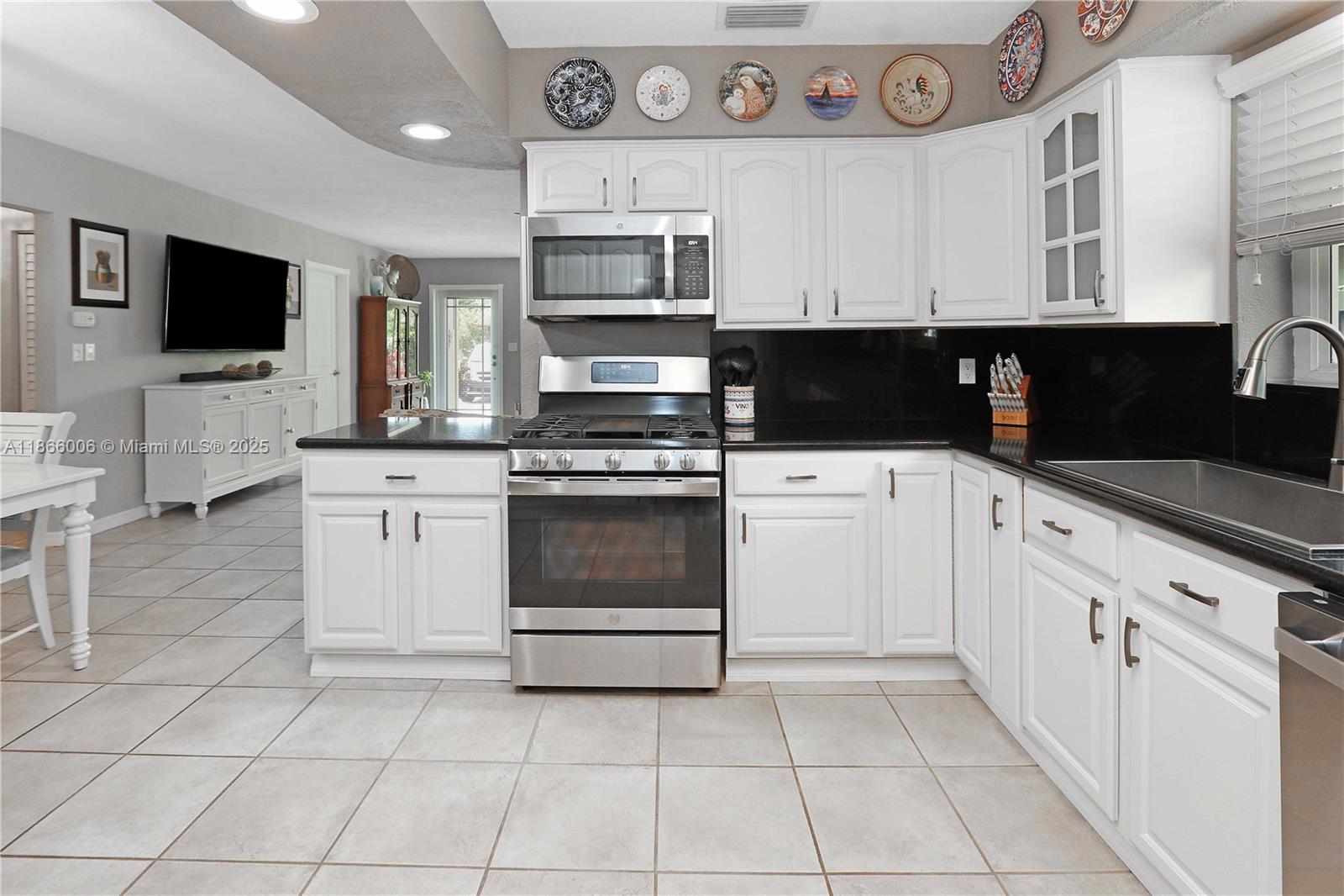 Charming 2 bed/2 bath POOL home with flexible 3rd bedroom! Prime Hollywood Lakes location. Walk to beach/town. Kitchen features white cabinets, black granite counters, newer stainless steel appliances, gas stove, and farmers sink. Spacious layout includes living room and formal dining room. Versatile family room with closet to serve as a 3rd bedroom. Updated baths with marble mosaic flooring and rain showers. Guest bath has double sink and large two-person soaking tub. Step outside to a beautiful backyard oasis with solar-heated saltwater pool with built-in jacuzzi and waterfall, perfect for entertaining. Addit'l highlights: impact windows/doors, one-car garage, double driveway in front with extra rear parking, Newer elec water heater, lush landscaping, multiple outdoor entertaining areas.