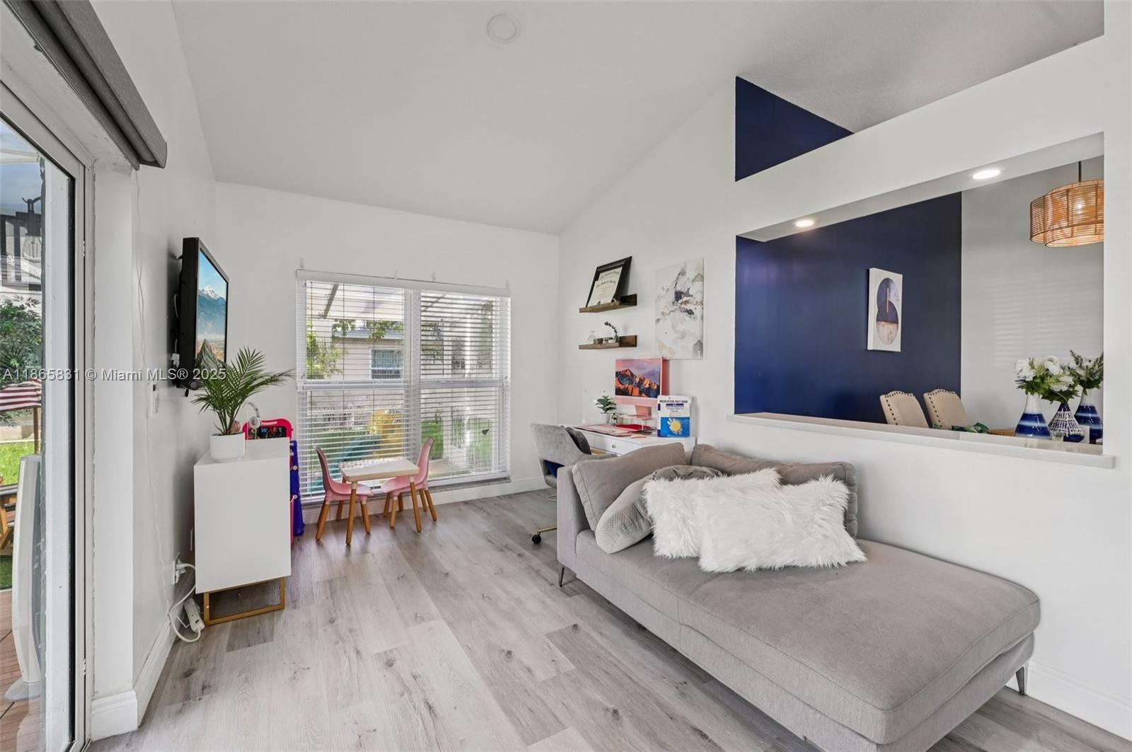 Beautifully remodeled 3BR/2BA home with an open floorplan, vaulted ceilings, LED lighting, pale gray laminate flooring, remote blinds, and impact windows/doors. The custom white kitchen features shaker cabinets, marble quartz counters, and stainless steel appliances. Luxurious master suite includes dual walk-in closets, custom double vanity, porcelain tile, and a spacious walk-in double shower. Guest bath offers a custom vanity with tub/shower combo. Enjoy Florida living in the screened enclosed patio with composite deck, perfect for entertaining. Backyard boasts a lush lawn with mature mango and avocado trees. Conveniently close to schools, shopping, dining, and major highways—comfort and convenience in one!