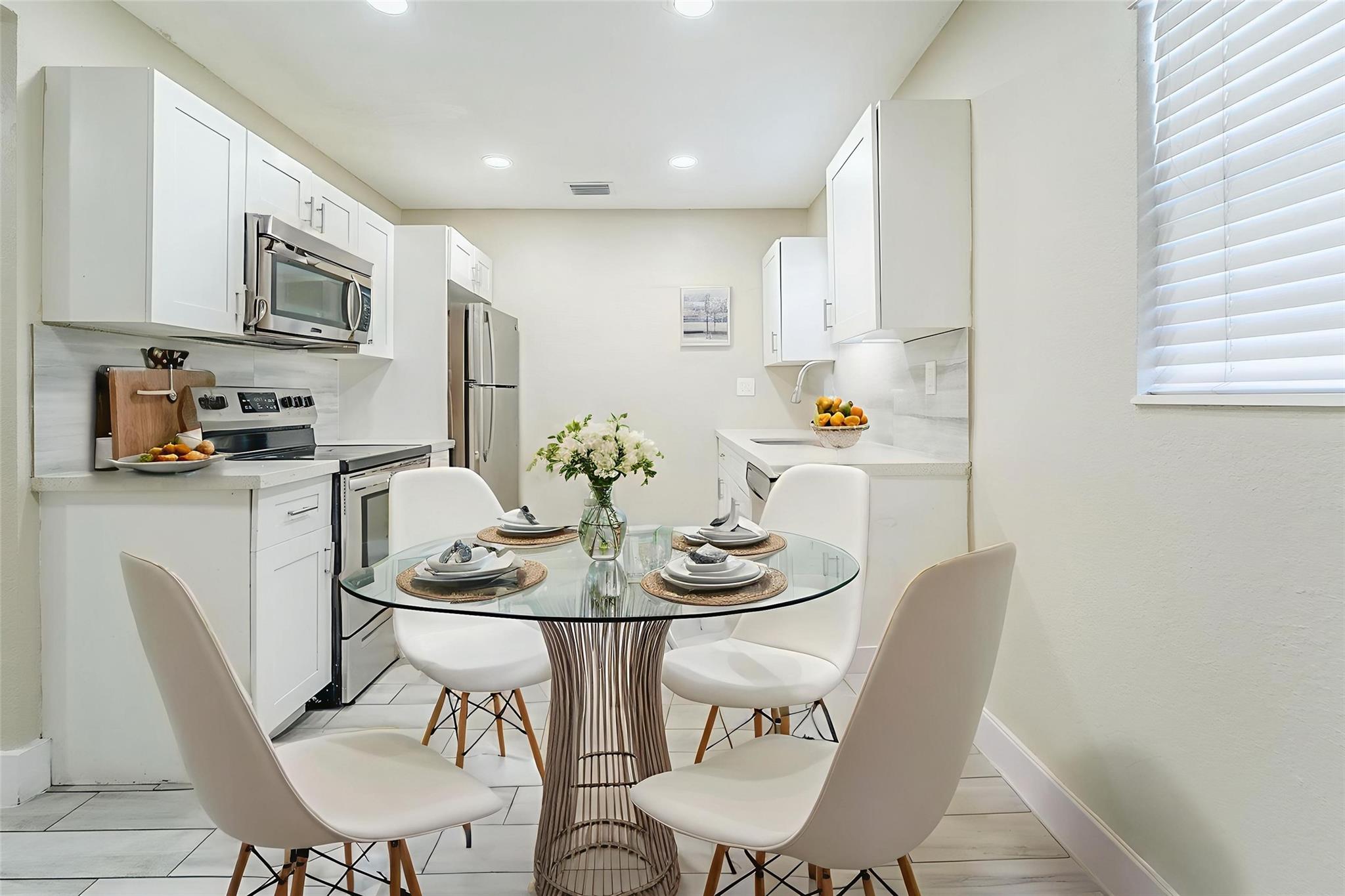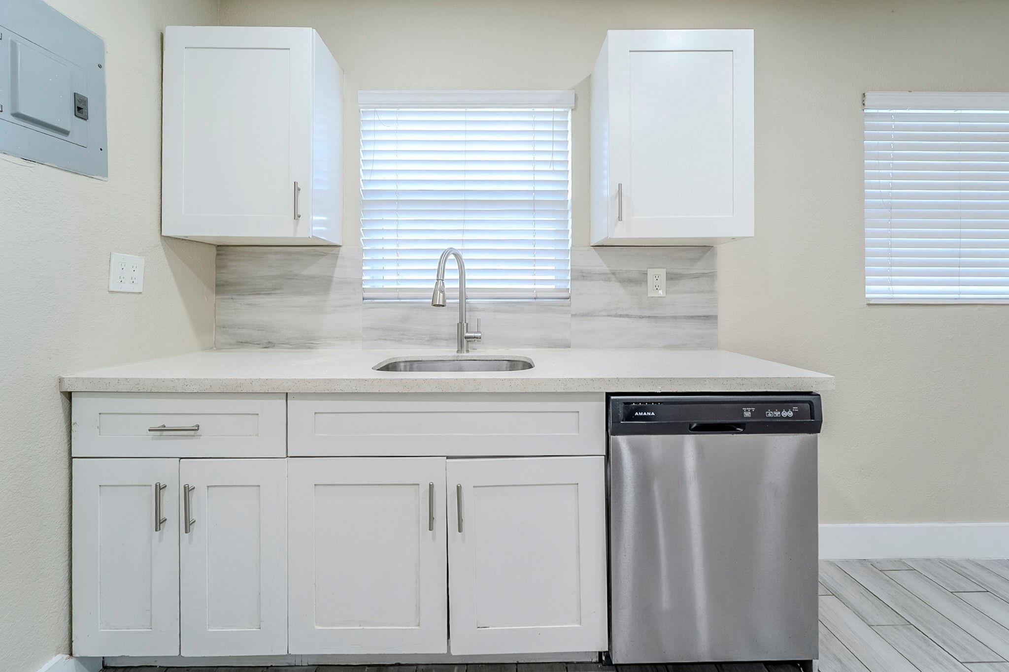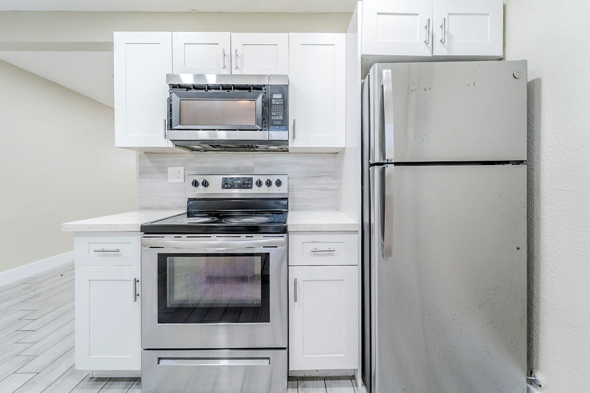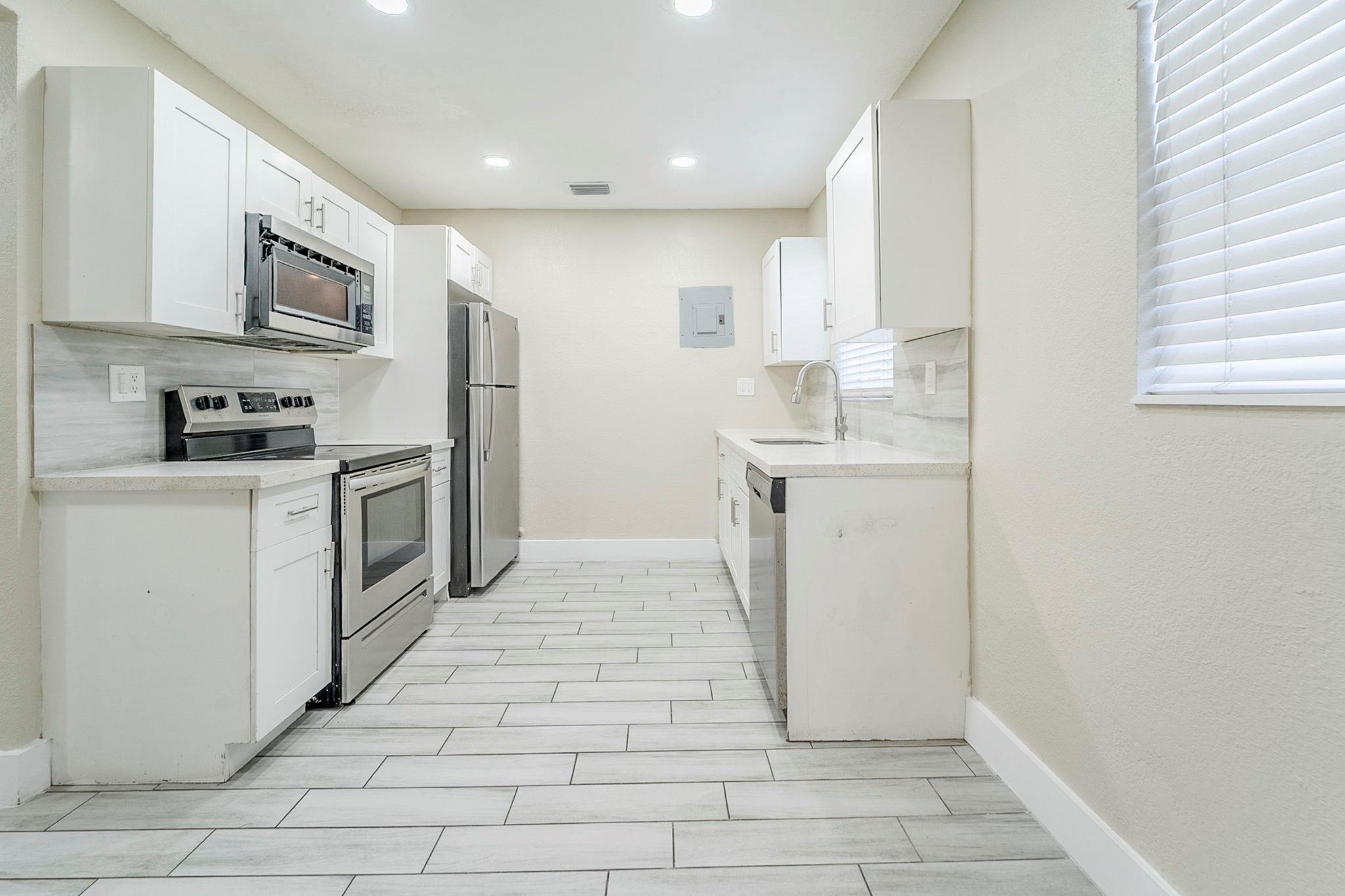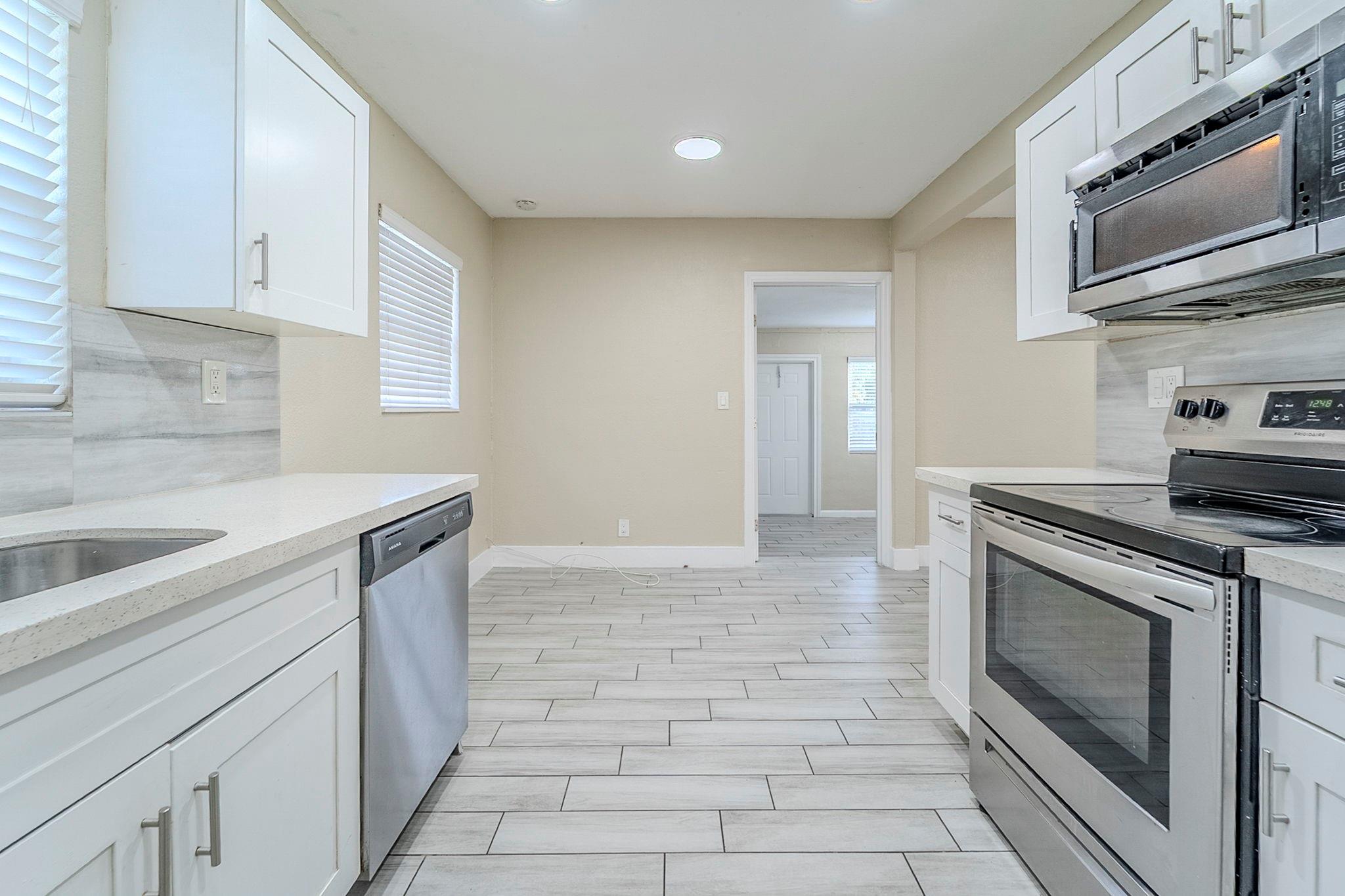 Discover this inviting 1-story home featuring 3 bedrooms and 1 bathroom. The kitchen offers stainless steel appliances, bright white cabinets, and accent lighting that enhances the space. A welcoming front porch leads to a spacious backyard with a chain link fence, providing plenty of room for outdoor activities. One or more photos have been virtually staged. Schedule a showing today!