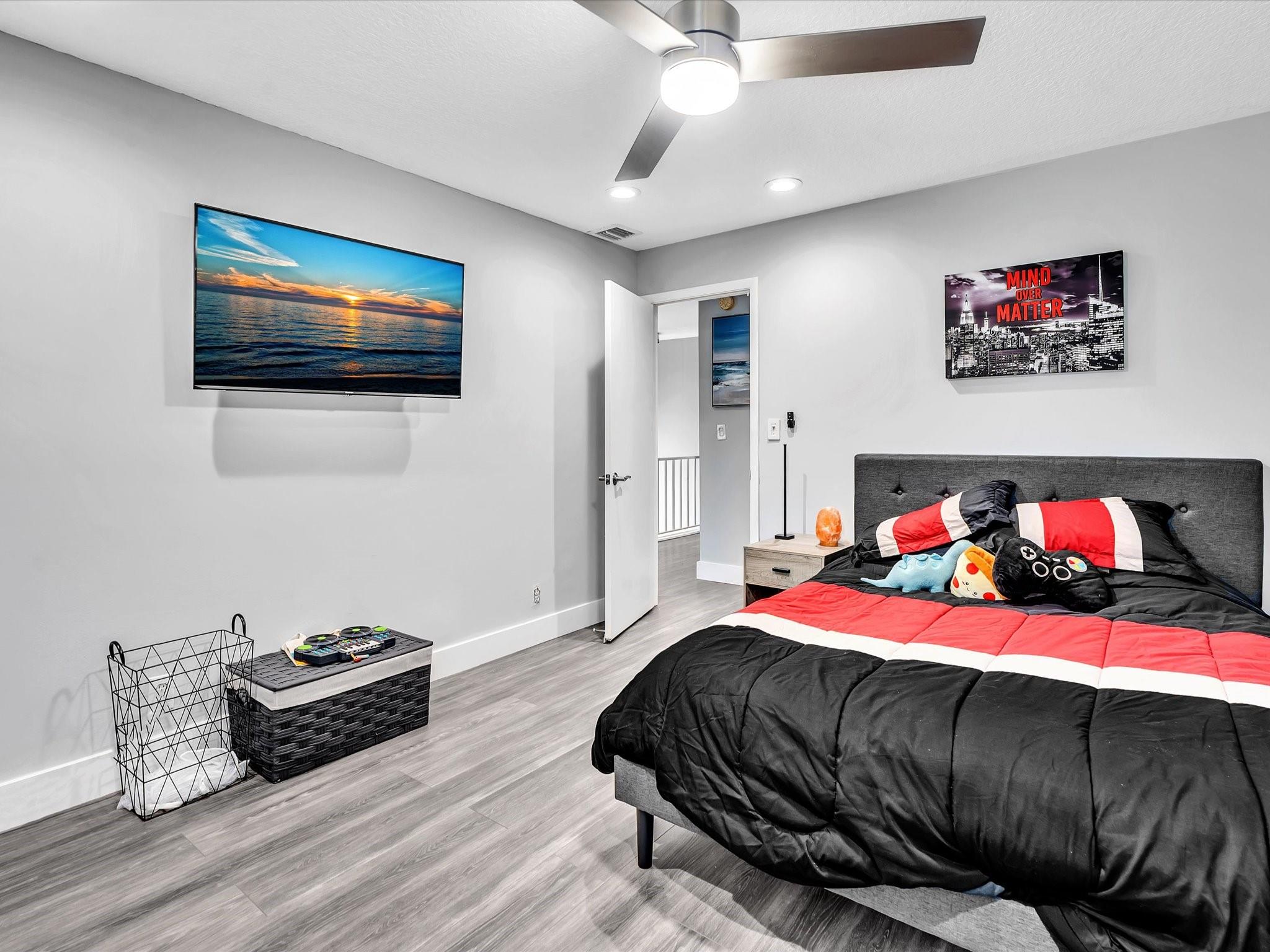 Beautifully Updated Corner Unit Townhome in the Lakes of Emerald Hills. Over $100,000 in recent renovations. Unit features two patios and a balcony; dedicated theater room with 120 inch ambient light rejection projector screen, theater grade 4K laser projector, and premium sound system; 3 fully renovated bathrooms with modern finishes; new waterproof laminate wood flooring and new baseboards throughout; new kitchen appliances; brand new stackable washer & dryer combo (upstairs); AC 2 years old; roof replaced in 2017. Prime location in the highly desirable Lakes of Emerald Hills community. Location Highlights: directly across from a park with playground, dog park, and walking trail; just steps from the community pool; walking distance to places of worship.