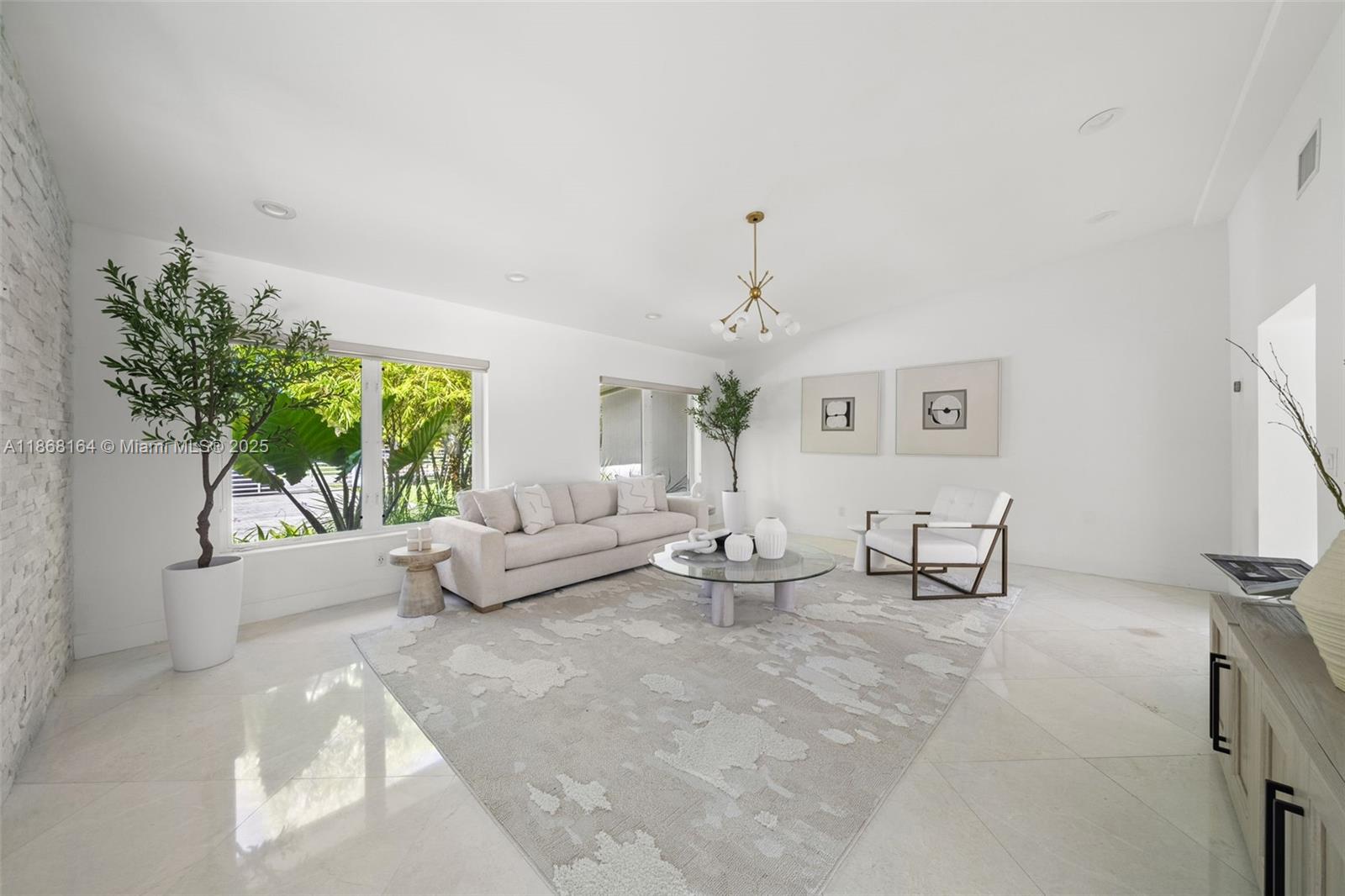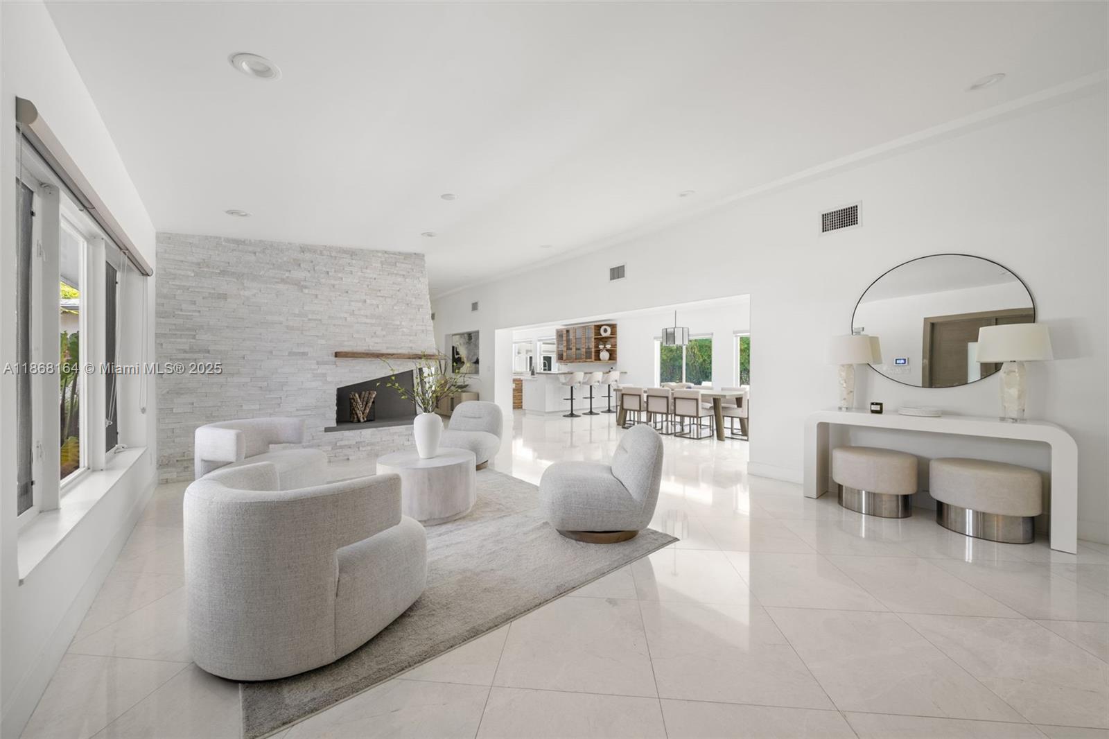 Positioned on a 34,000 SF corner lot in North Pinecrest, 11001 SW 64th Ave is a one-story 4,600 SF single-family home with 5 beds and 4 baths, currently configured as a 4-bed. The home features ceilings up to 10.5 ft, impact windows/doors, gated entry, and a covered driveway. Defining features include a renovated kitchen with high-end appliances, two distinct dining areas, a massive great room and family room with a brick fireplace, renovated baths, a large playroom, laundry, and a two-car garage. The backyard is turnkey with a heated pool, summer kitchen, dining area, and generous outdoor living space. Upgrades include an ENERGY STAR-rated cool roof for reduced cooling bills, a 10.8 KW solar array with the option to double capacity, and a 120-gal on-demand solar hot water system.