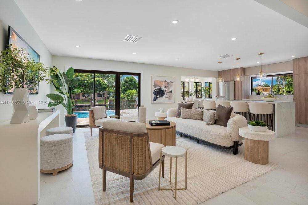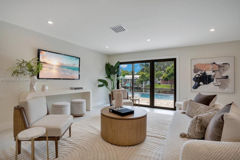 Welcome to 1004 Guava Isle, a fully reimagined waterfront home with 75 ft of frontage, private dock, brand-new infinity design pool + deck, and Direct Ocean Access, NO FIXED BRIDGES. The only area in Broward County with this feature. DEEPEST CANAL in the area. This Home was completely gutted and Major construction in 2025 includes all-new metal roof (up to 50 yrs), plumbing, electrical, flooring, all drywall & insulation, designer kitchen +spa like baths, and custom closets. Impact Windows and doors and Luxury Finishes throughout. The sunlit open concept integrates kitchen, dining, and living areas with seamless views of the canal, pool, and your boat. Extra room doubles as family room, office, or 4th bedroom. This is the one! — move-in ready for modern waterfront living.